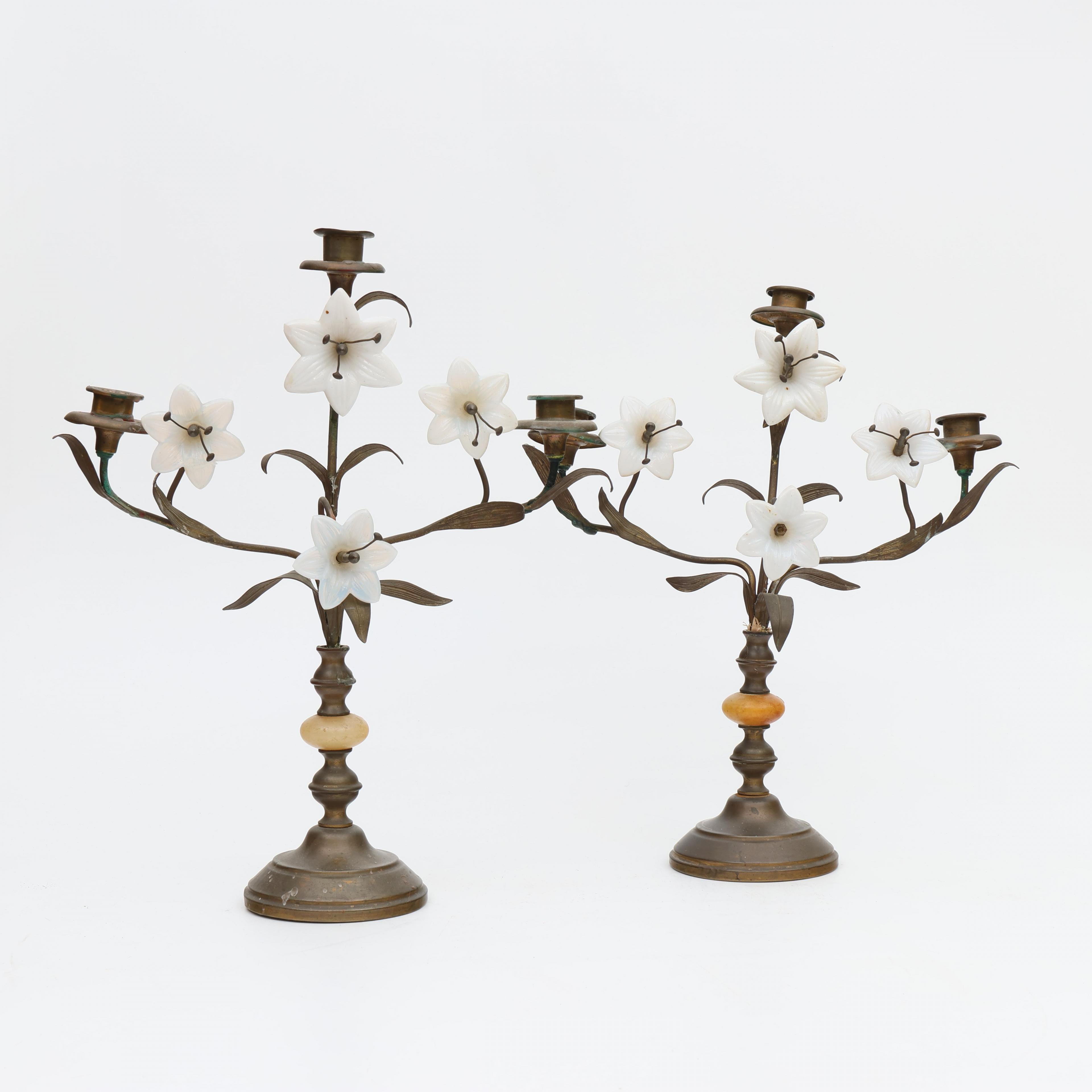 Frankrijk, paar koperen drielichts kandelaren, circa 1930;