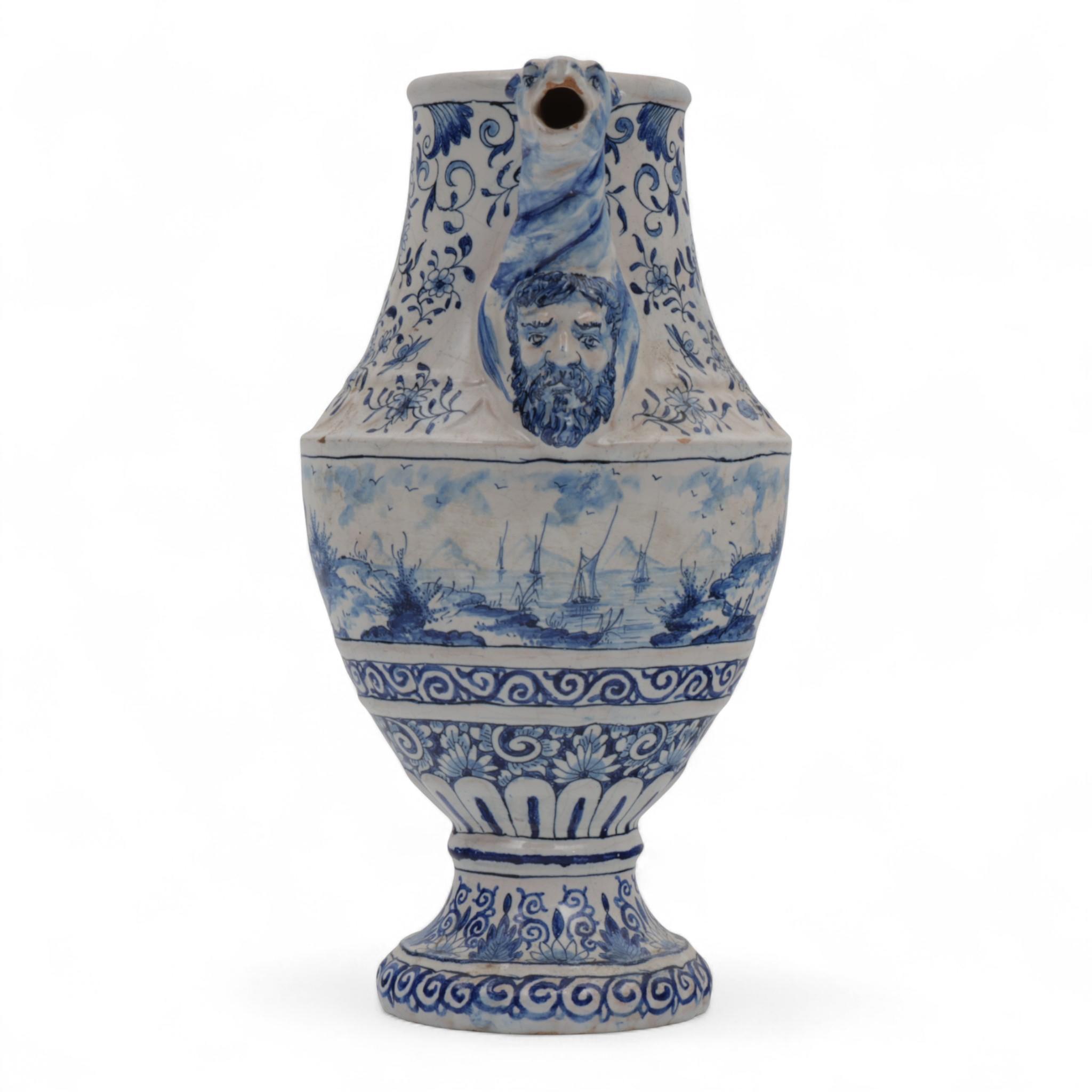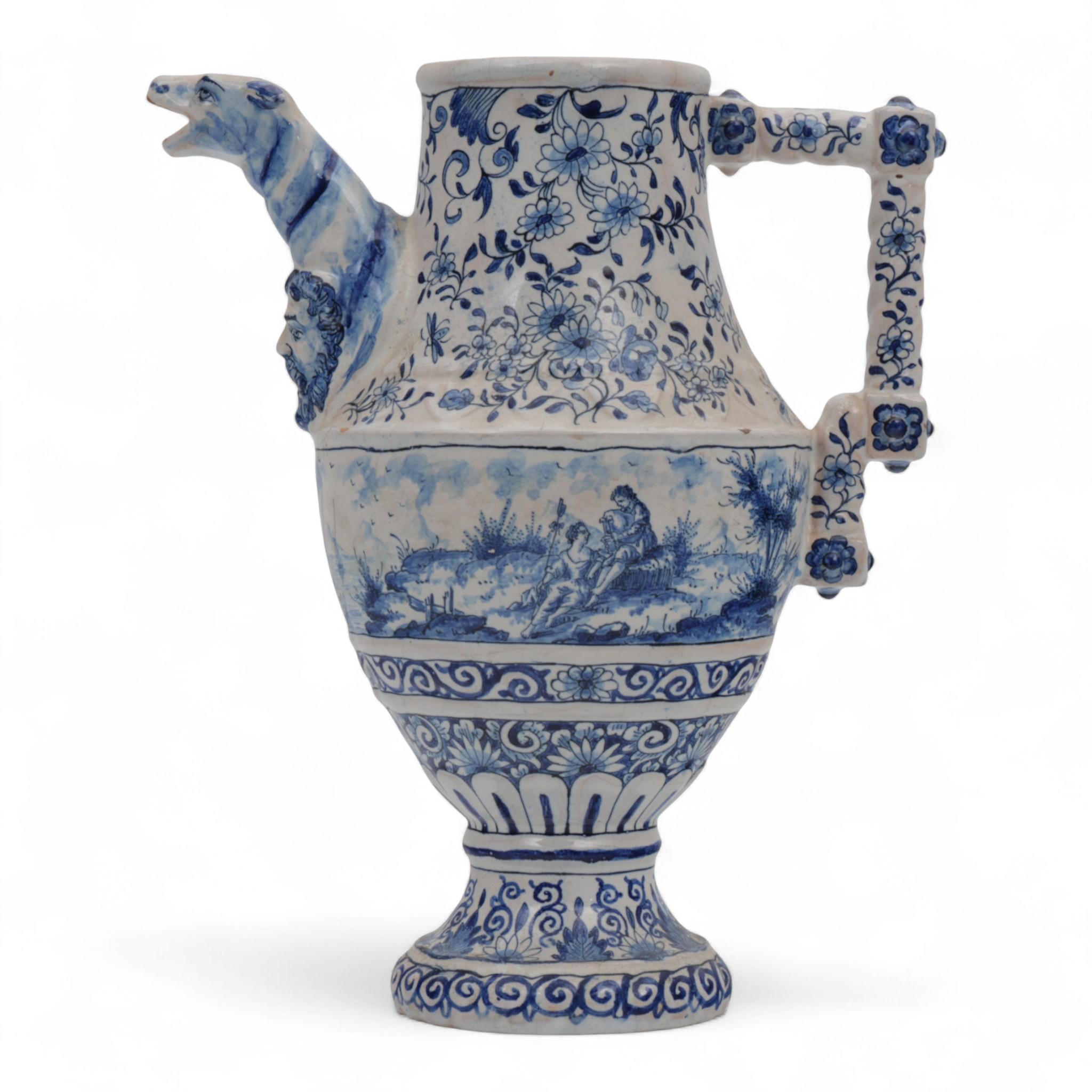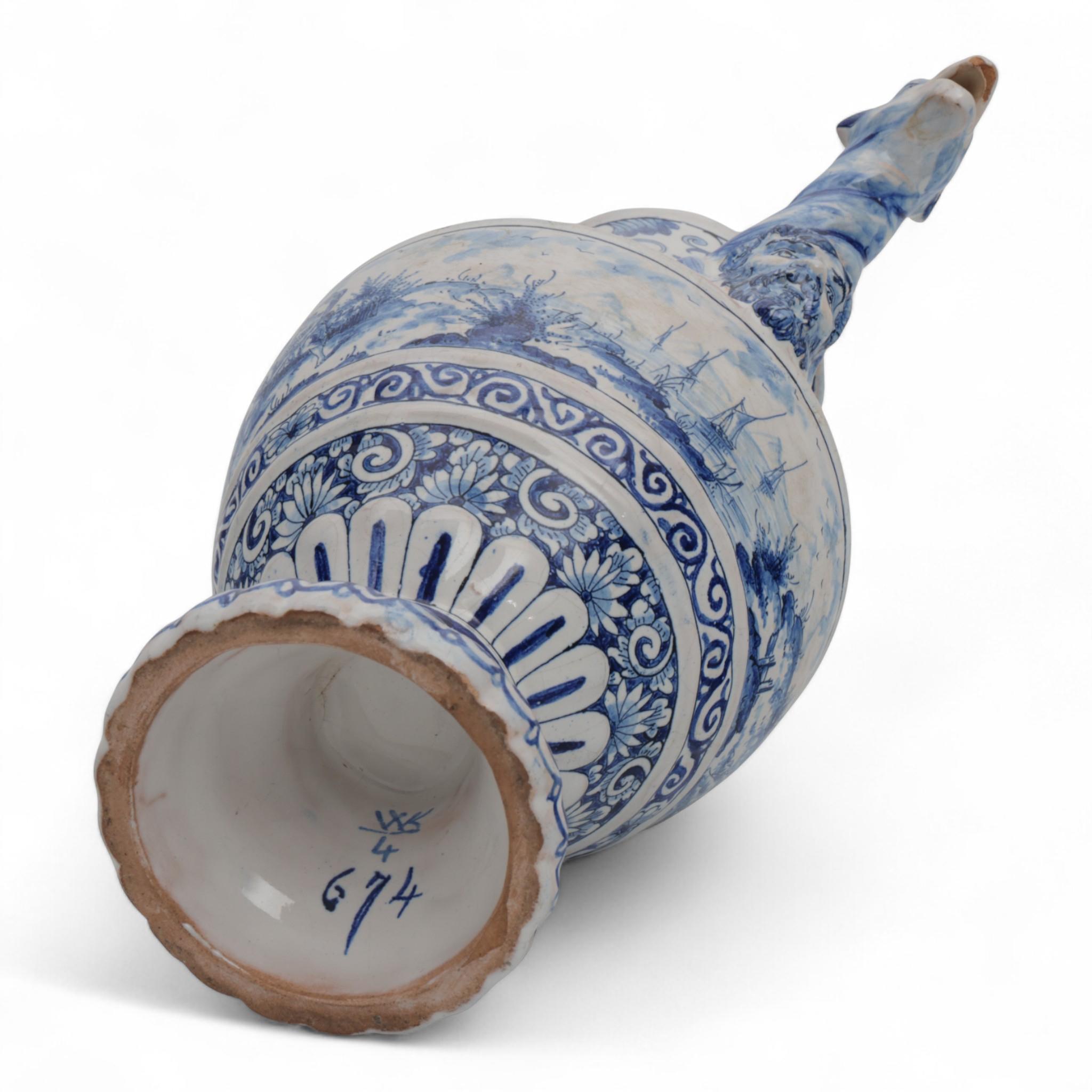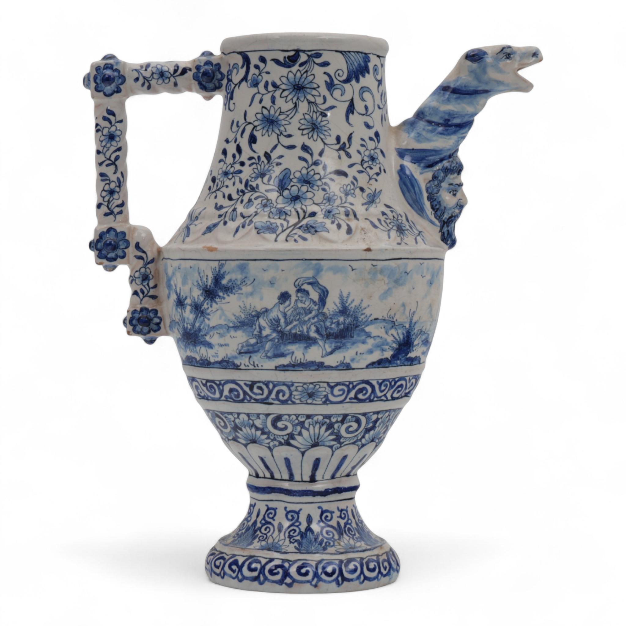 Delft, blauw wit aardewerk schenkkan, 18e eeuw;