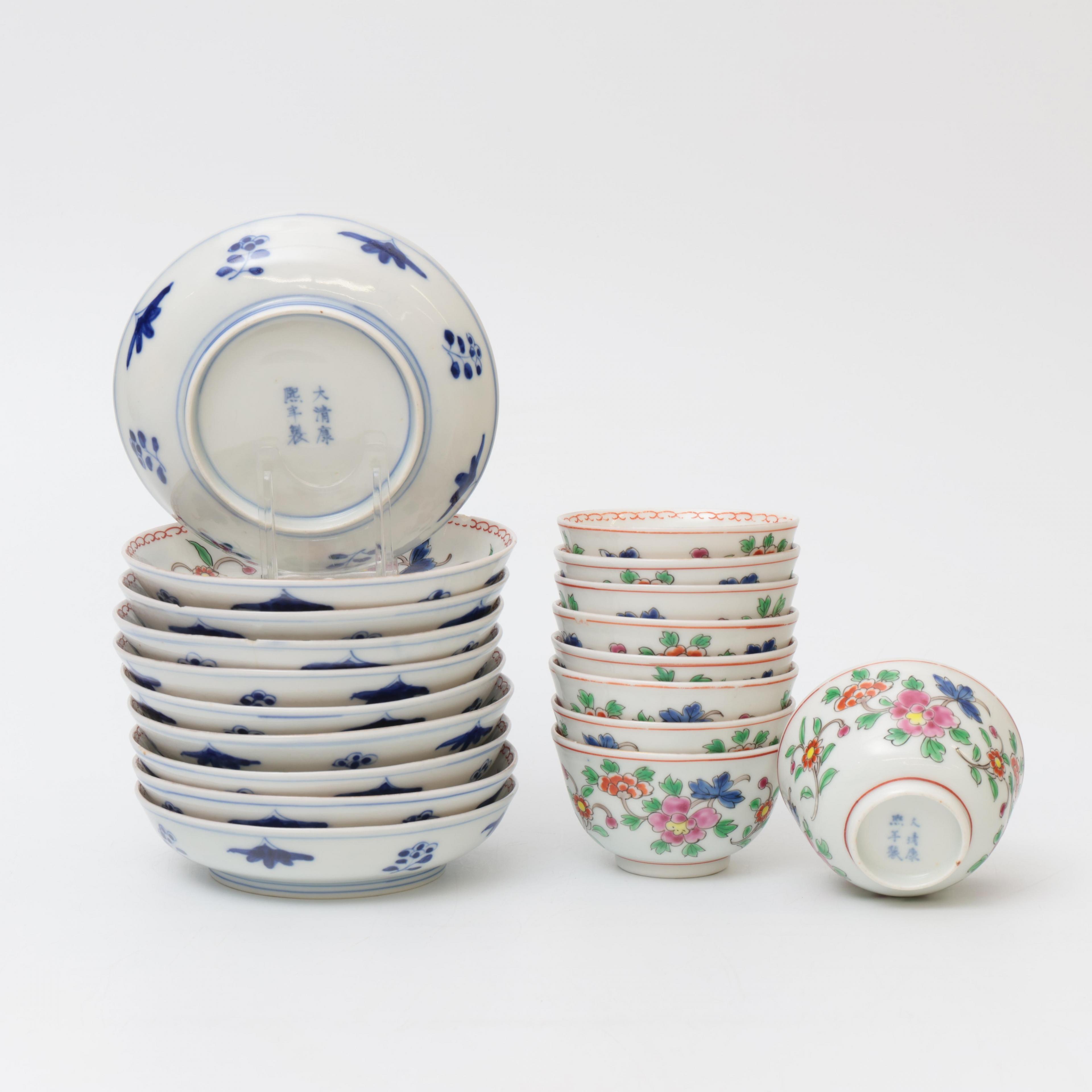 China, a set of nine famille rose porcelain cups and ten saucers, 20th century,