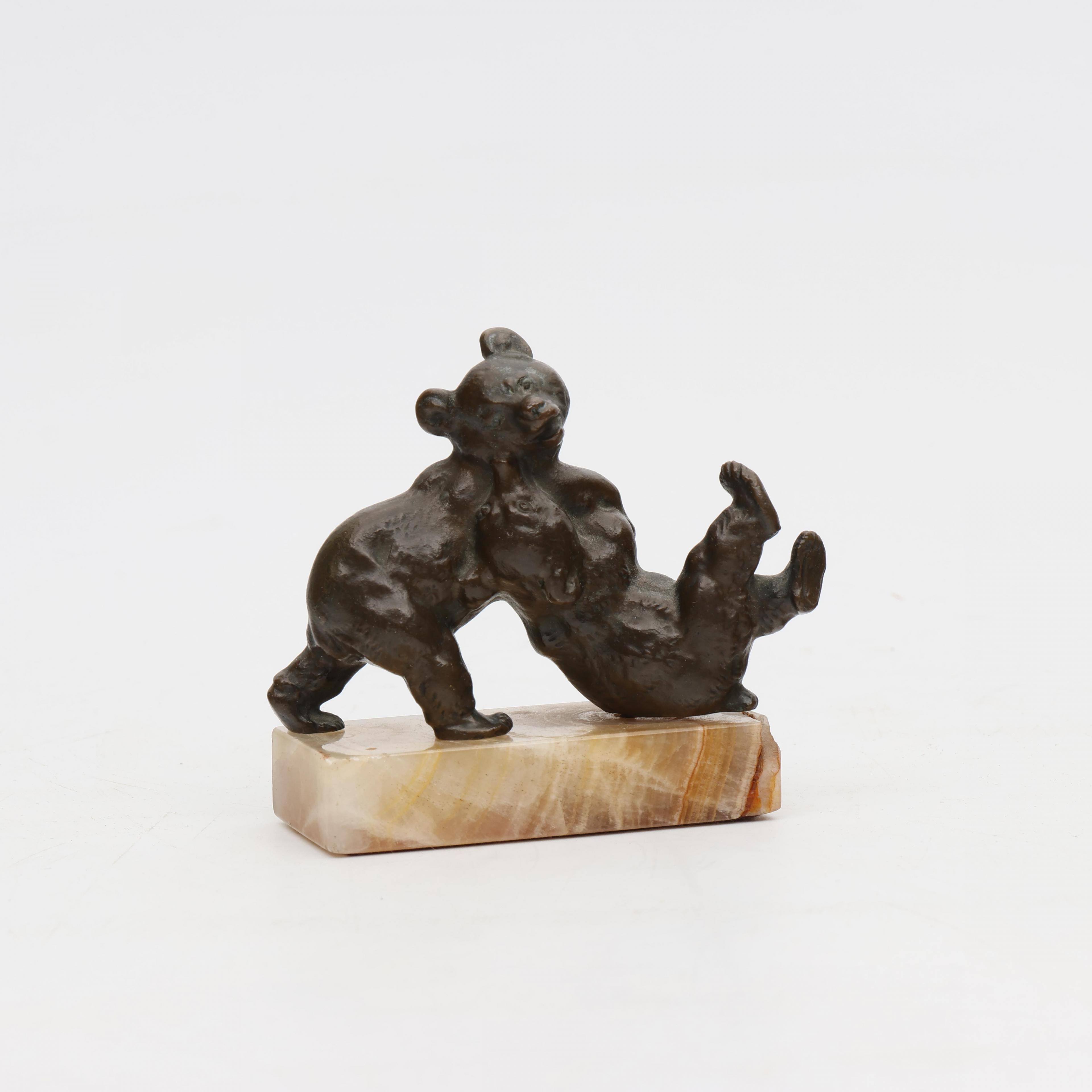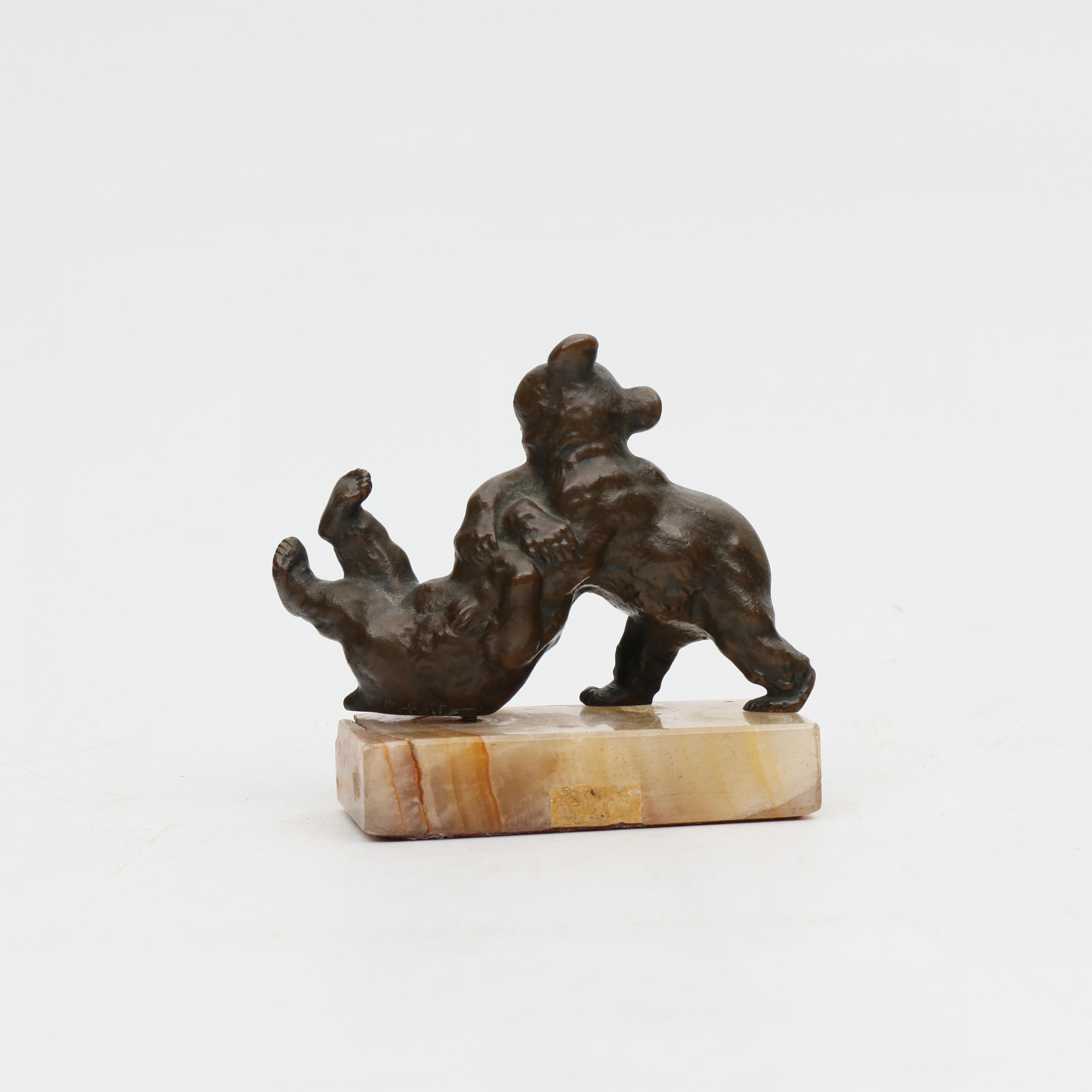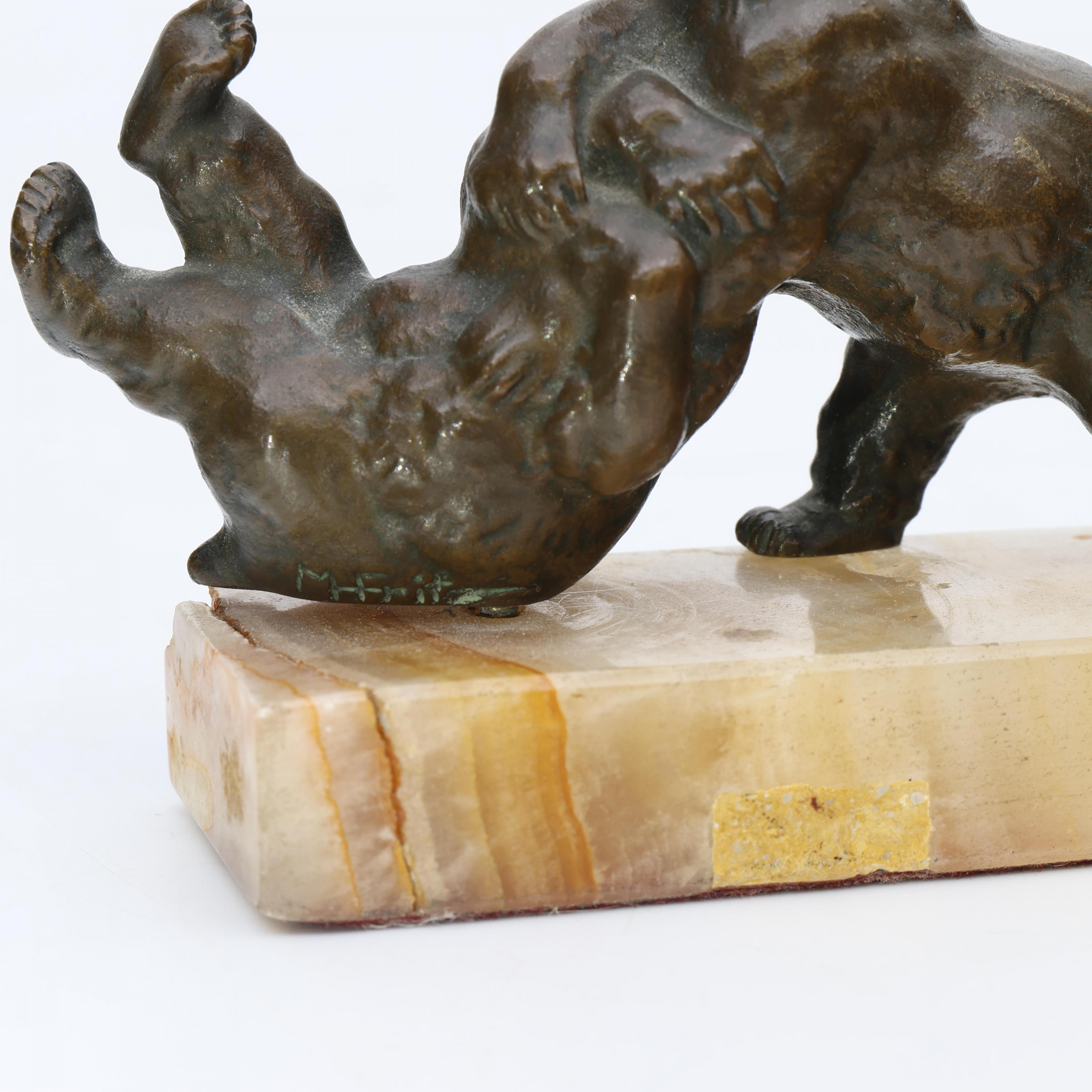 Hermann Fritz (1873-1948), donker gepatineerd bronzen sculptuur, 'spelende berenwelpen';