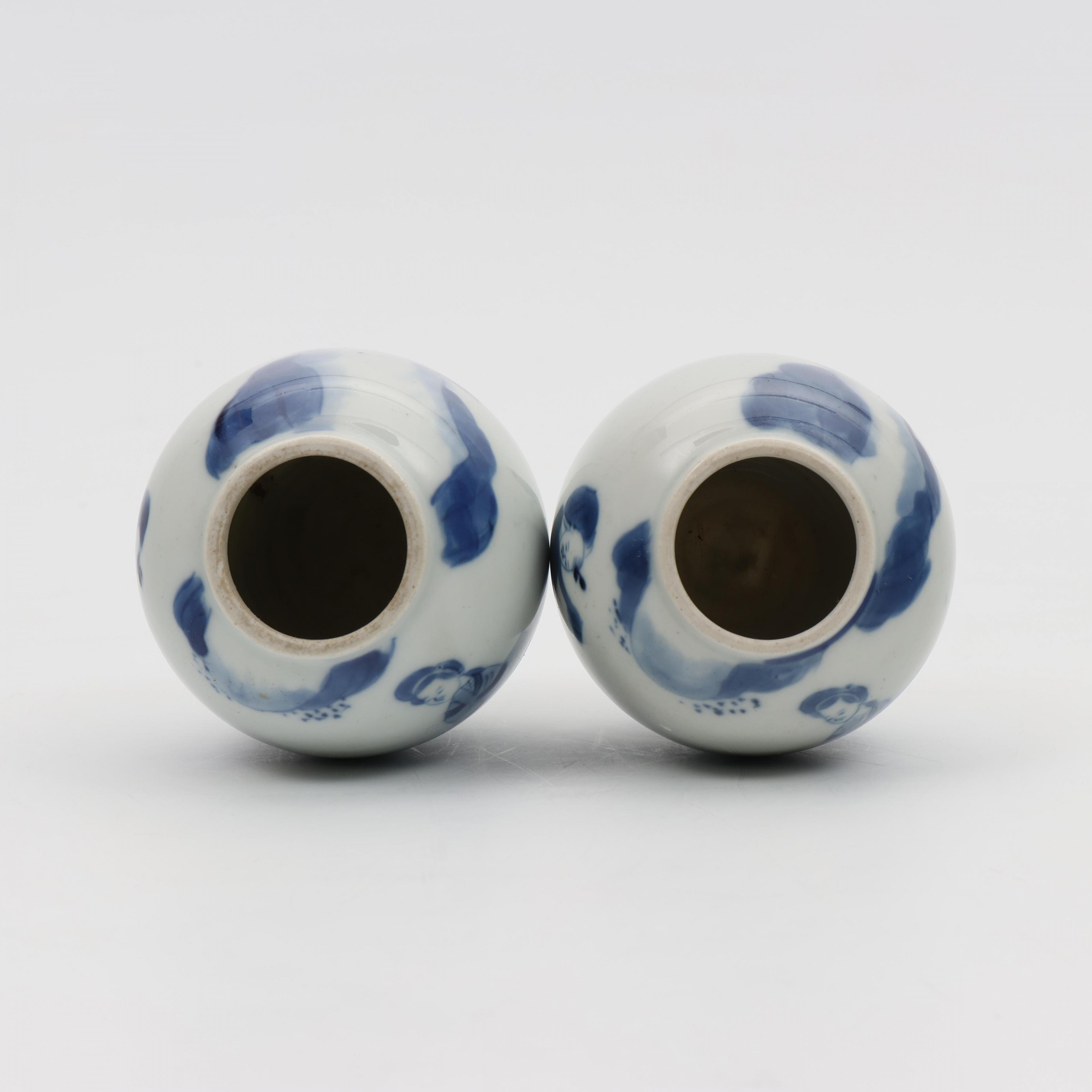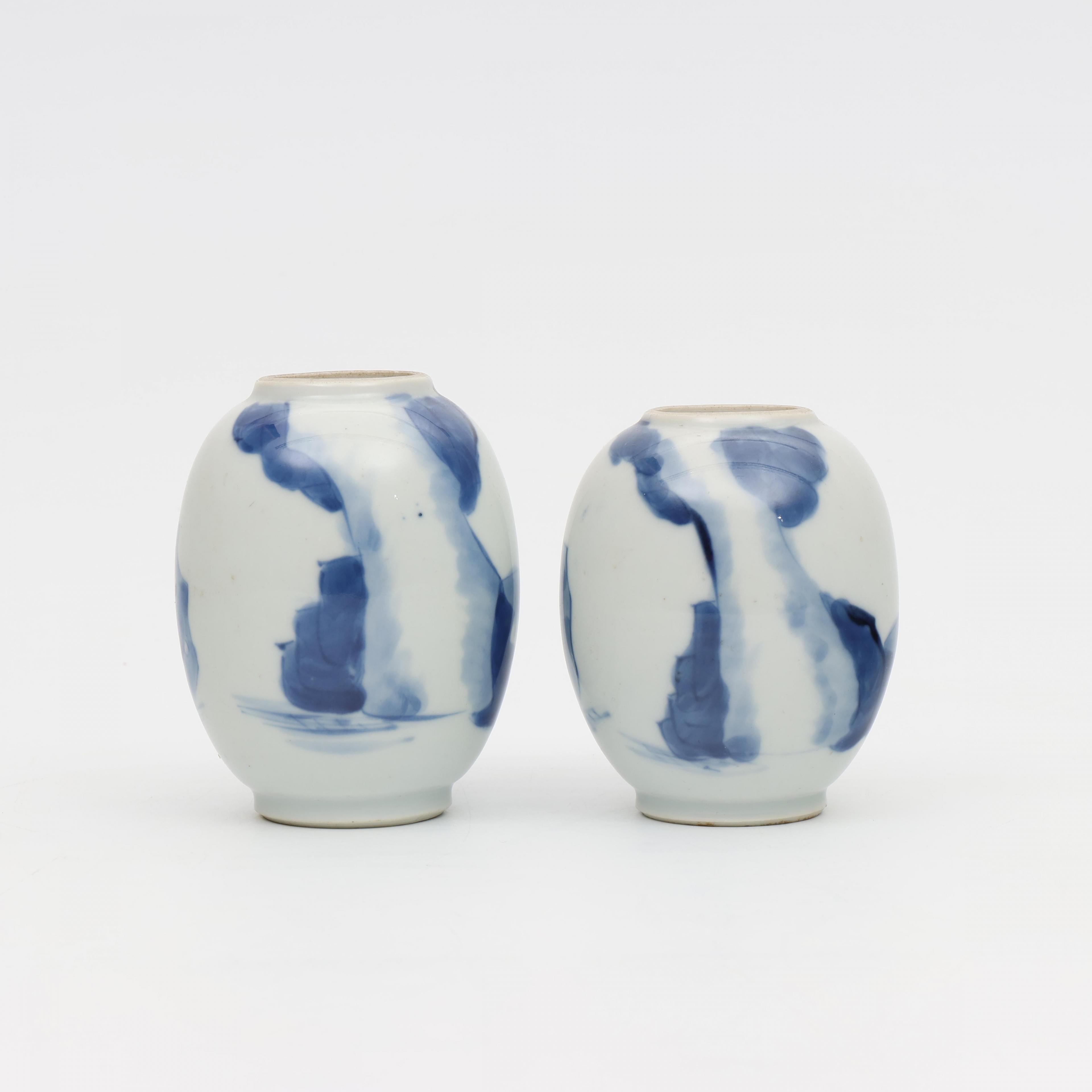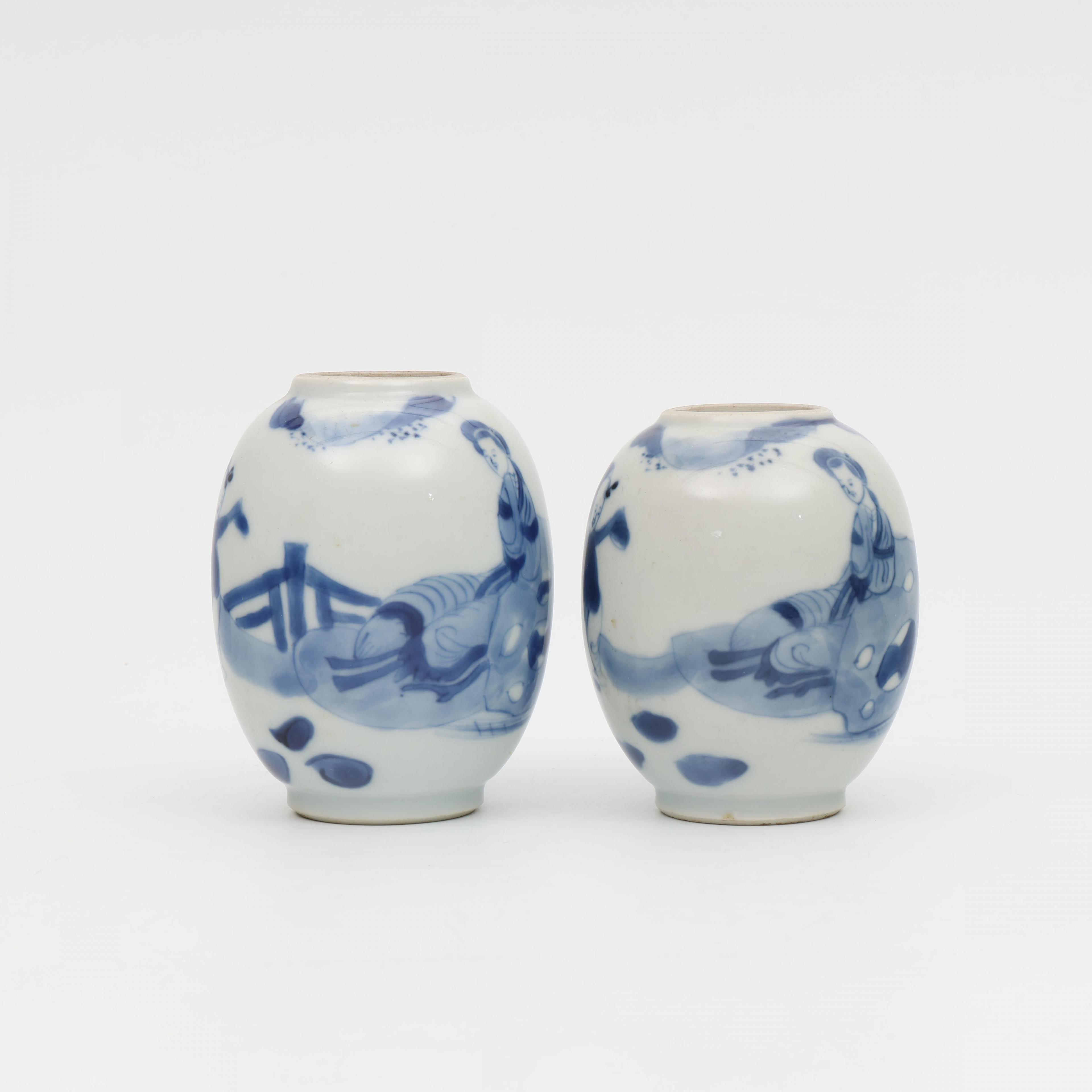 China, two blue and white porcelain oviform jars, Kangxi period (1662-1722),
