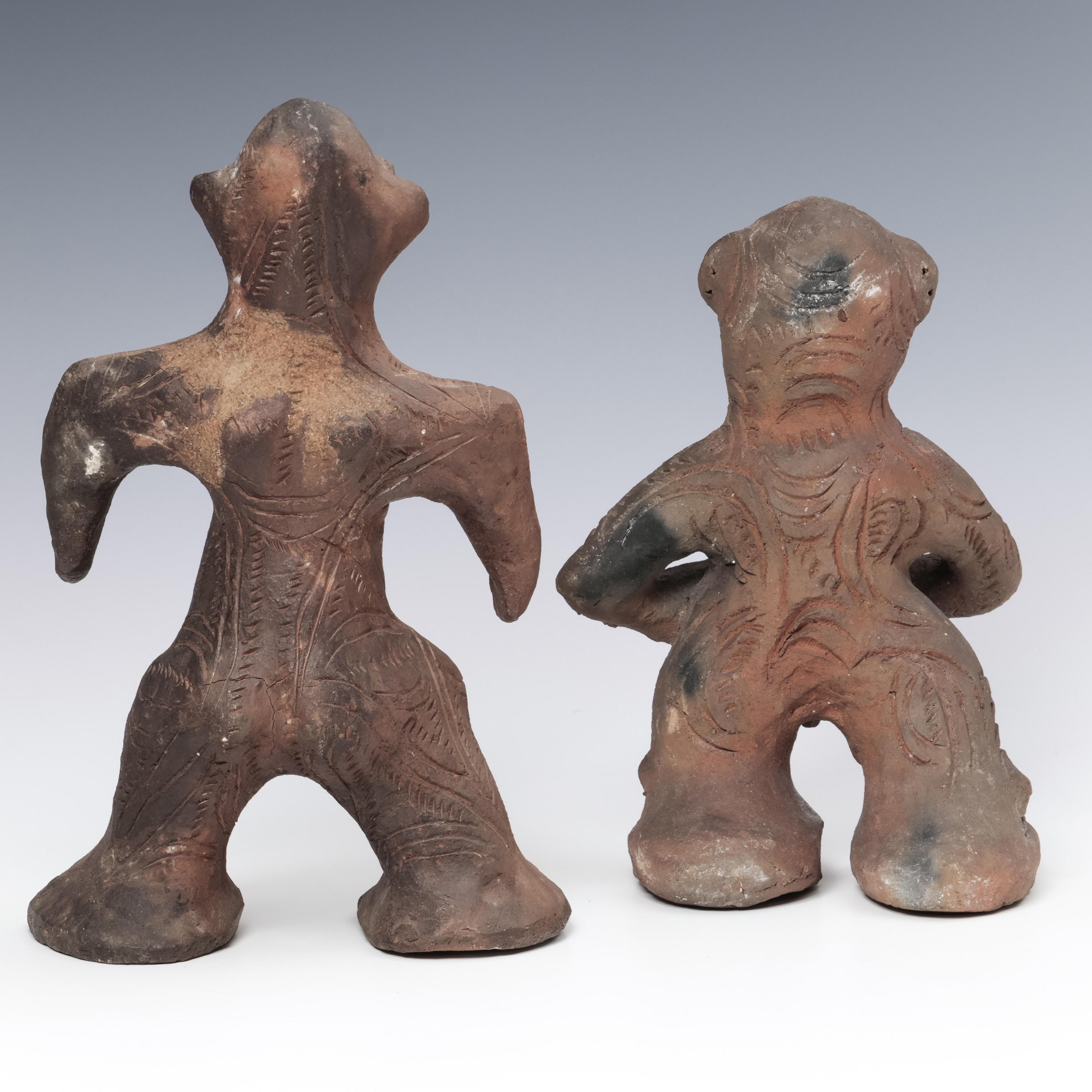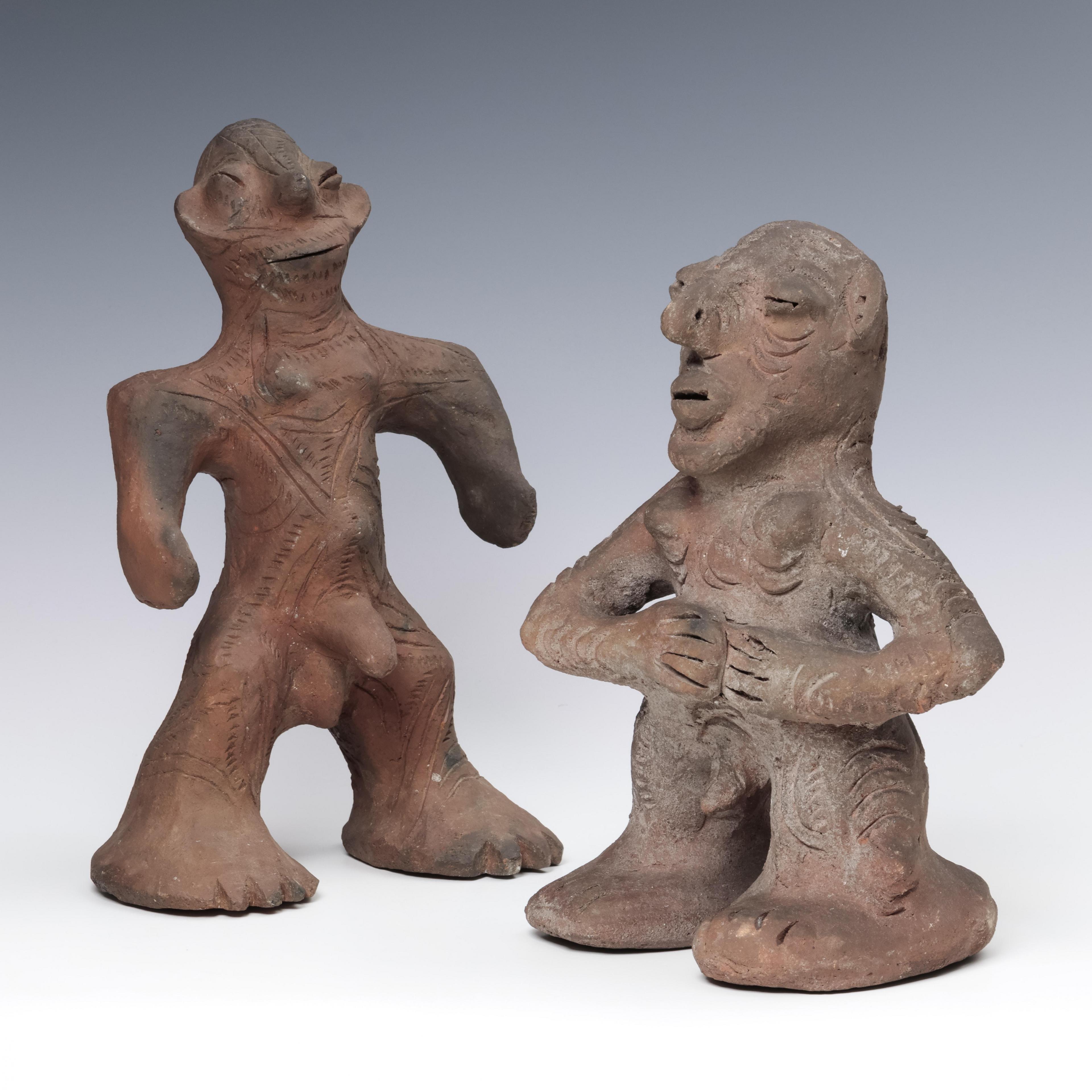 P.N. Guinea, Chambri Lakes, two terracotta standing male figures.