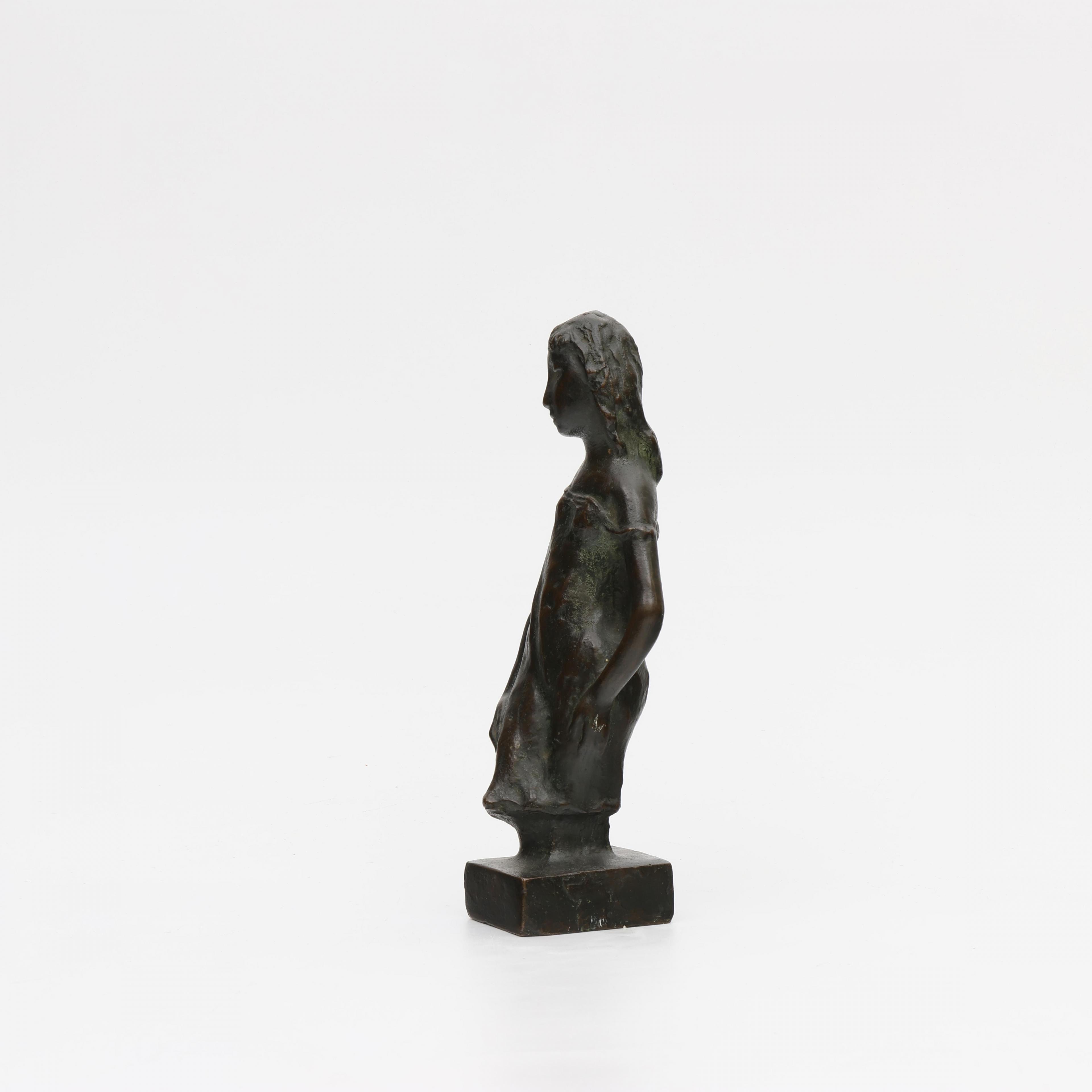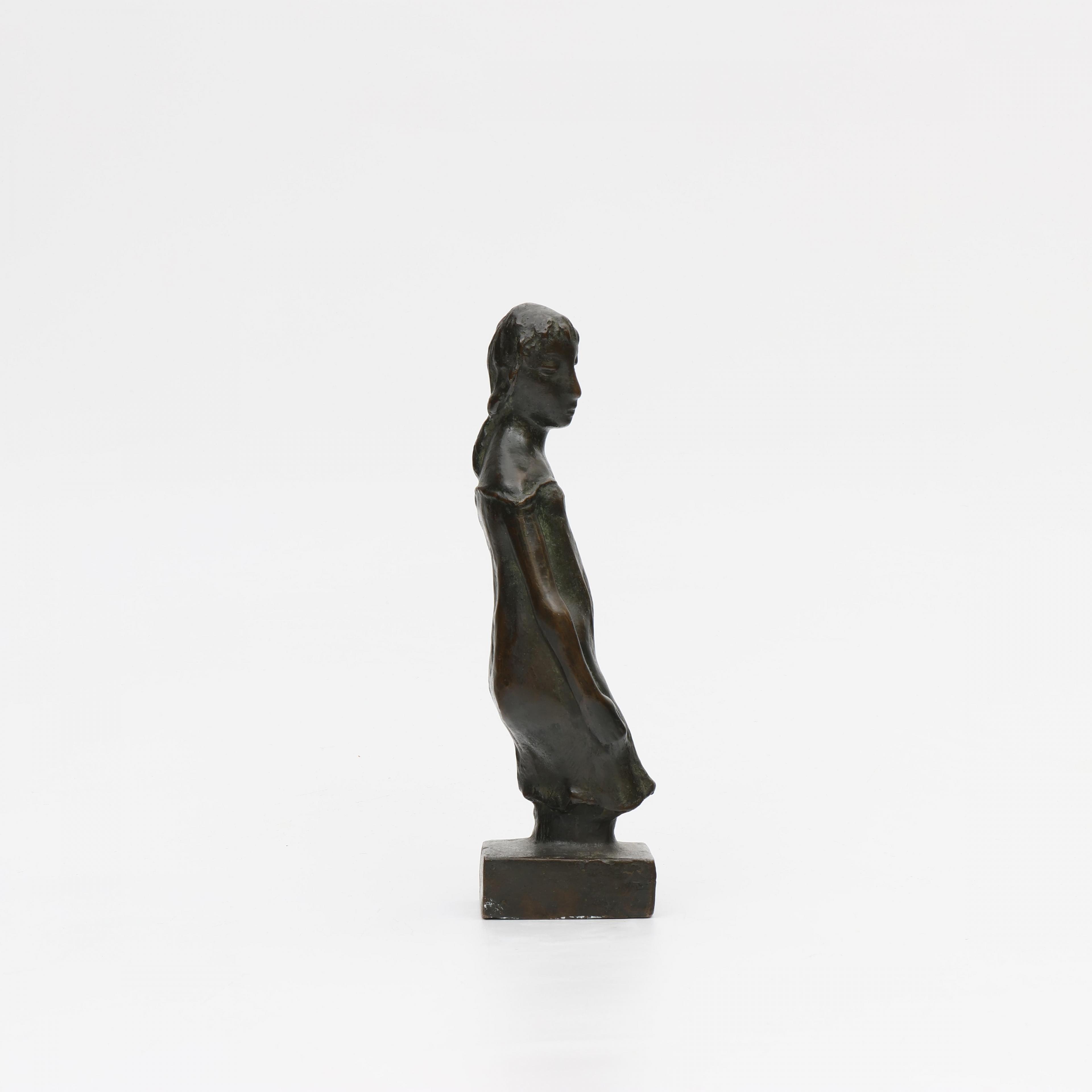Fritz Kormis (1897-1986), bruin gepatineerd bronzen sculptuur 'staand meisje',