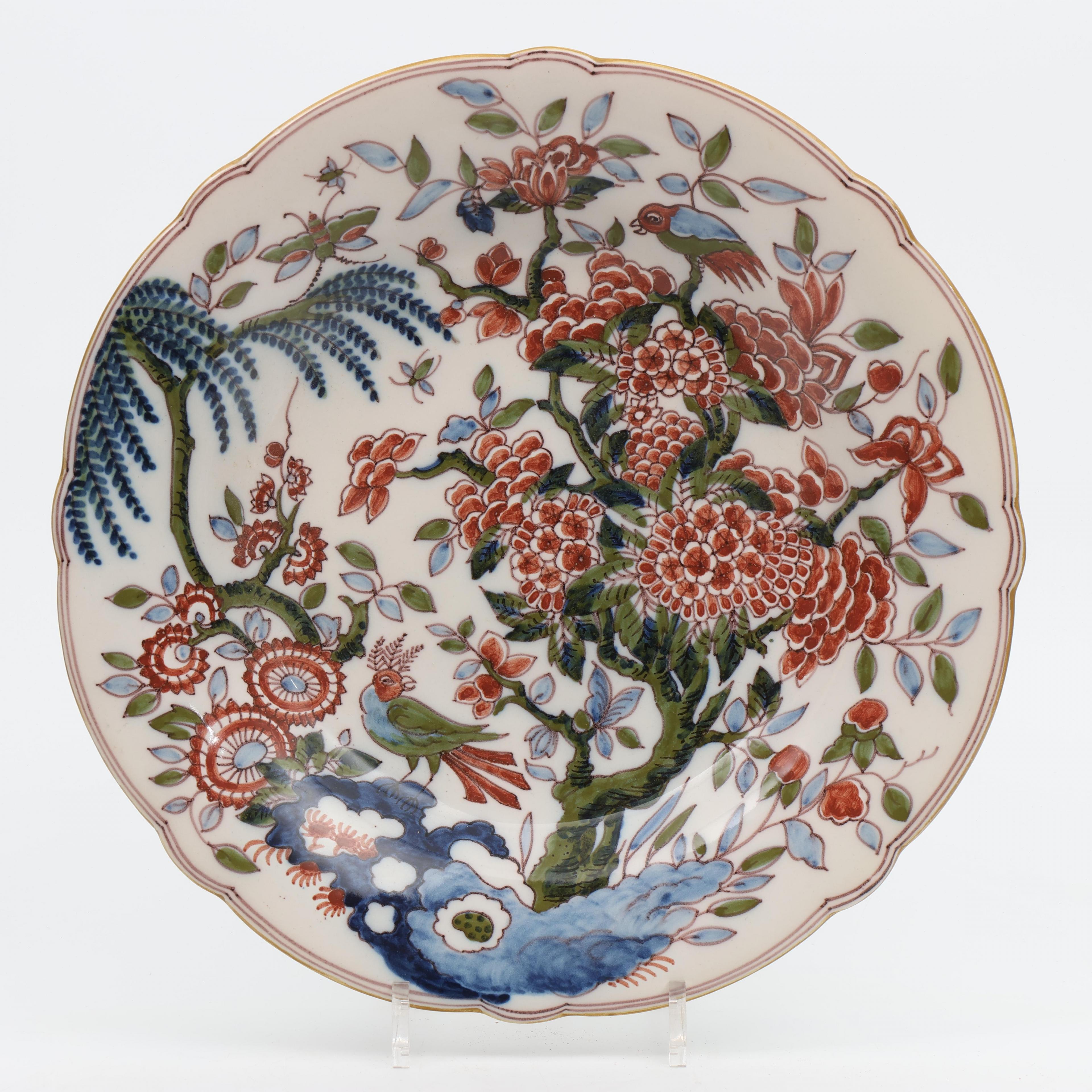 Uitgevoerd met voorstelling van bloemenstruik met vogels.