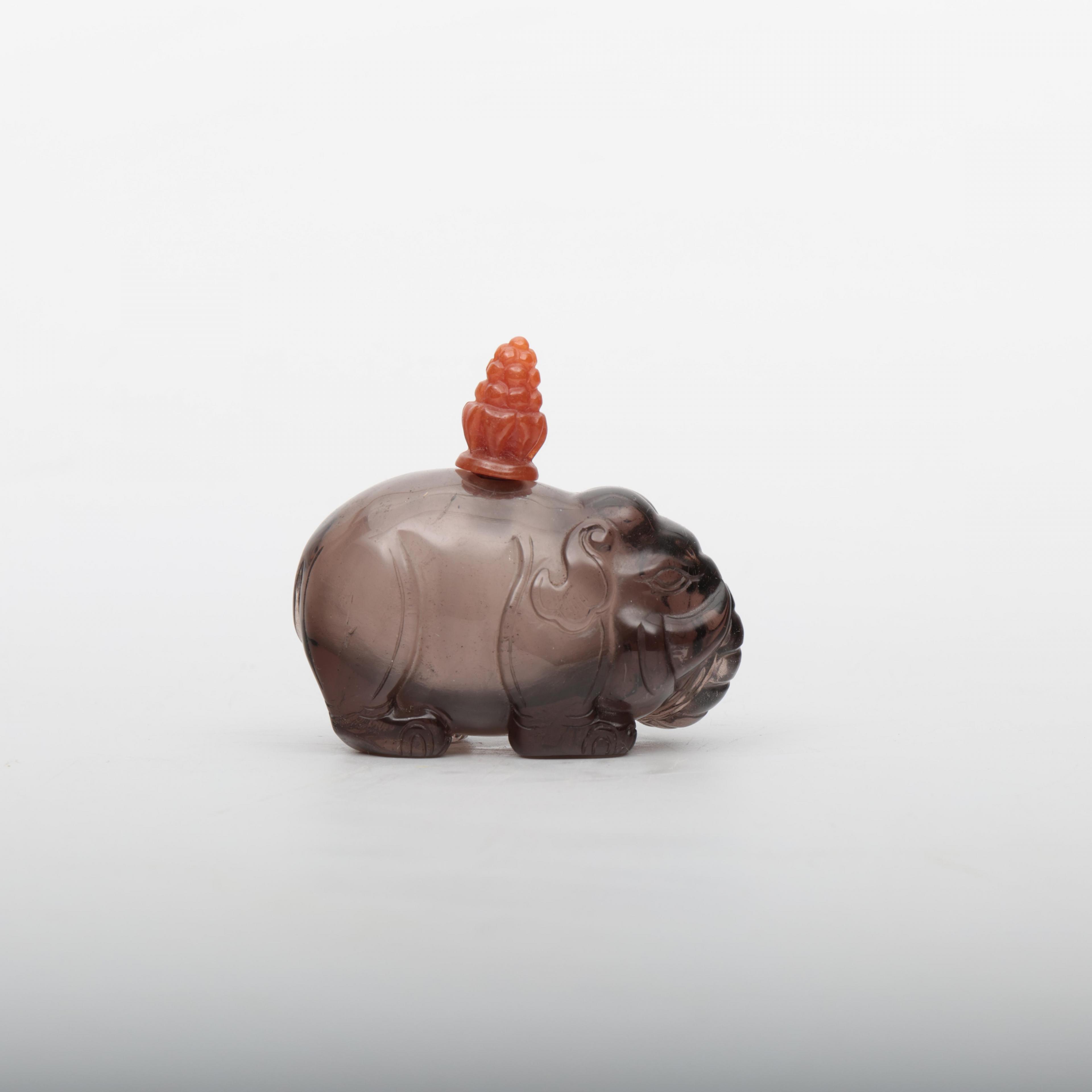 China, a smoke-quartz snuff bottle shaped as an elephant, 20th century,
