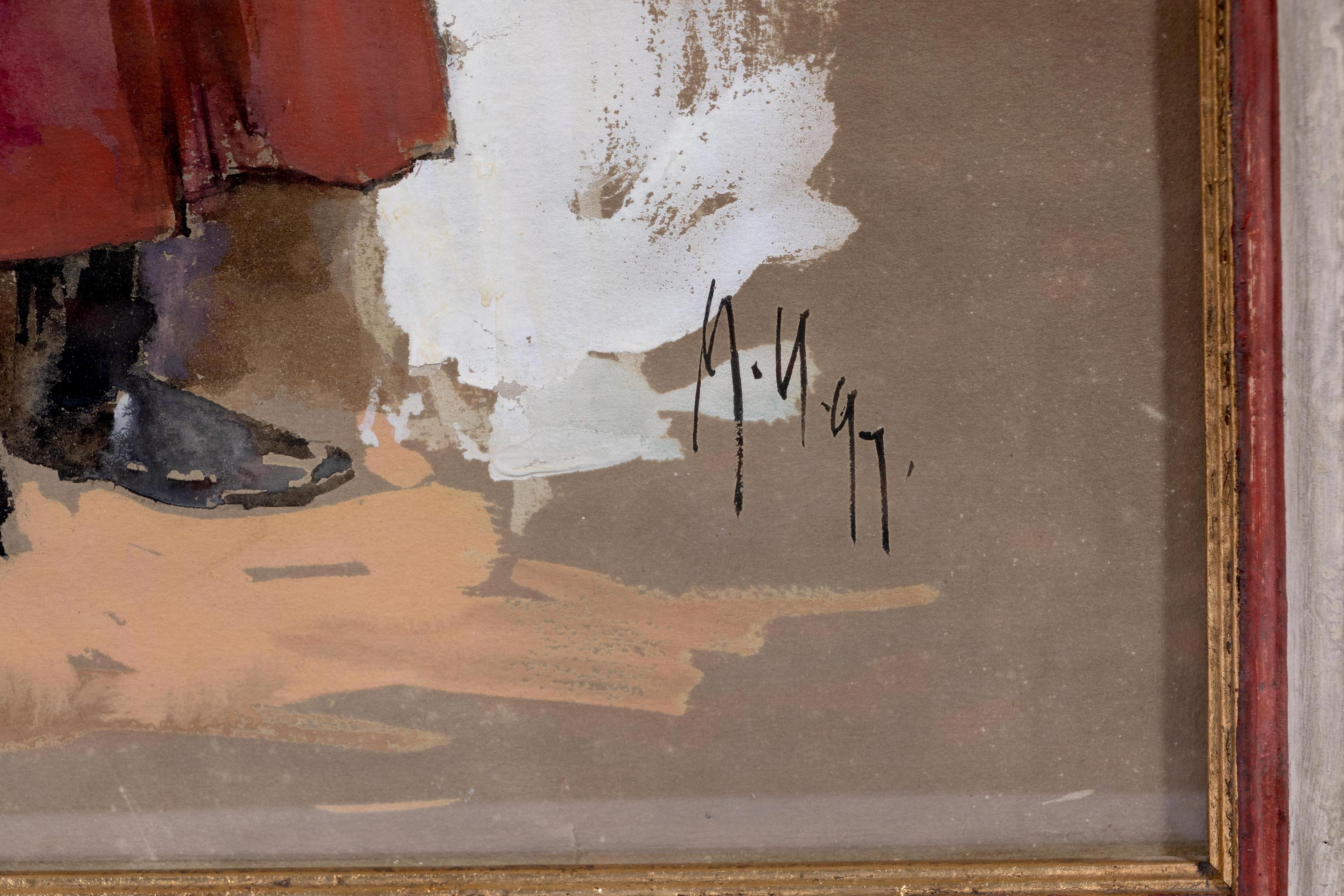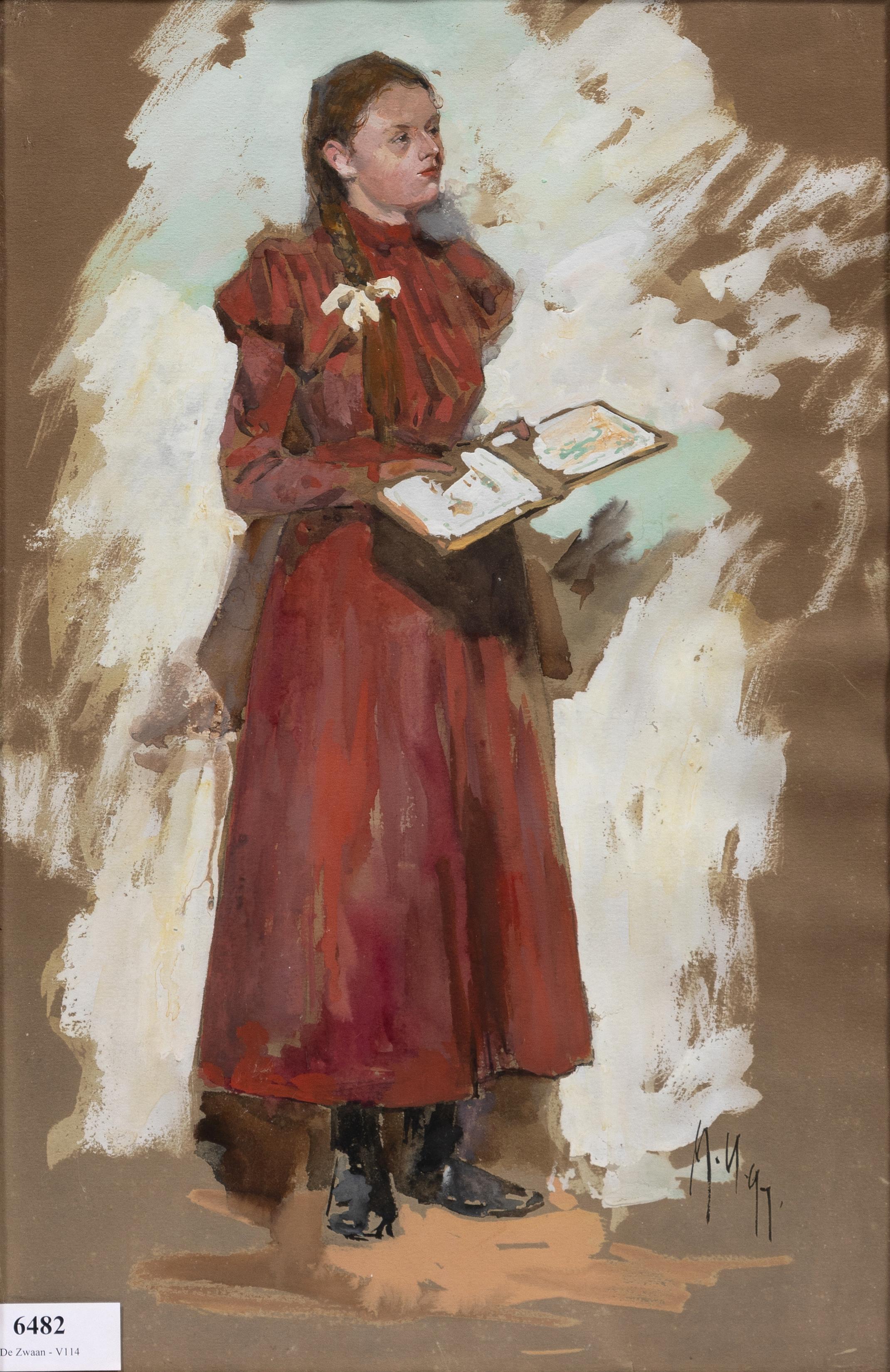 aquarel en gouache, gesign. r.o., '99, 44 x 28 cm.