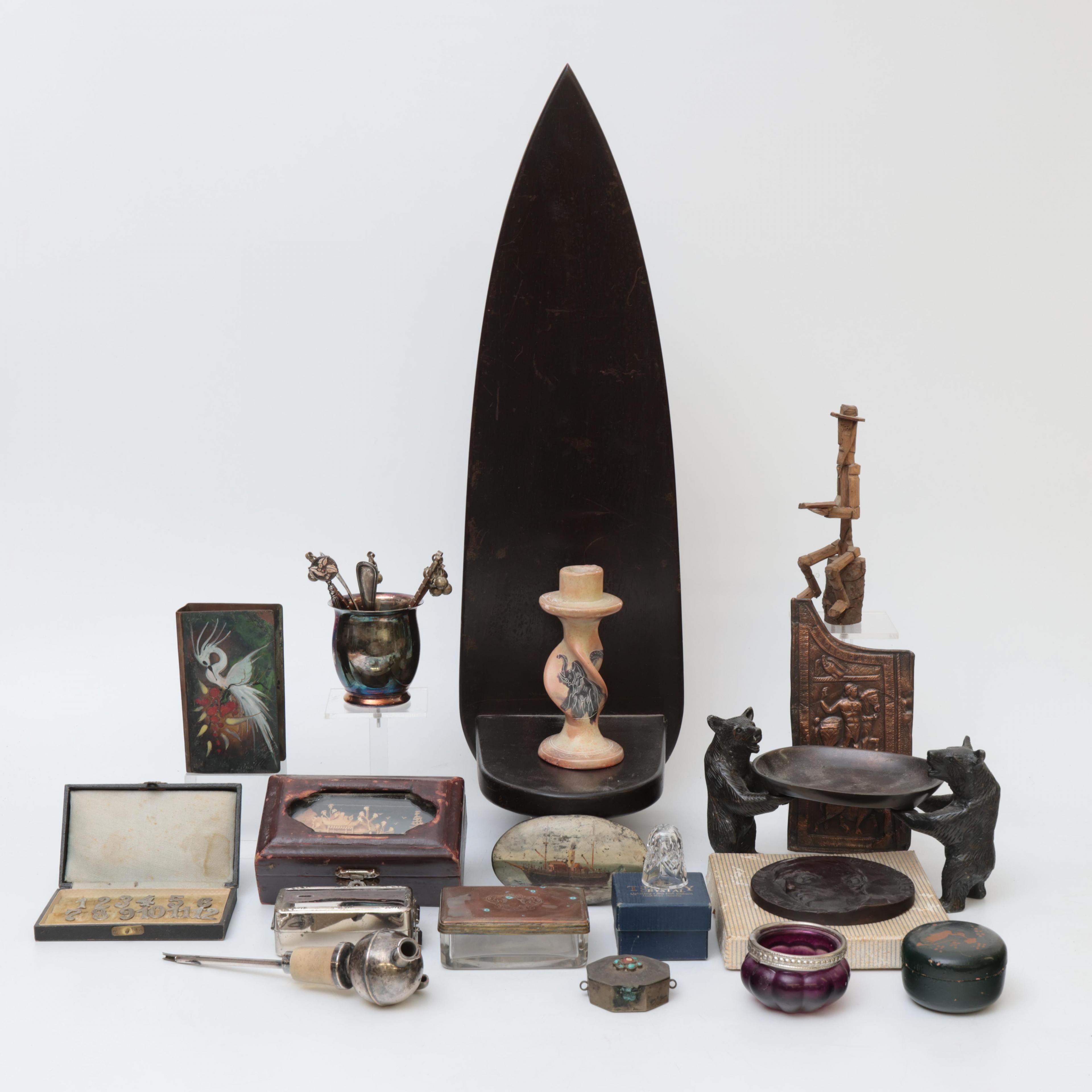w.o. wandconsole, theelepels en bronzen penning.