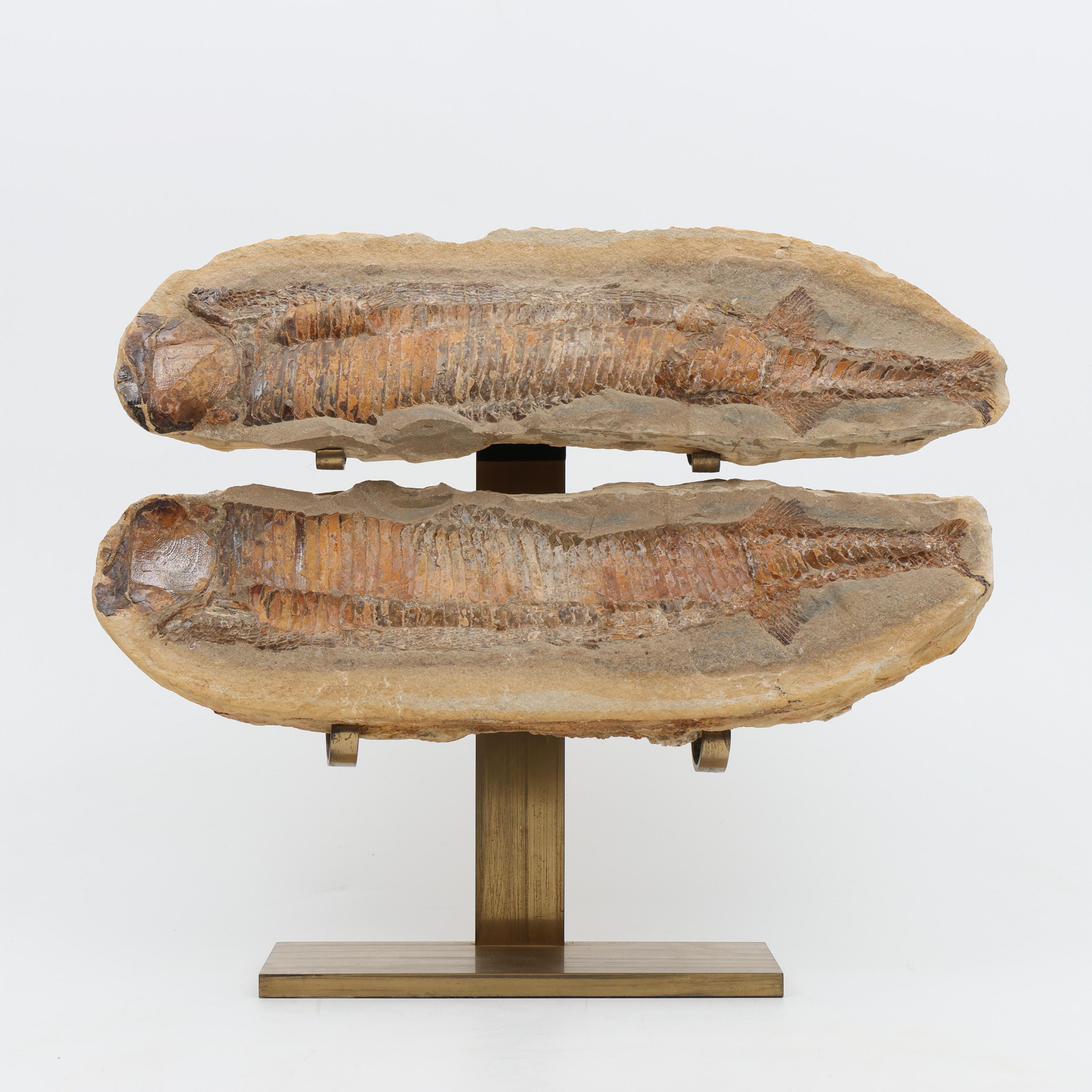 Fossiele vis in twee helften, vermoedelijk Zuid Amerika;