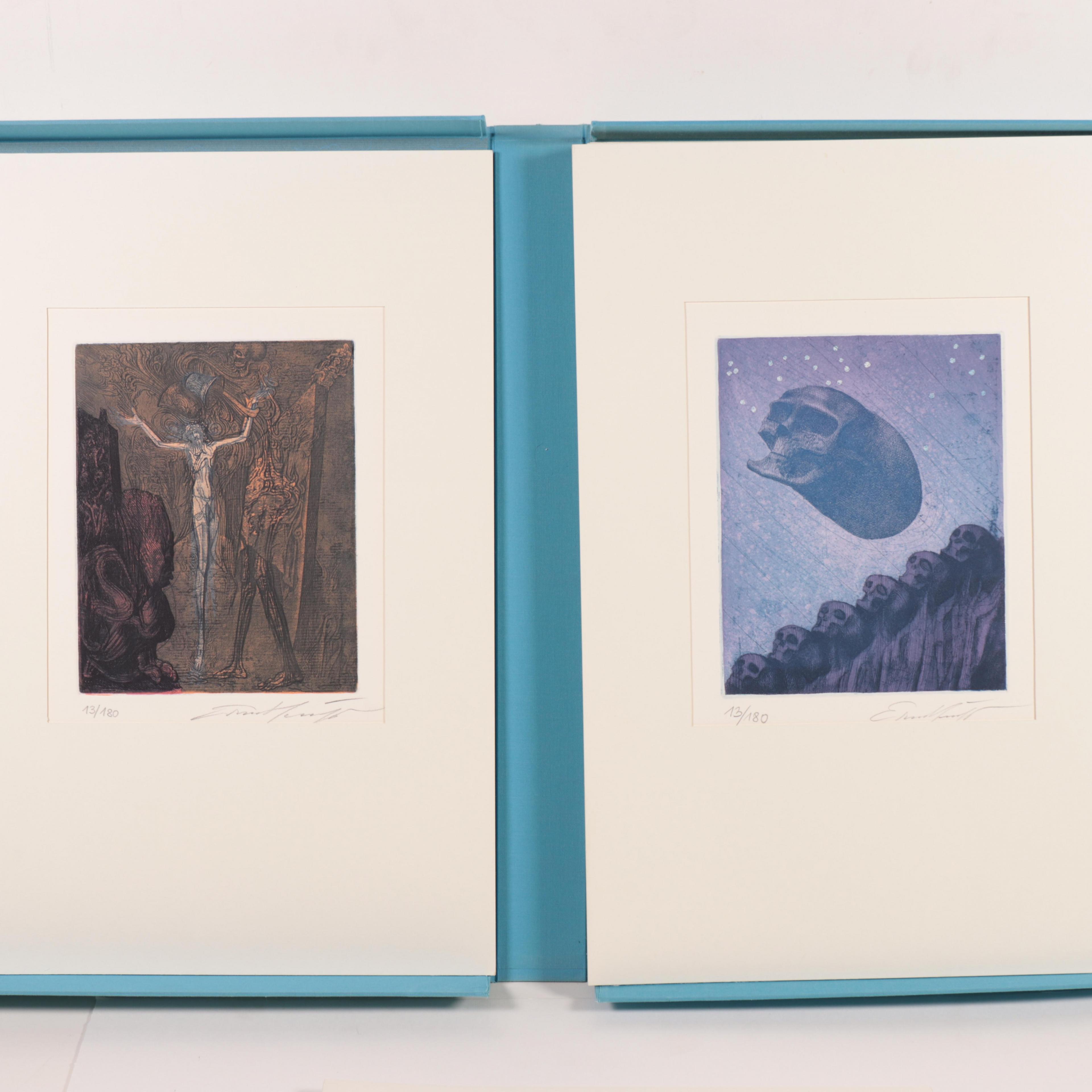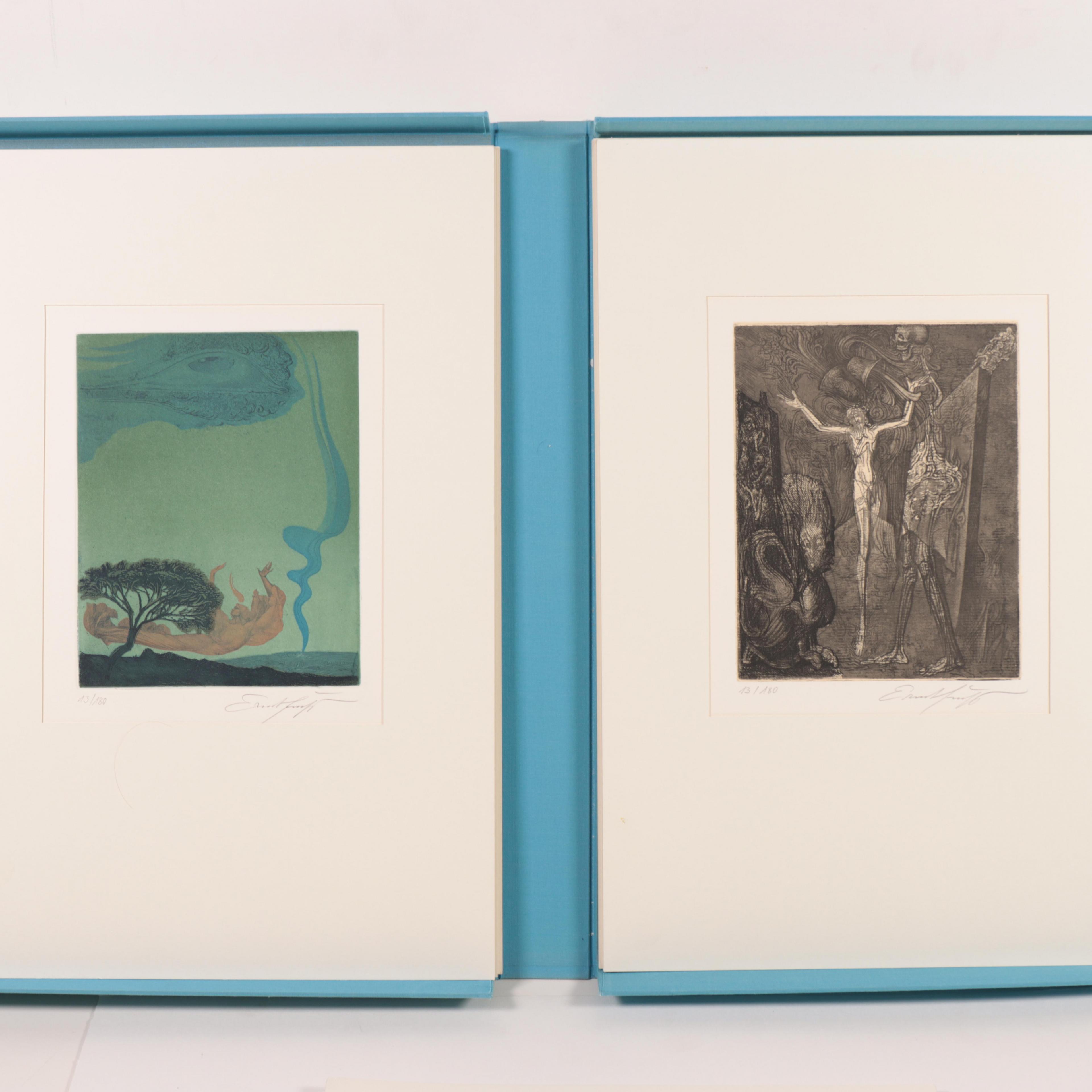 portfolio met 12 etsen, allen gesigneerd en genummerd 13/180, beeld blad 57 x 38 cm.