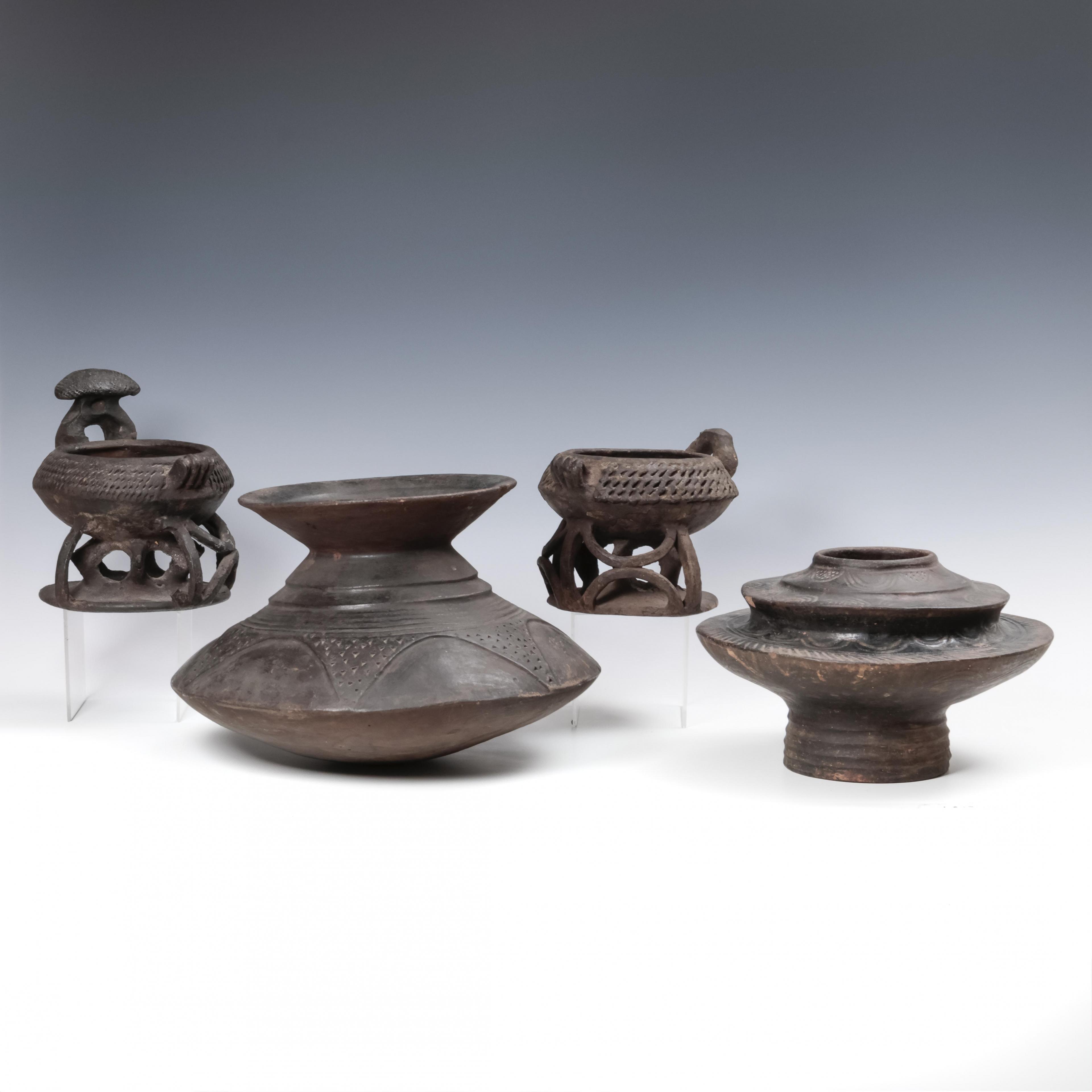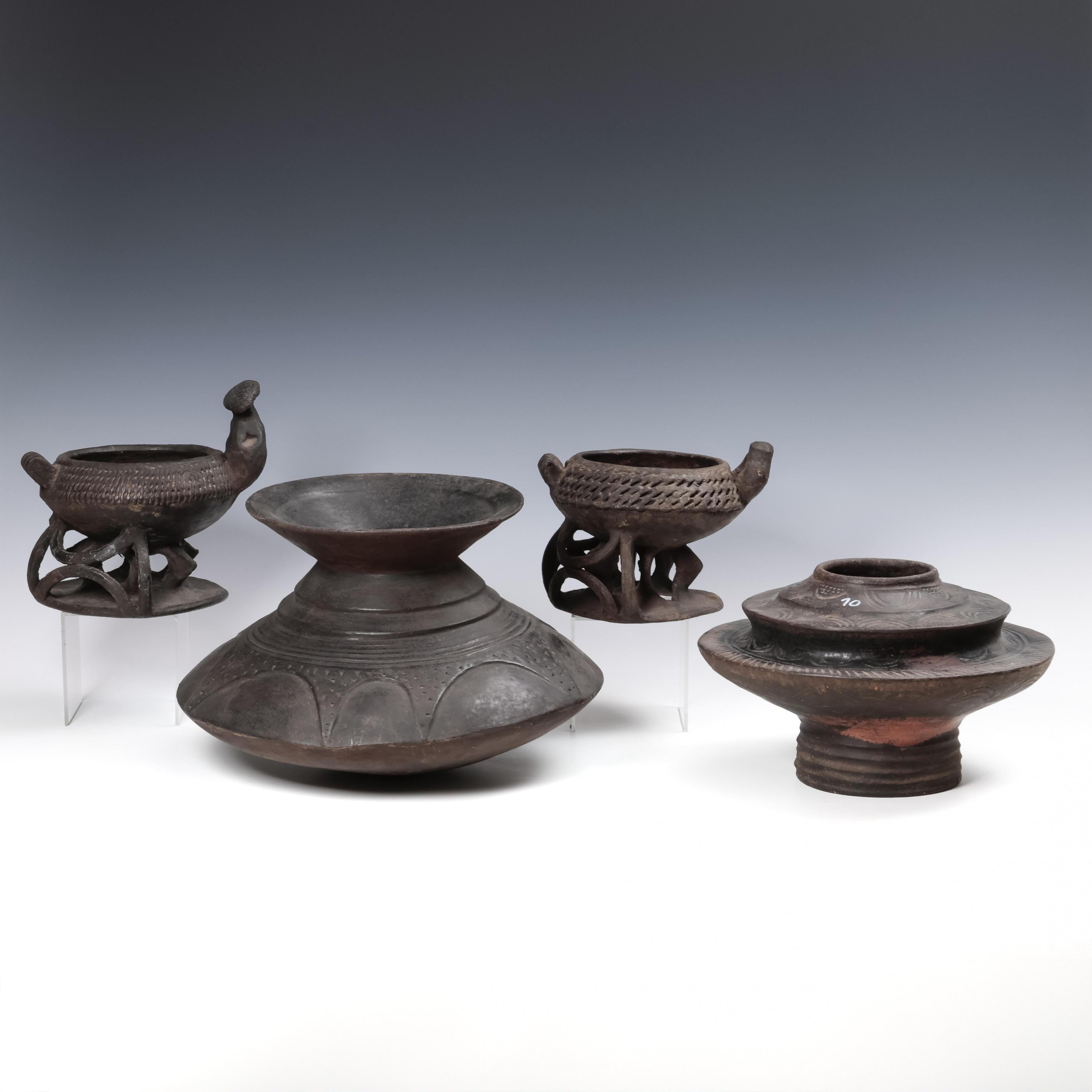 Ghana, Akan, two terracotta bowls and Grasslands, two terracotta ceremonial bowls.