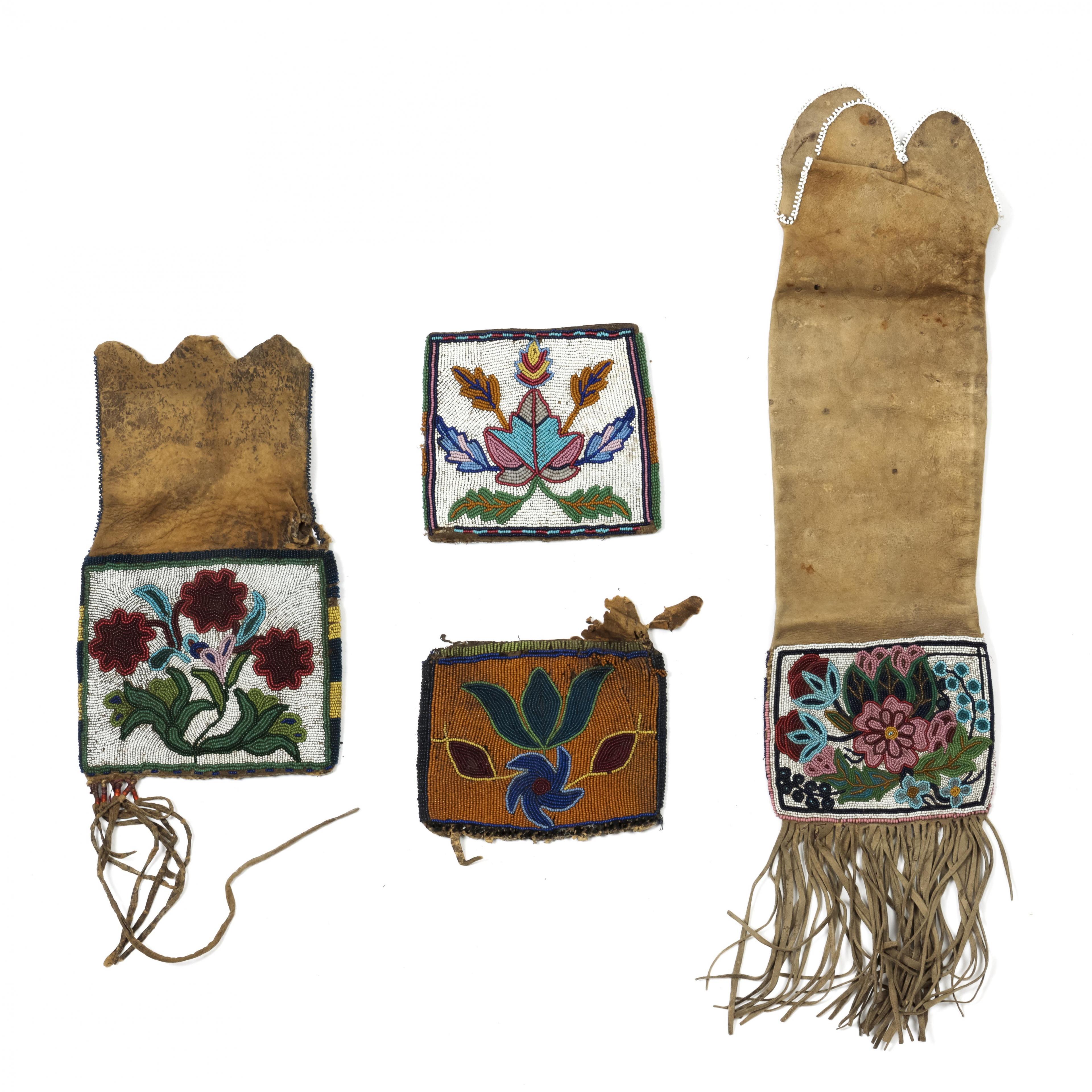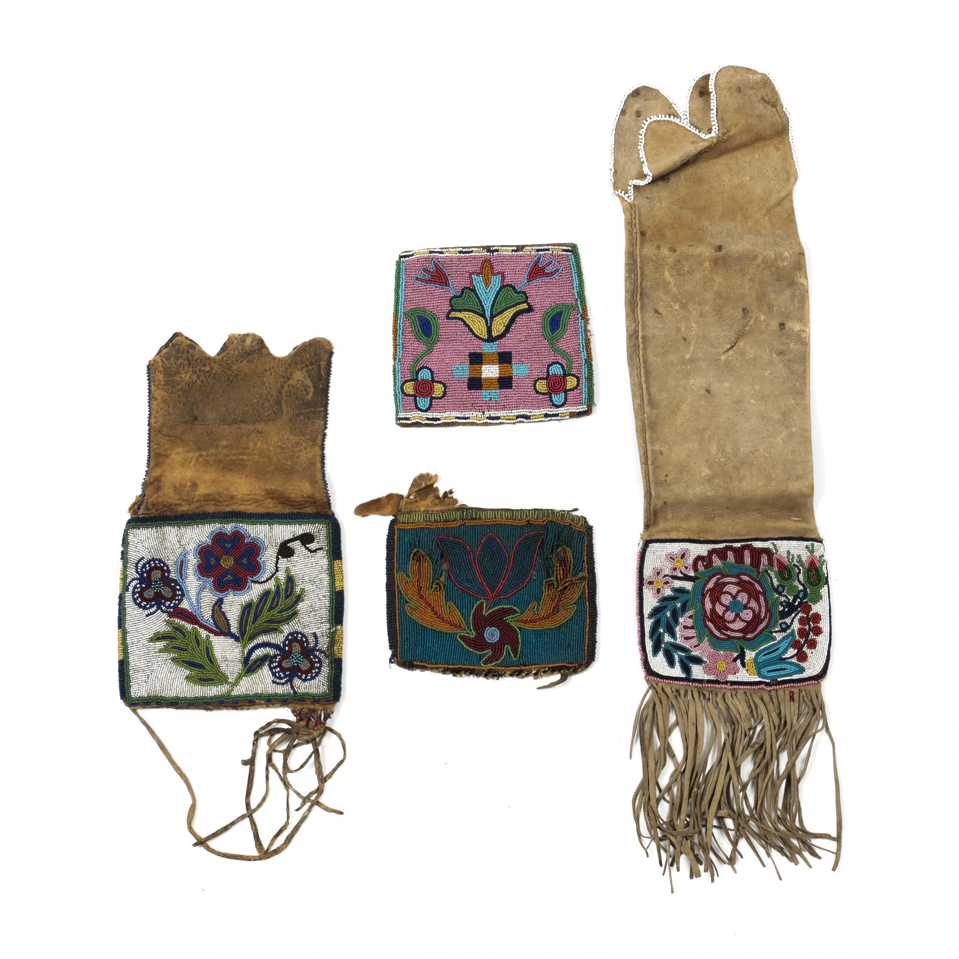 North America, Native American, Great Plains, a collection of two bags and two pipe bags;