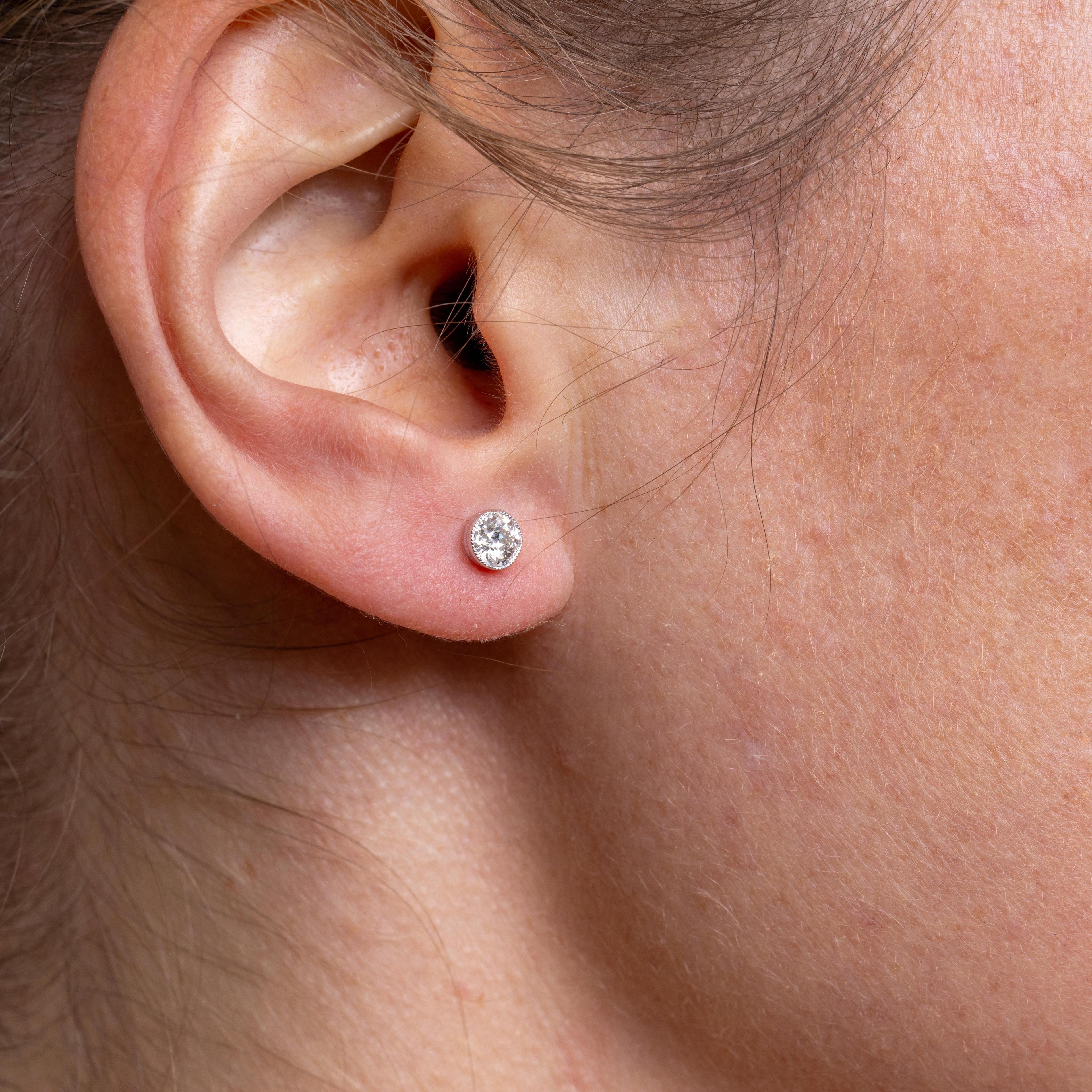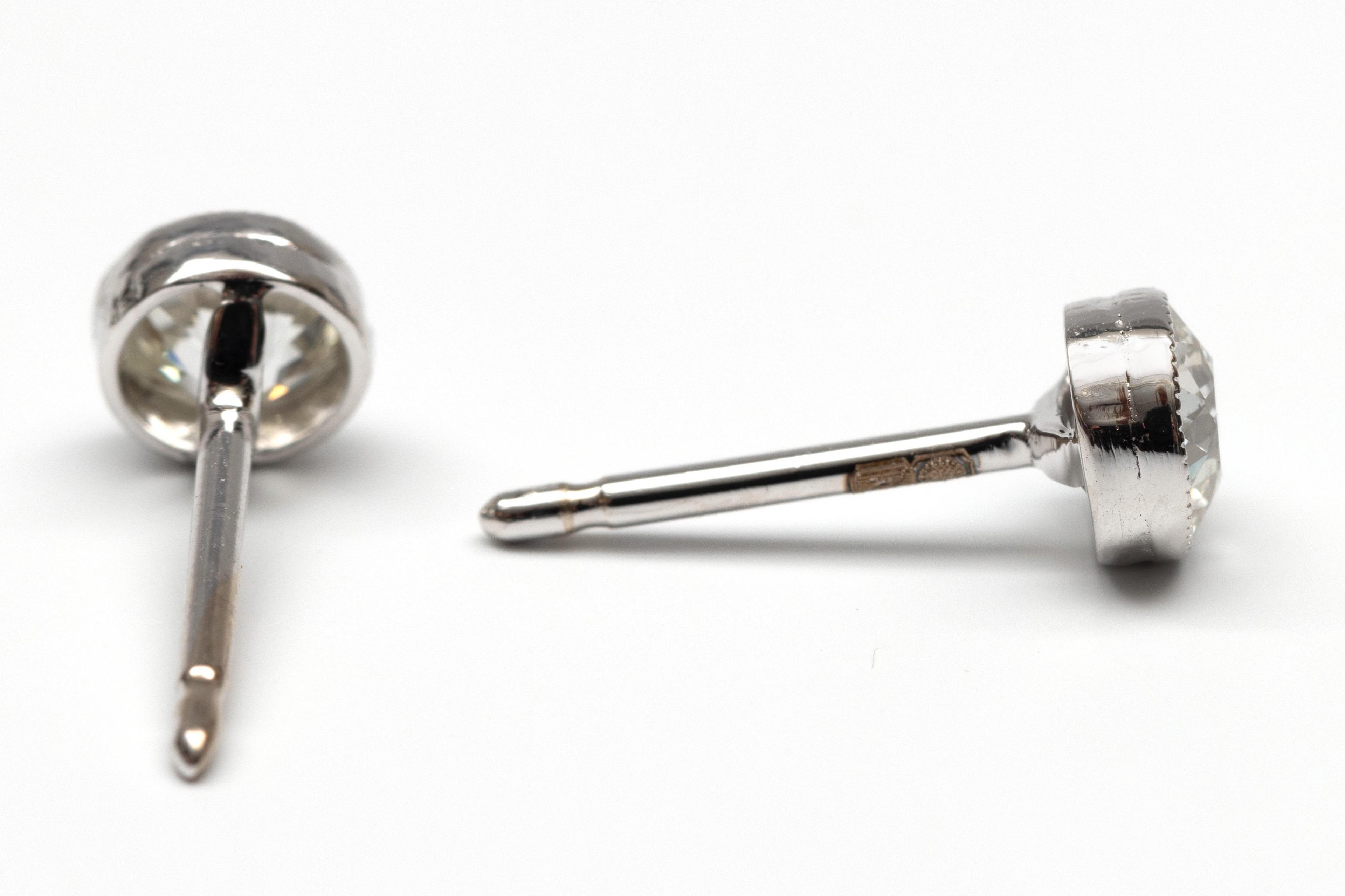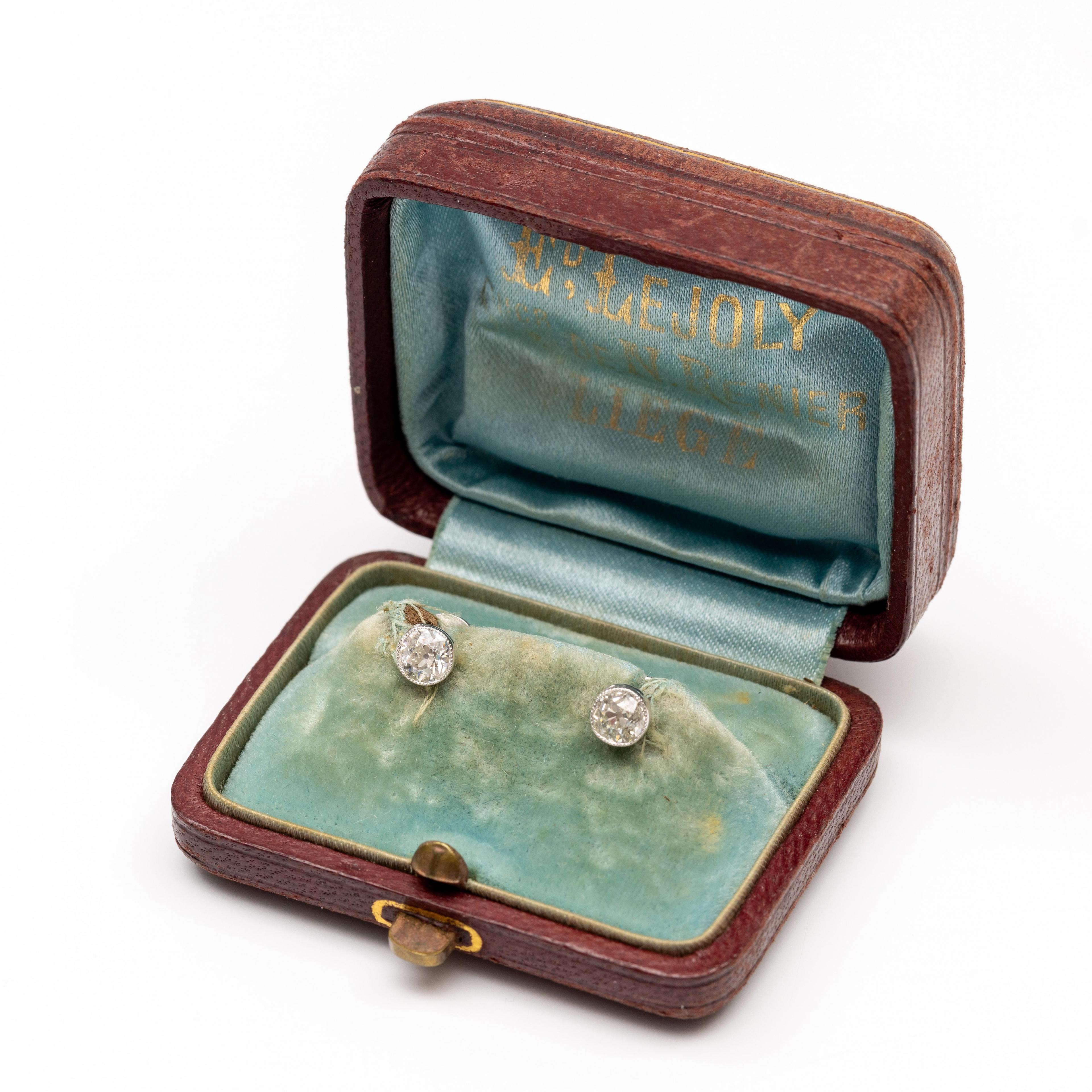 14 k. white gold and platinum solitaire stud earrings. Each set with an old brilliant-cut diamond with a total weight of approximately 0.80 ct. Presented in a brown leather box.