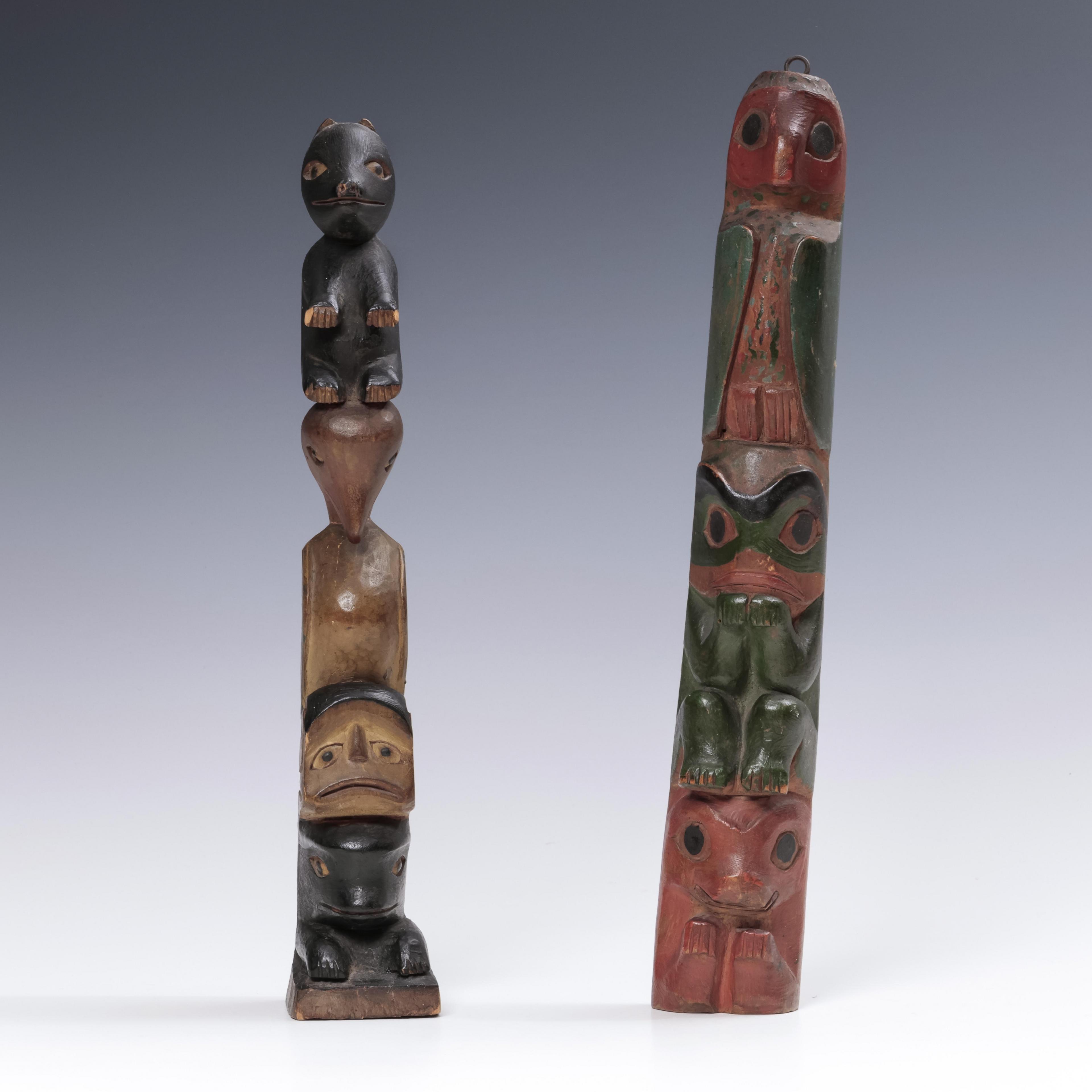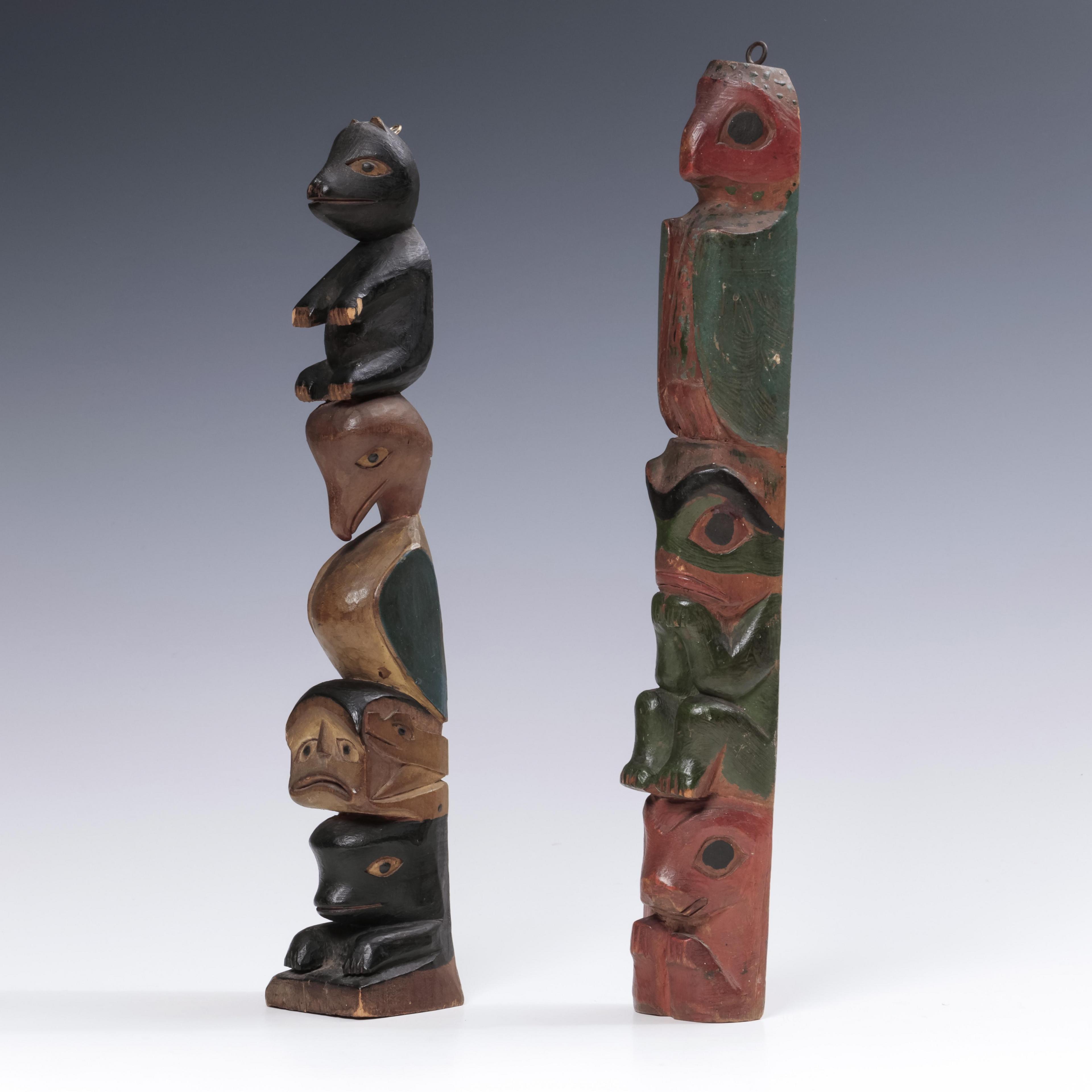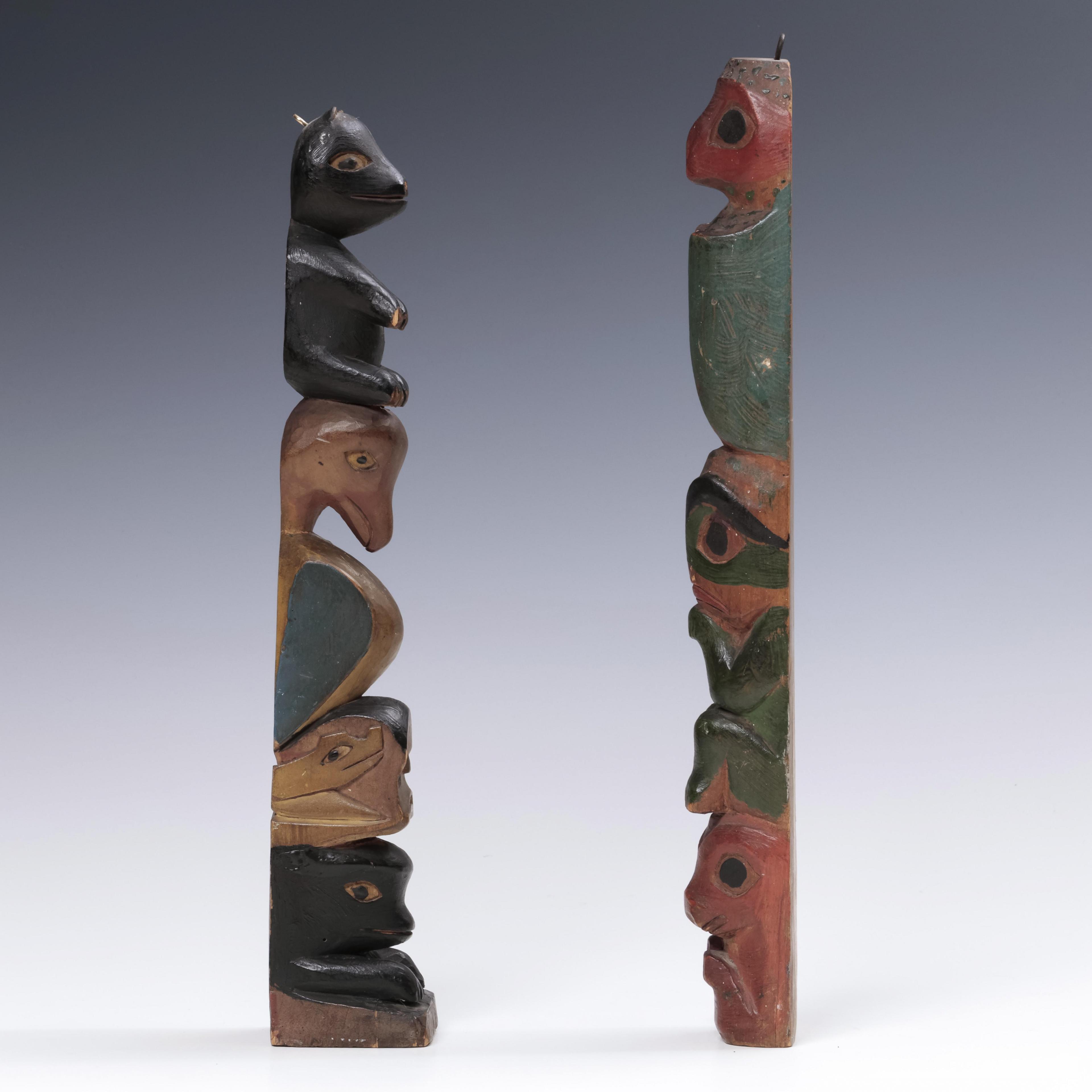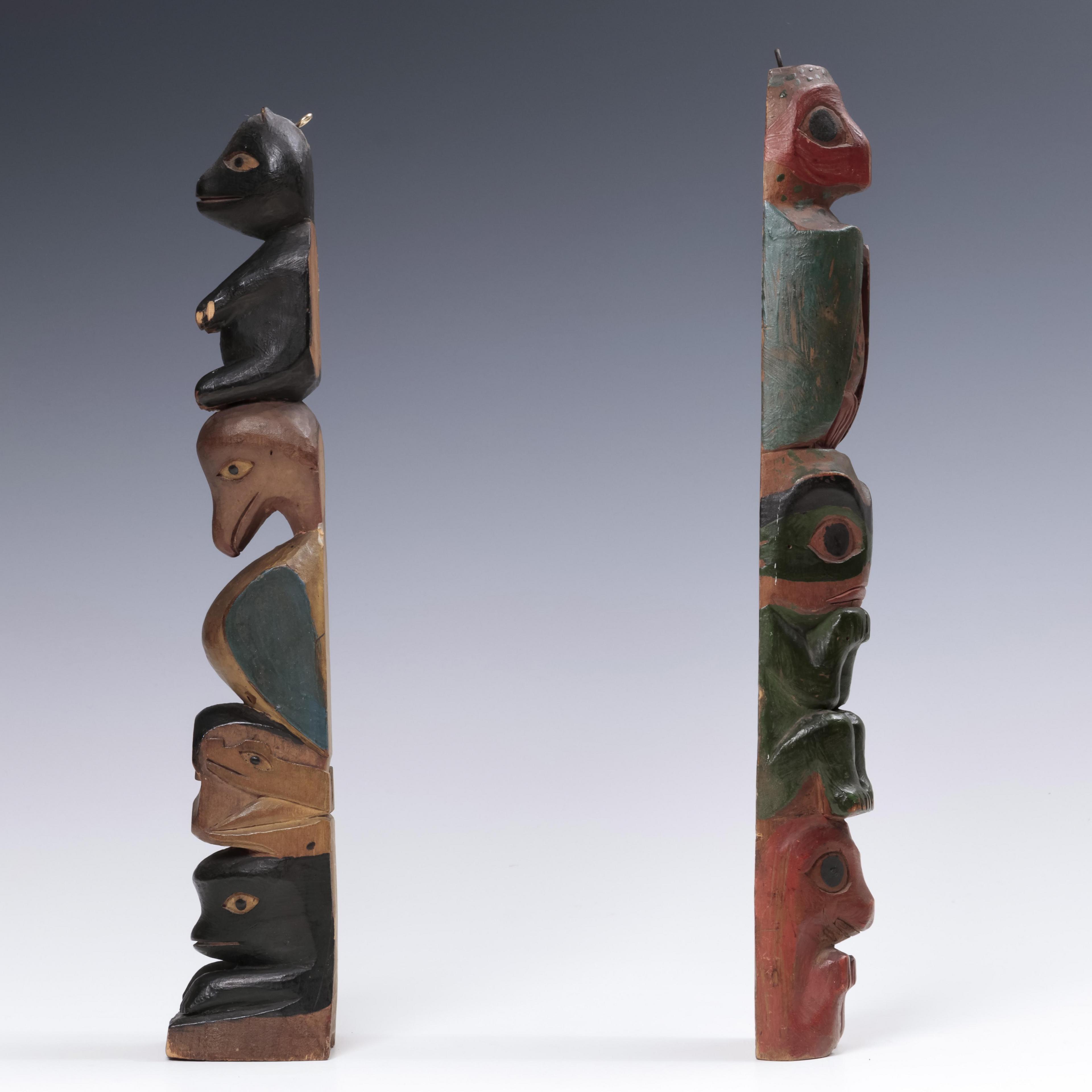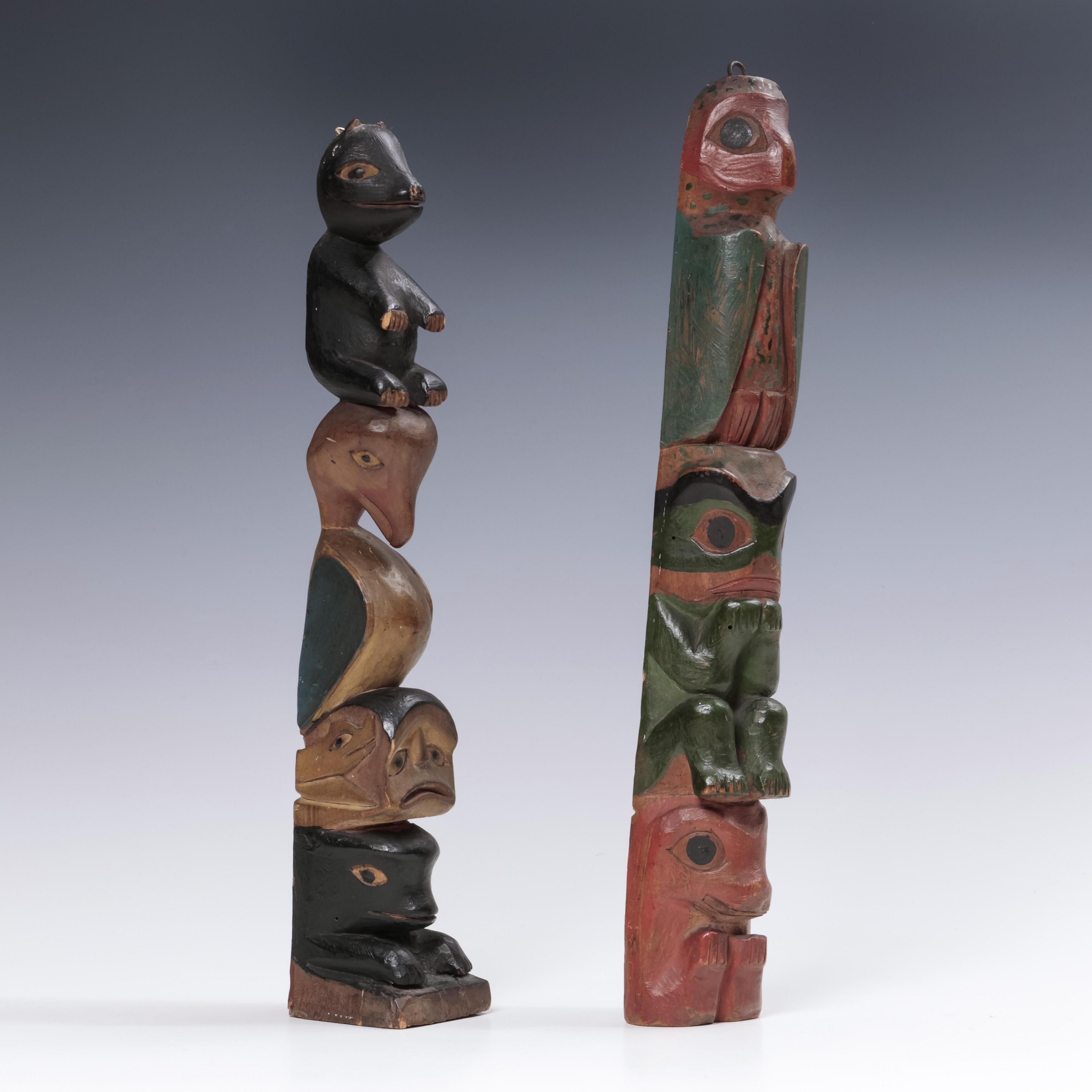 America, Northwest Coast, Haida, two miniature wooden totem poles, early 20th century;