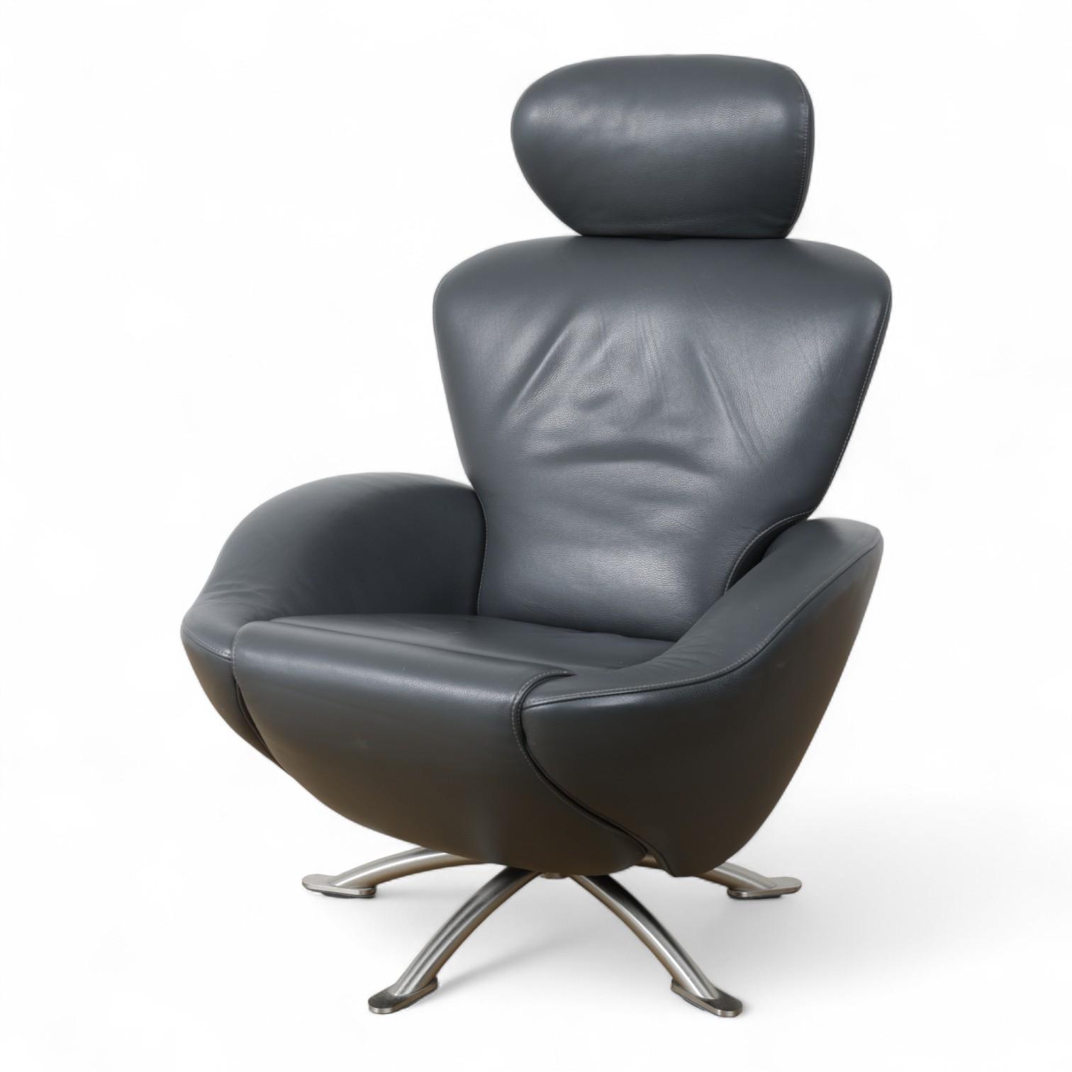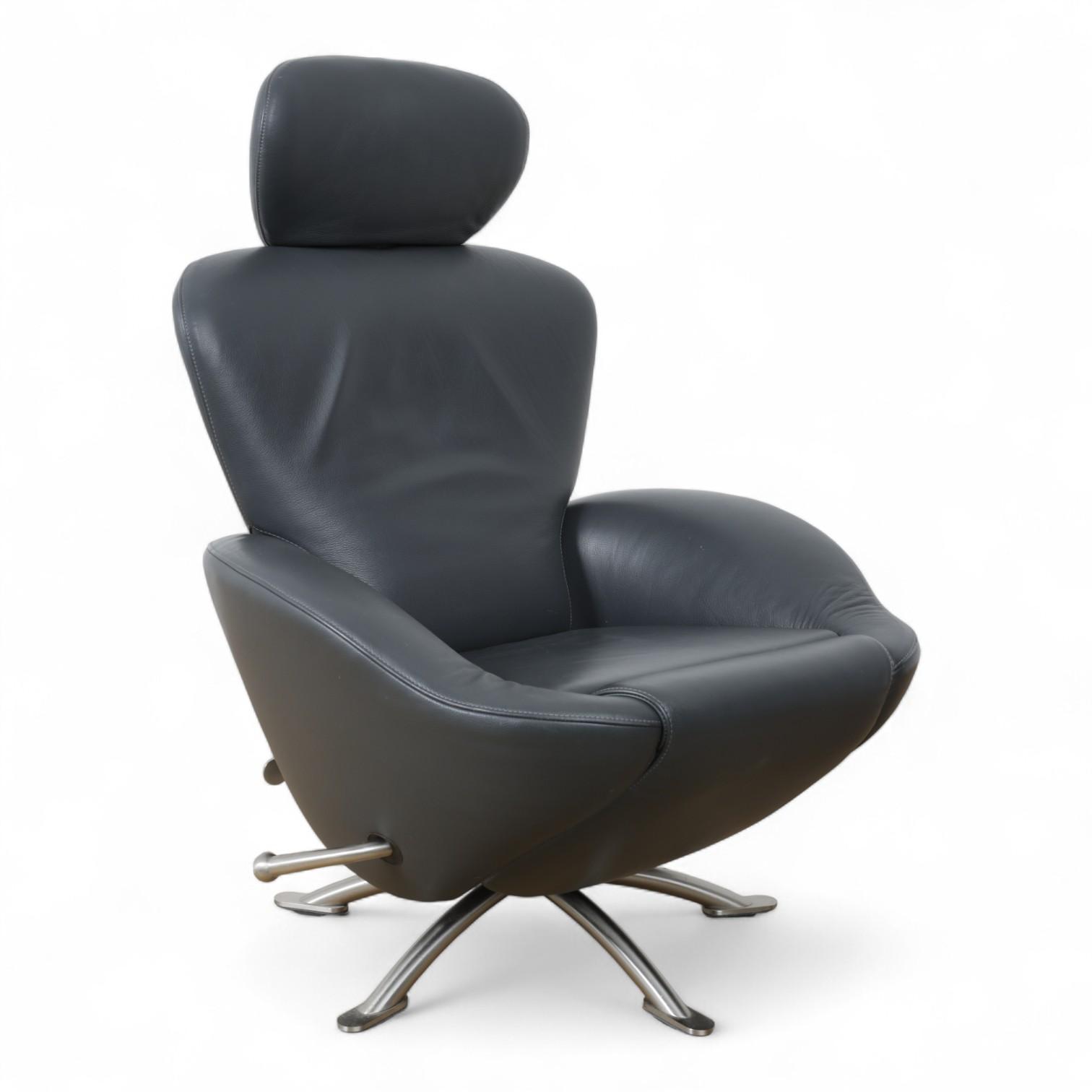 Antraciet grijs leder op stalen vijfsprant. Verstelbaar en draaibaar