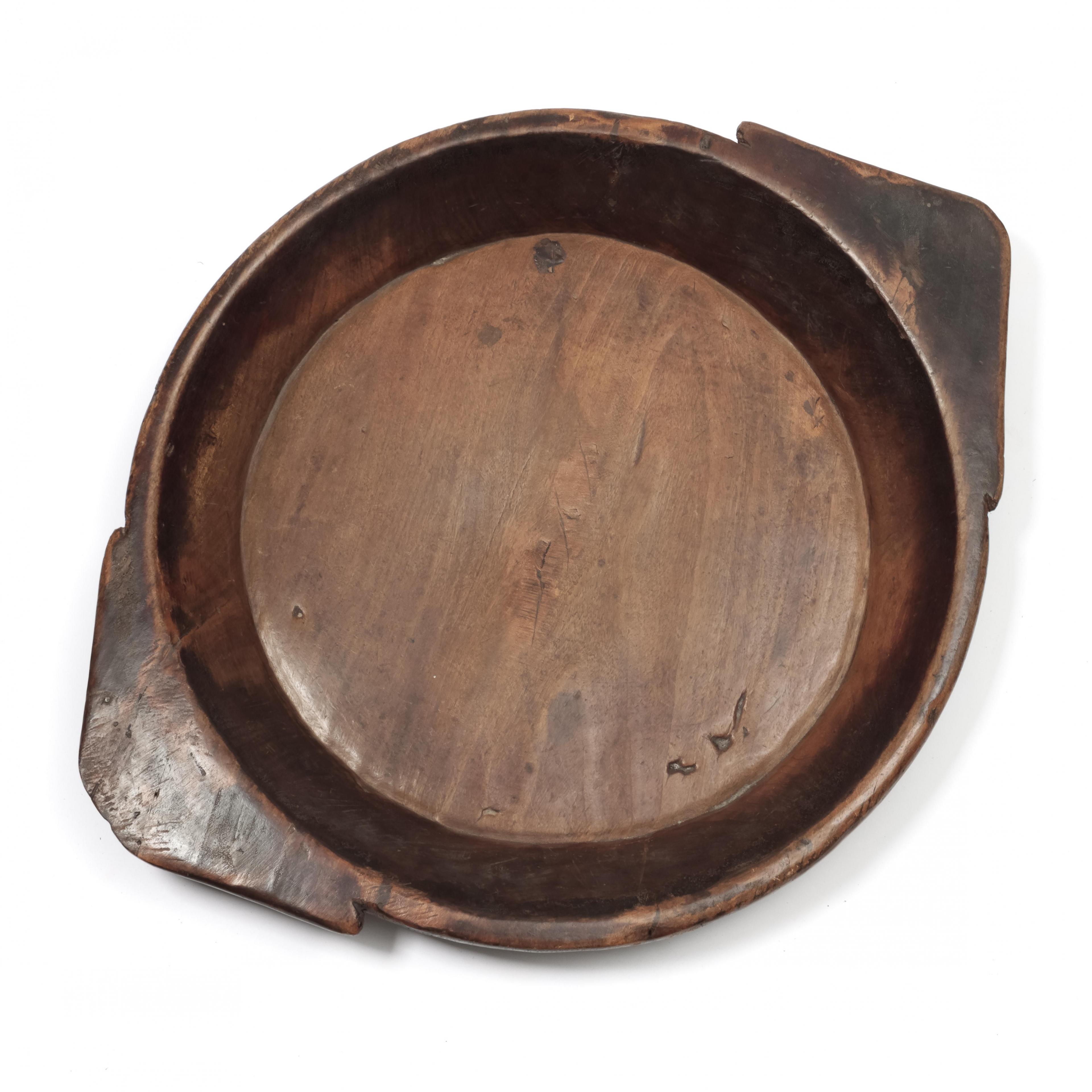 Two West African wooden bowls, a bamboo container, an Asian container and a large wooden platter.