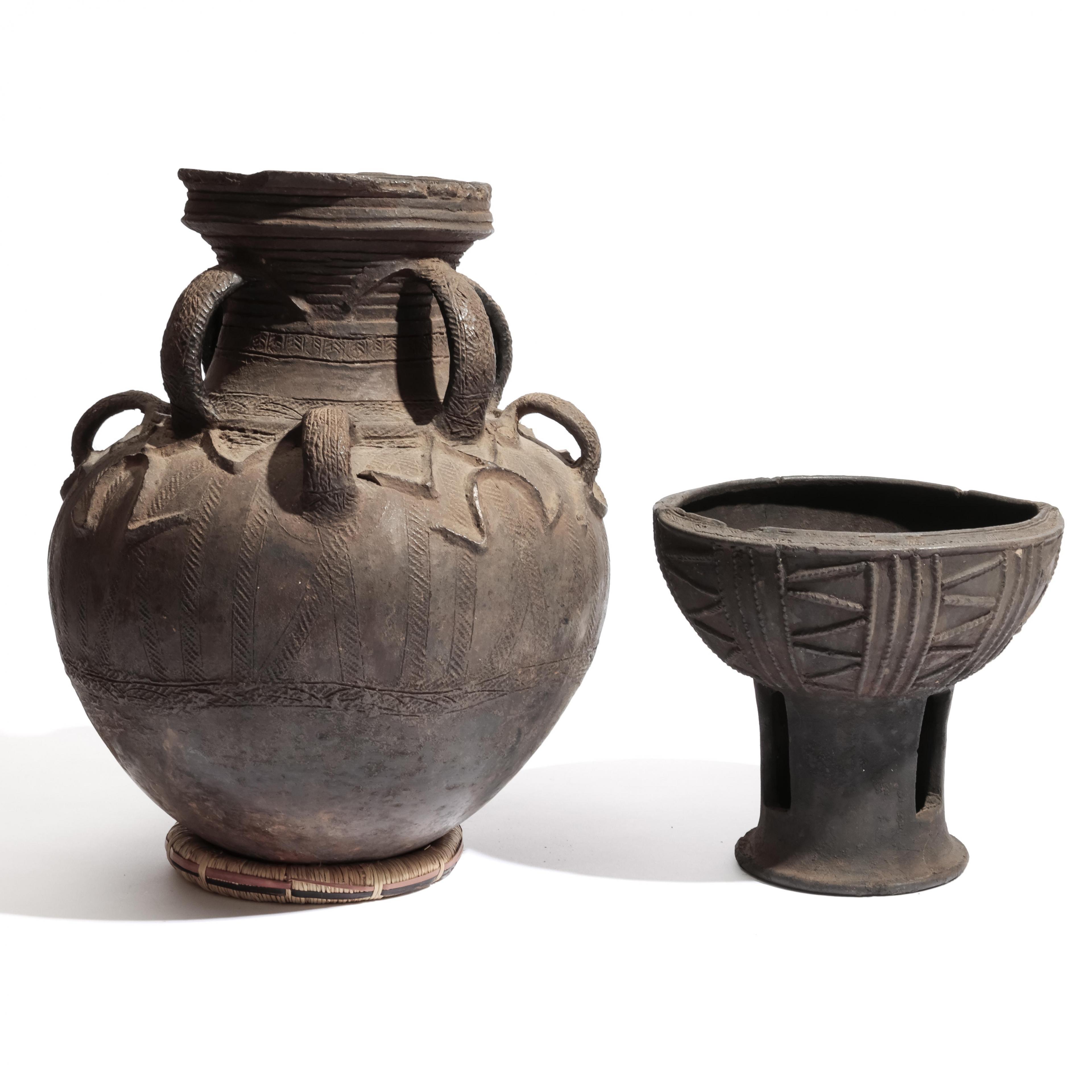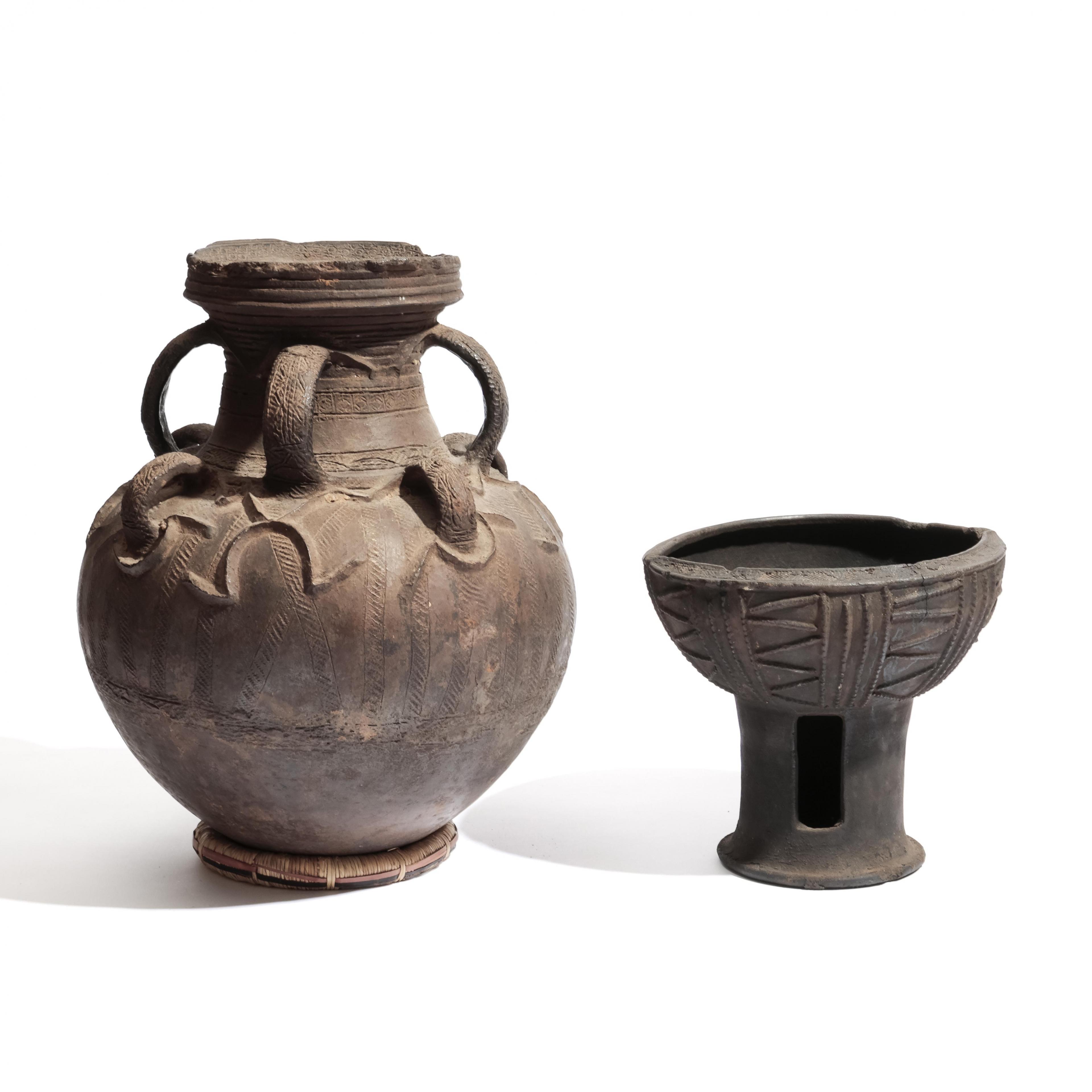 Herewith a Cameroon, Bamum terracotta vessel on high foot.