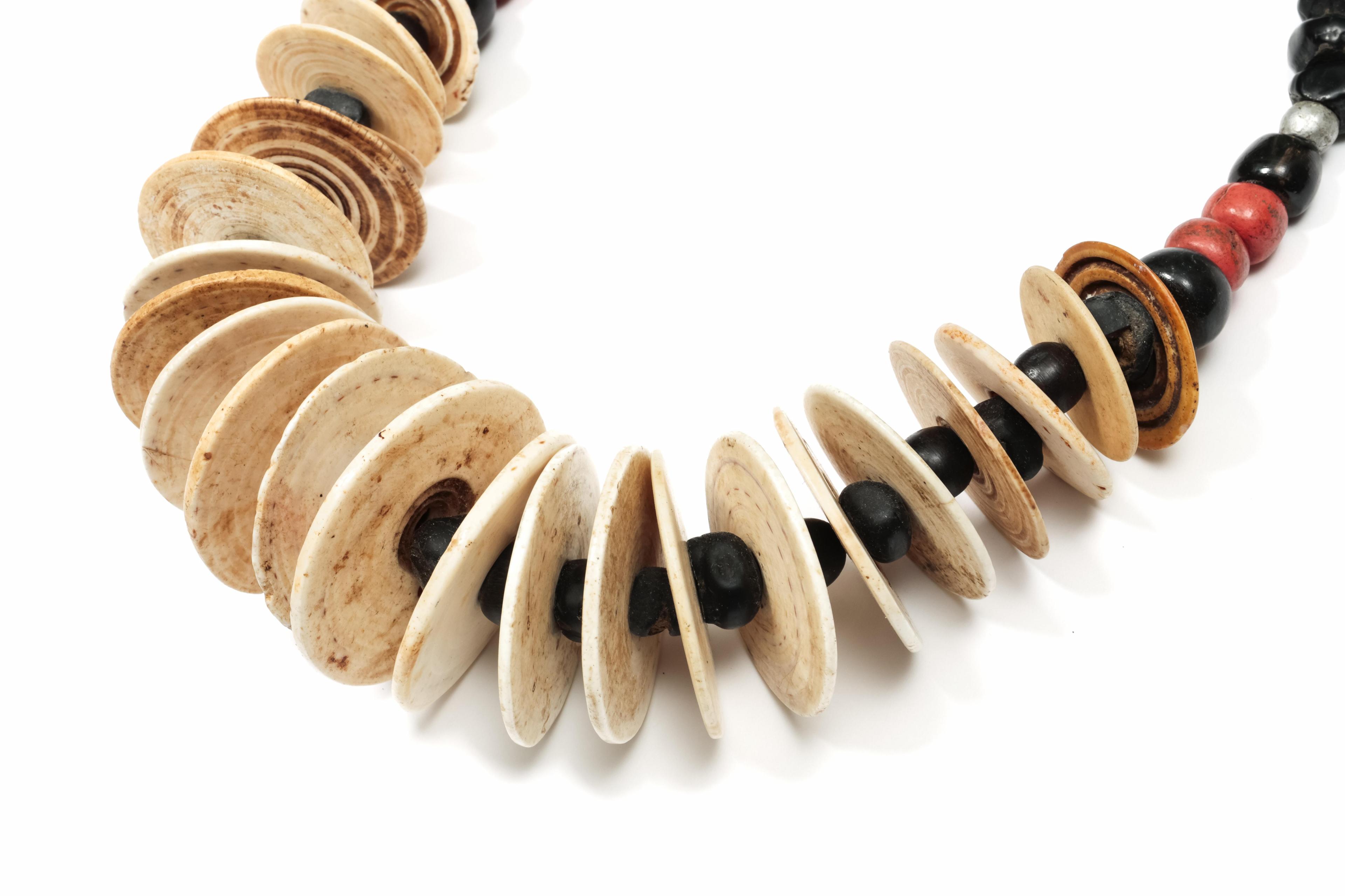 constisting of mainly black and red stone beads, the lower part with conus shell discs.