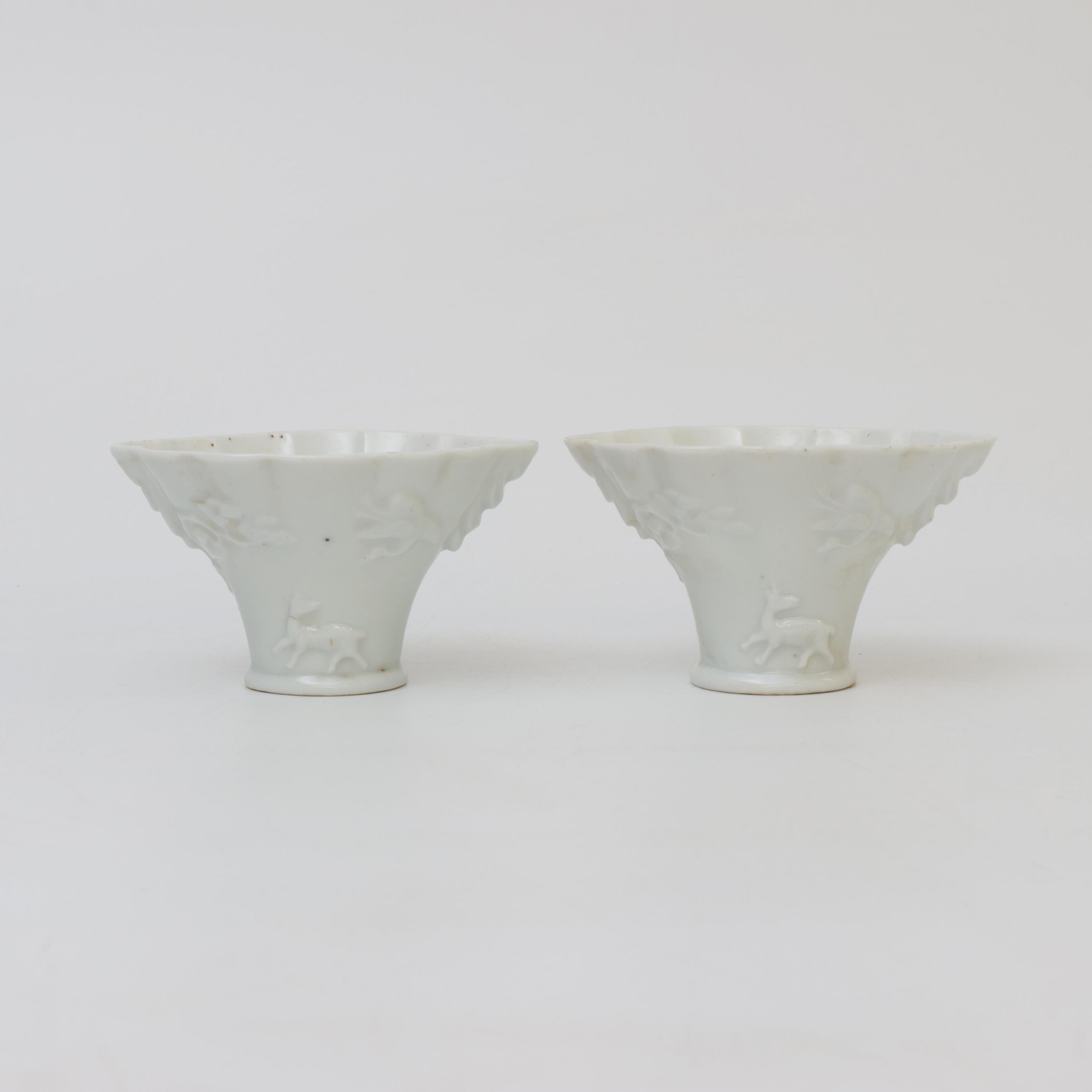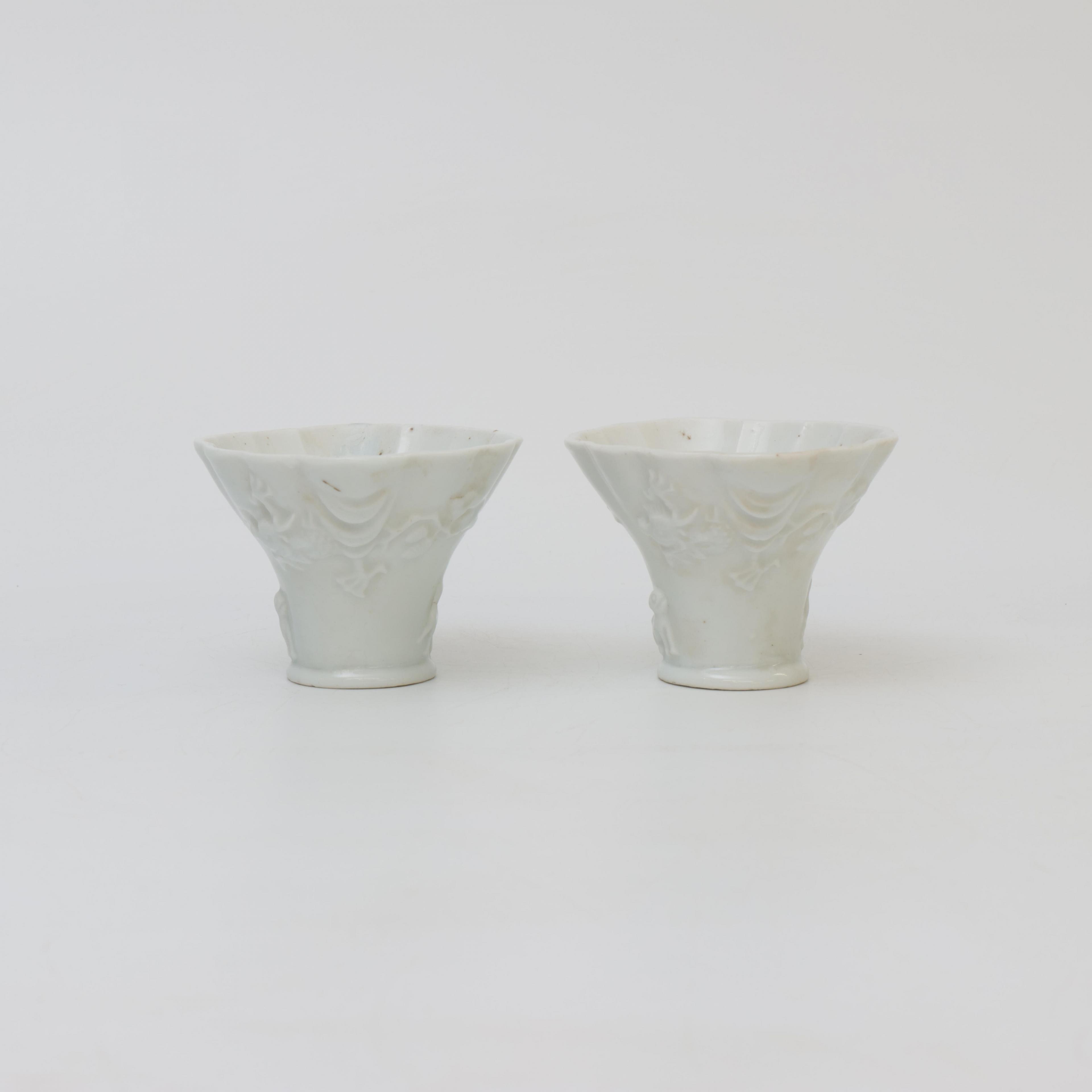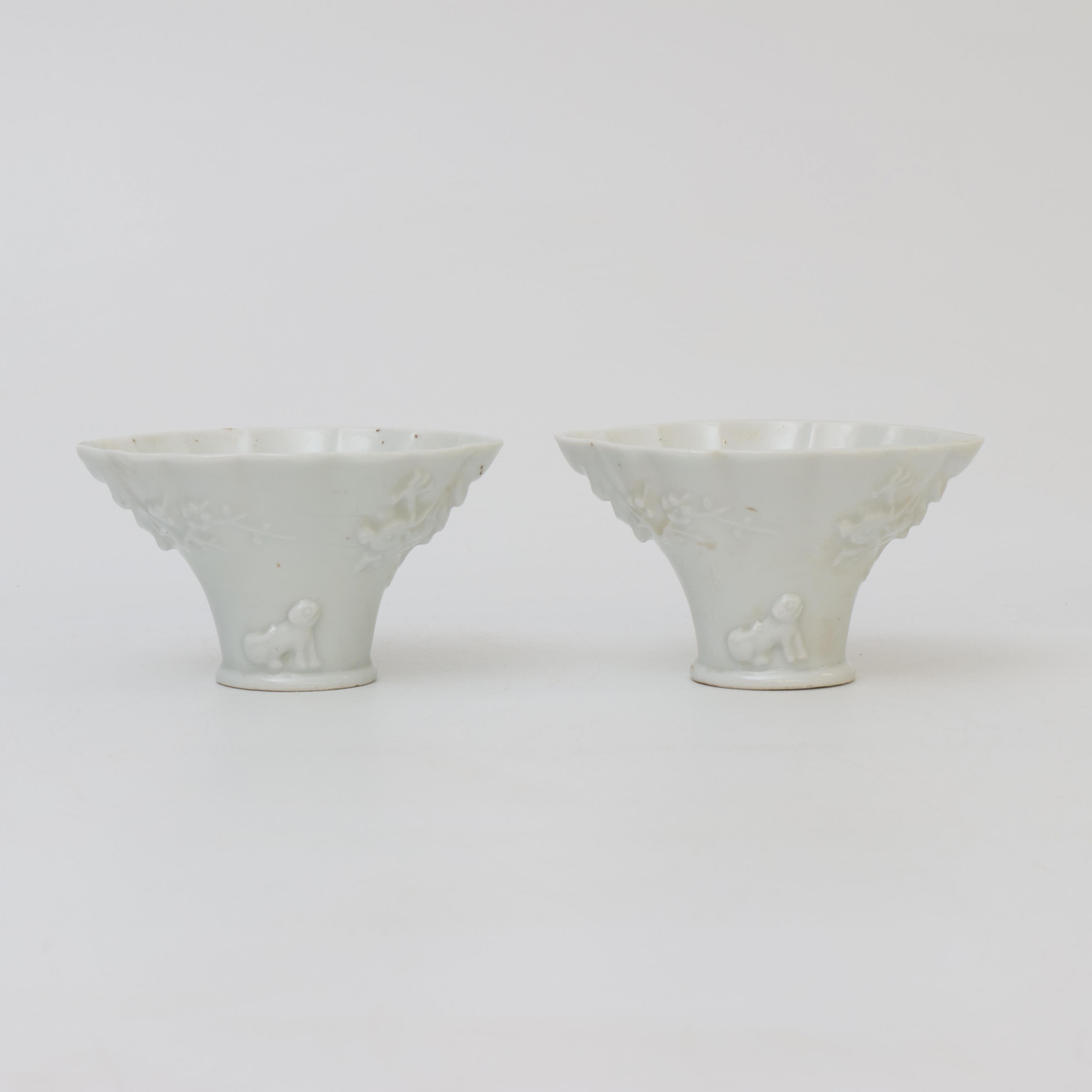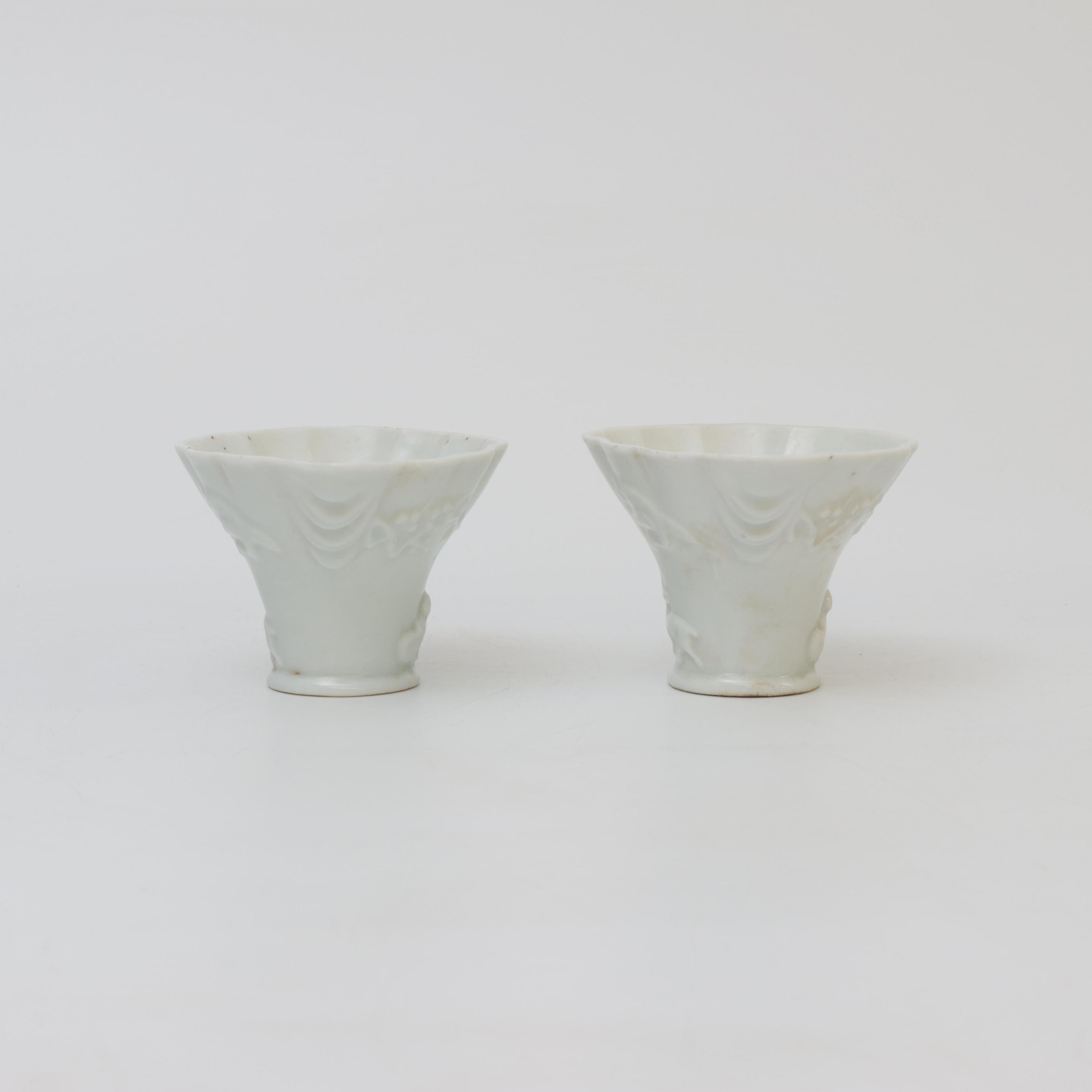 China, a pair of Dehua porcelain rhinoceros-form libation cups, 18th century,