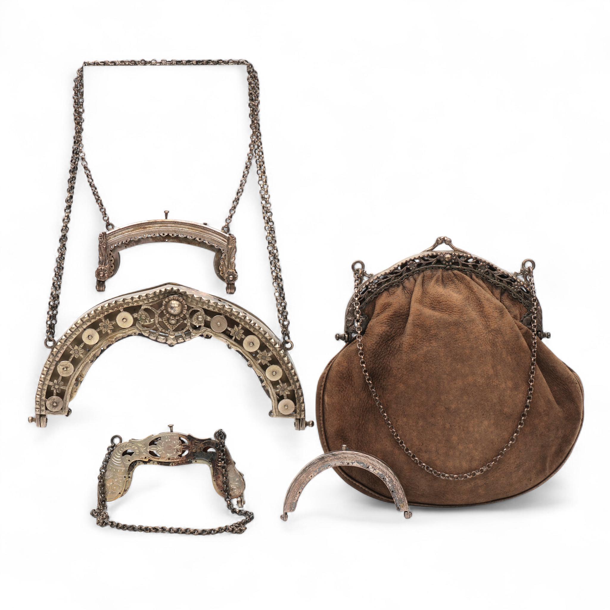 een met suede lederen tas jrl. 1867, vier met ketting, alle 2e gehalte,