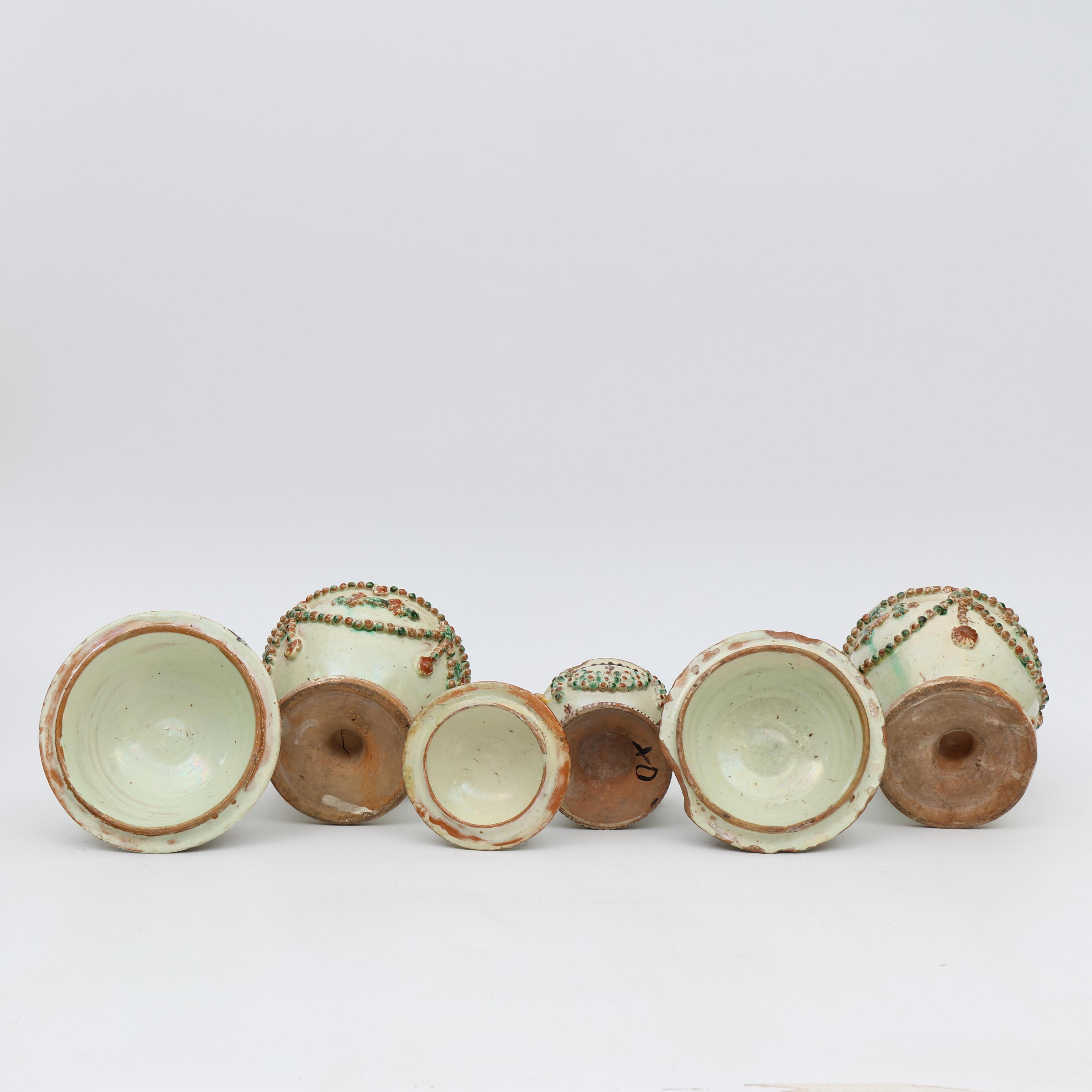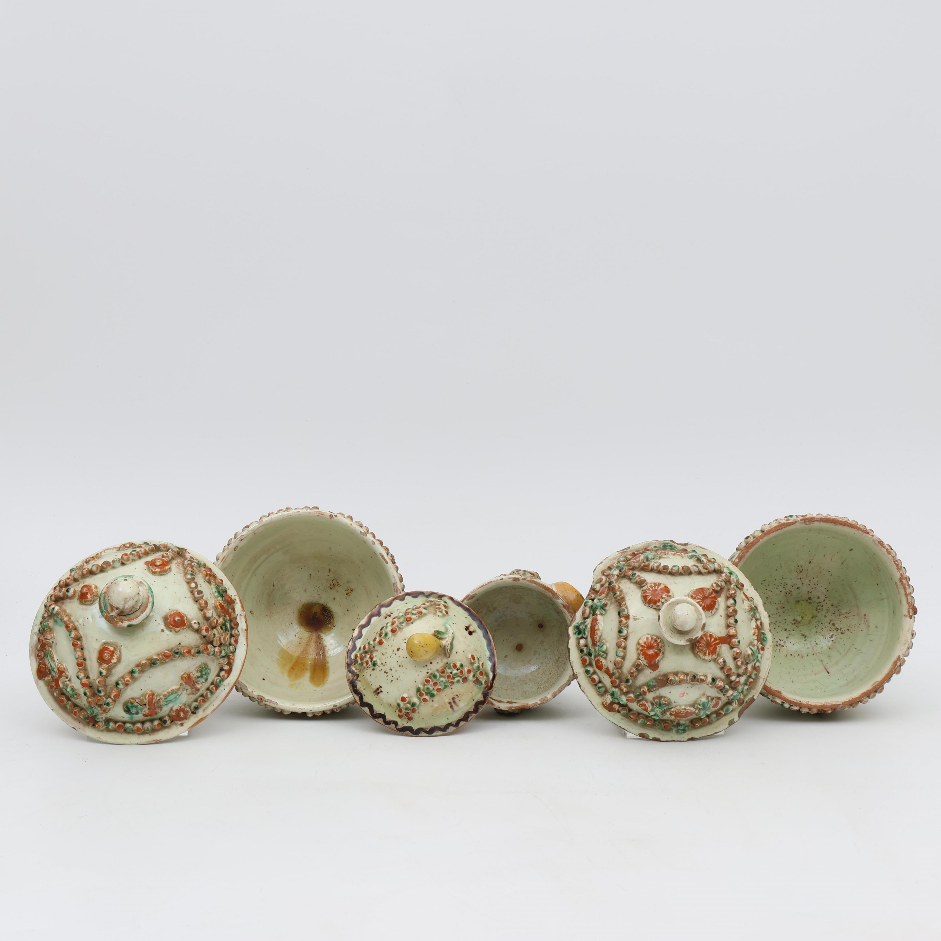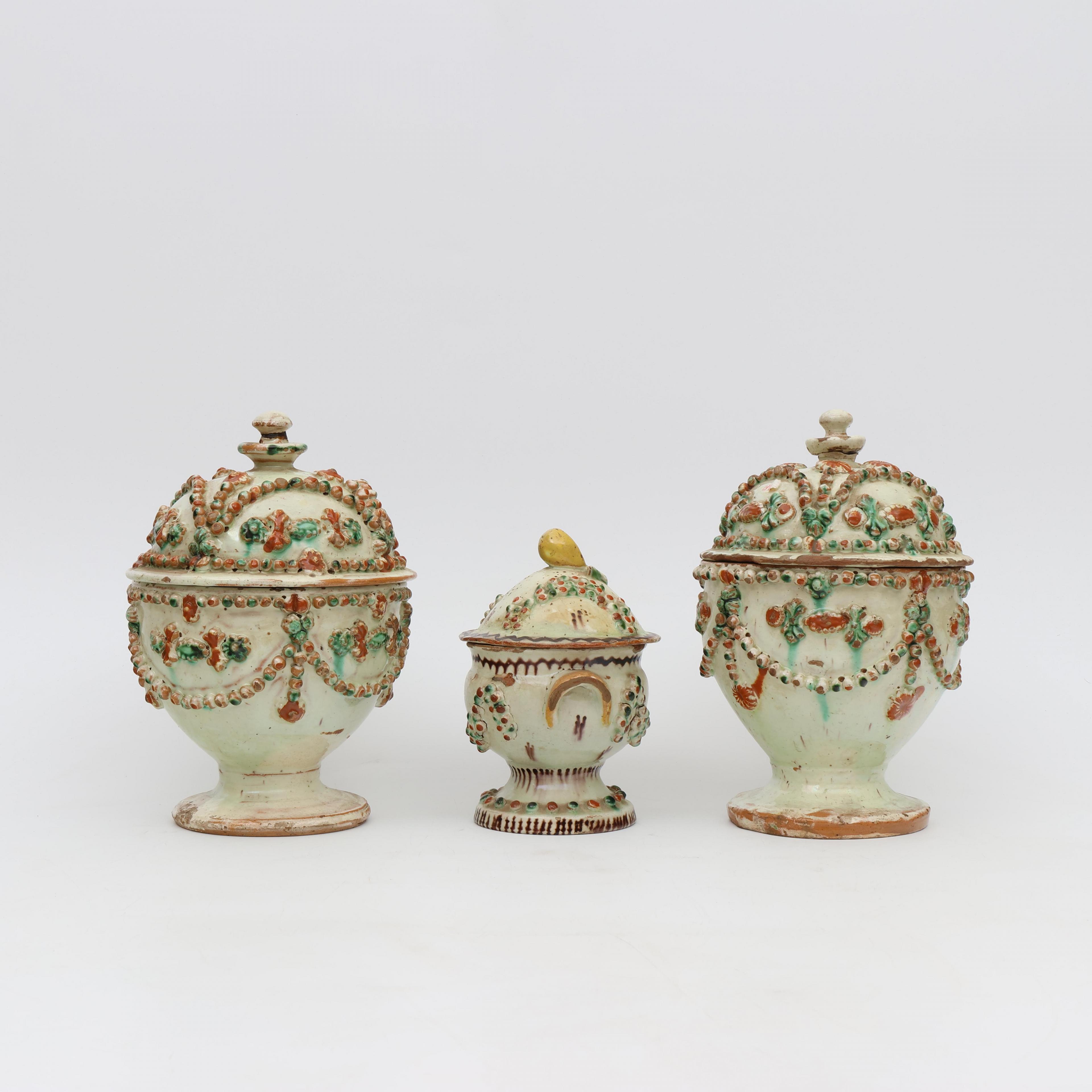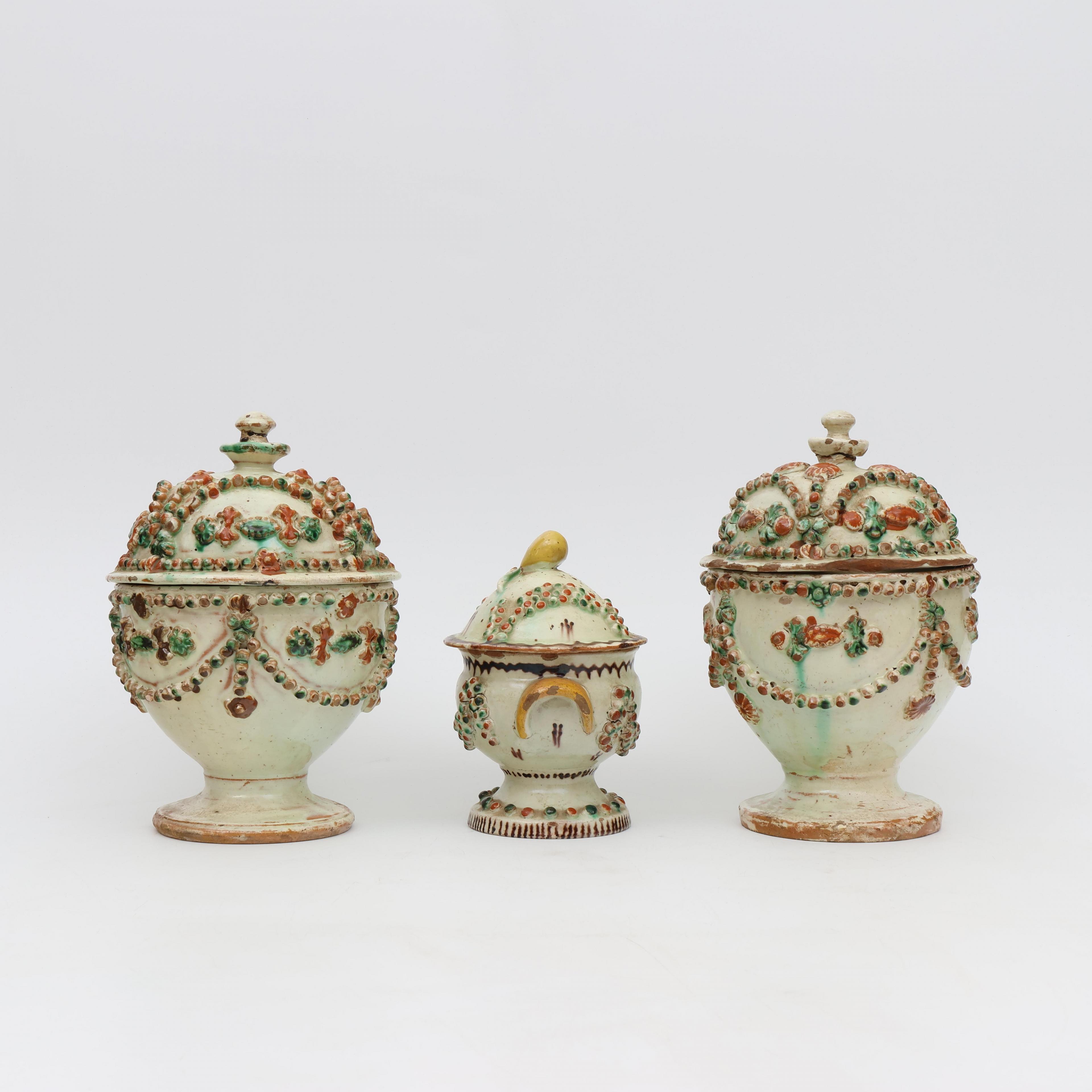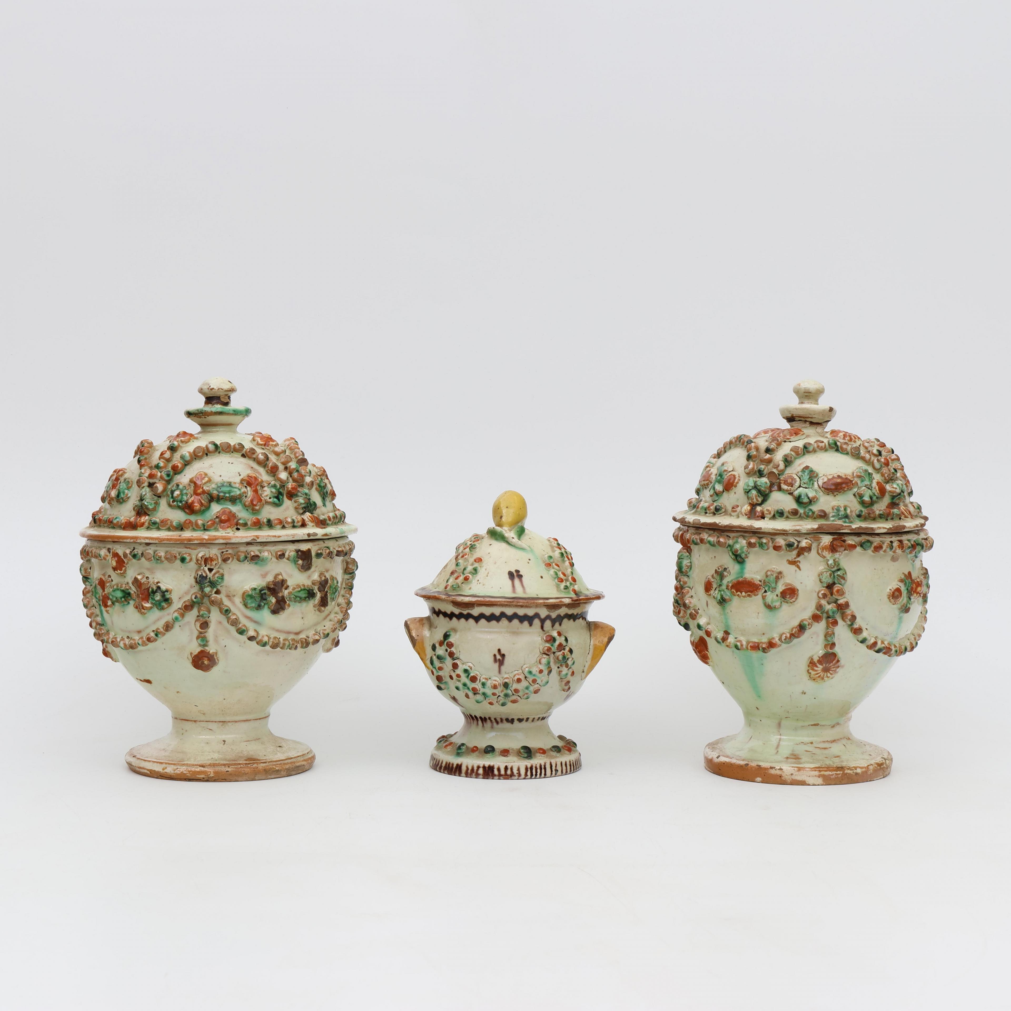 Langnau Bern, drie aardewerk dekselpotten, 18e eeuw;