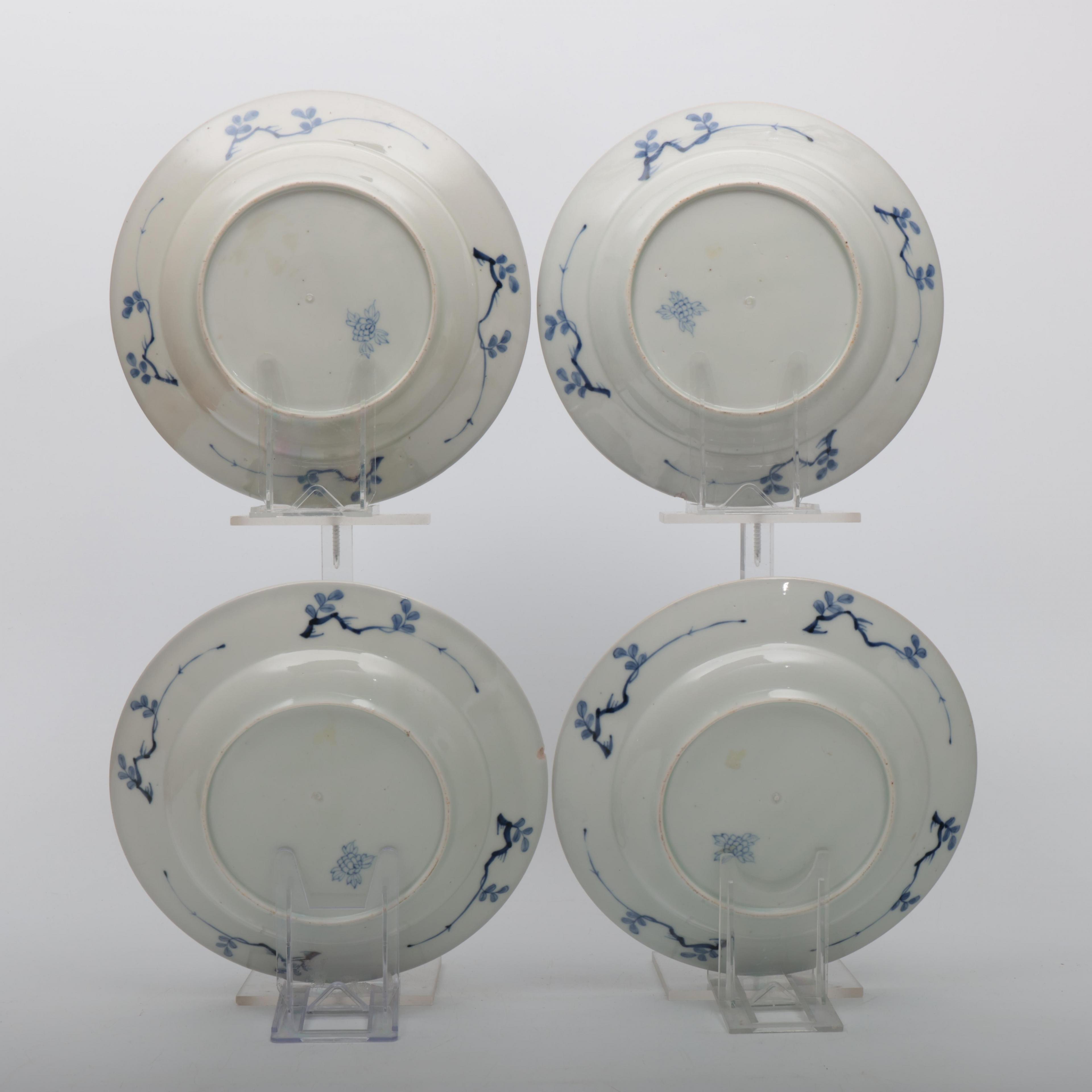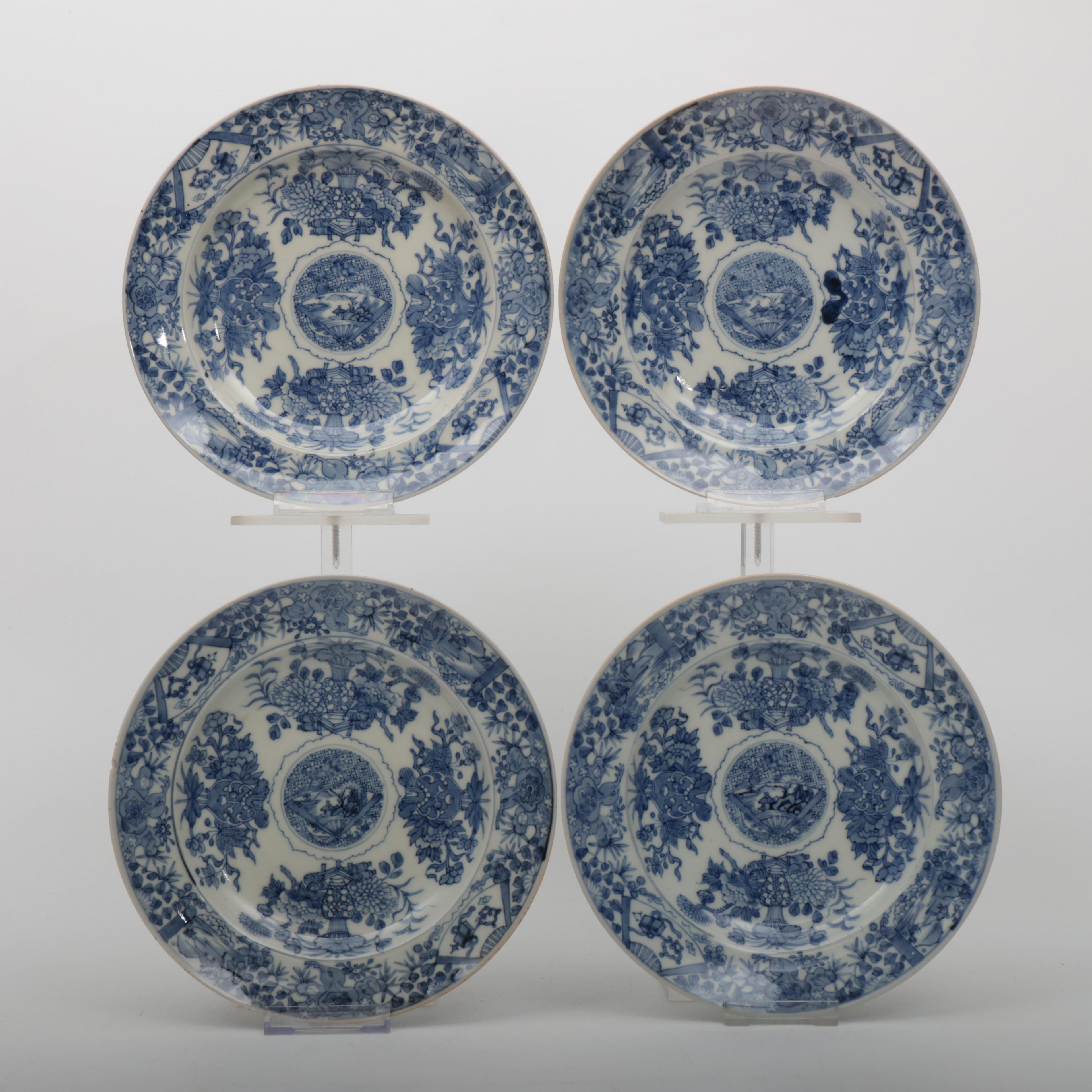 China, a set of four blue and white porcelain plates, 18th century,