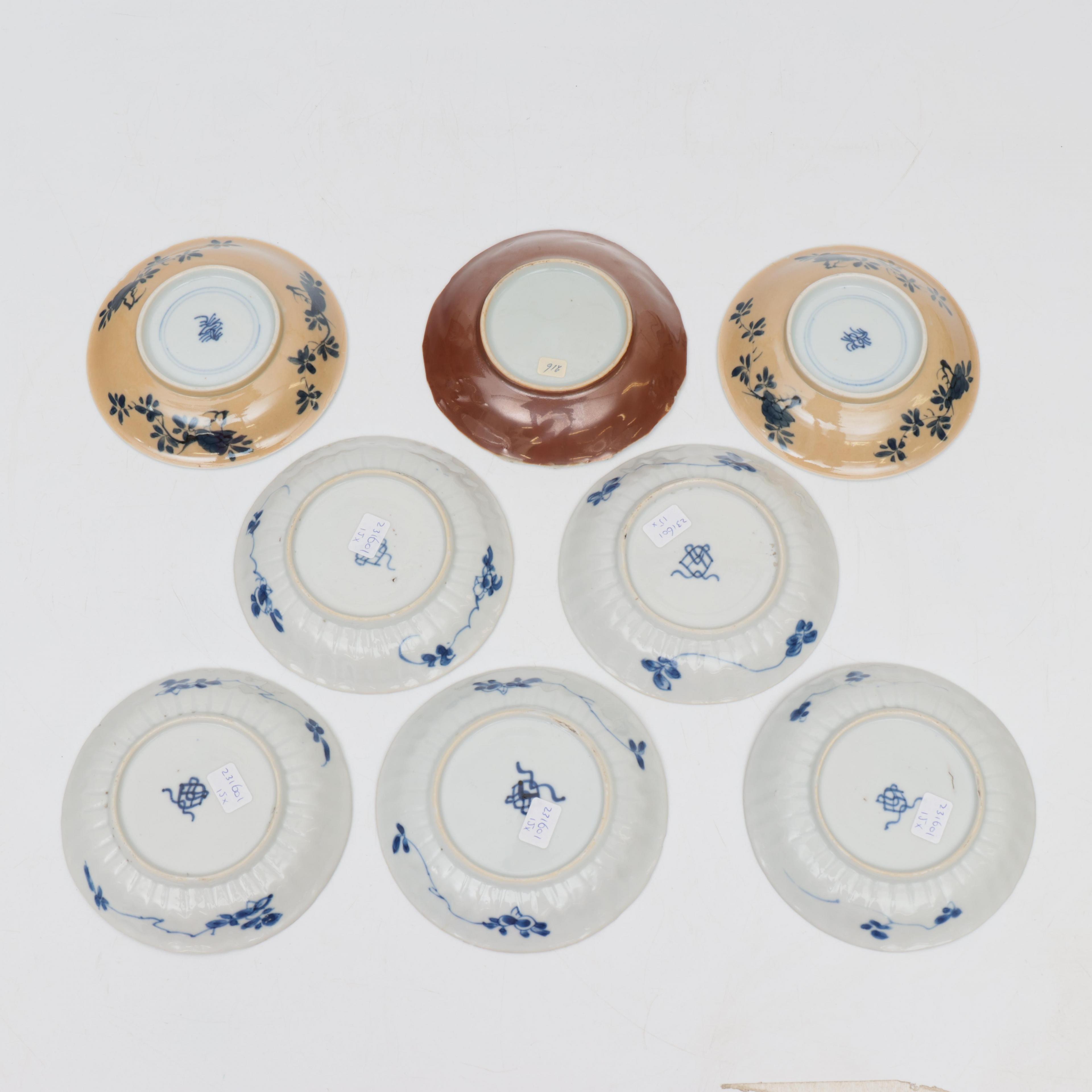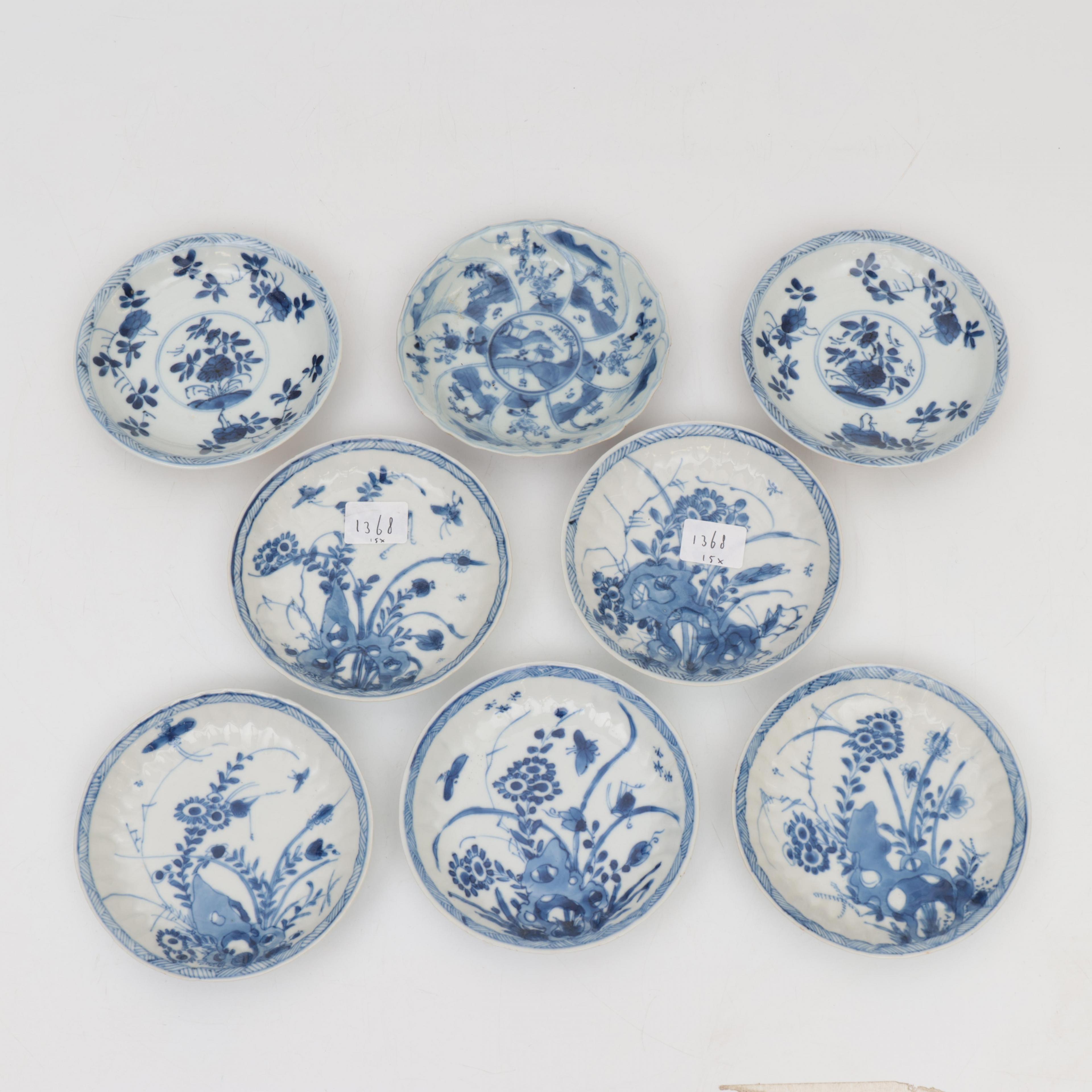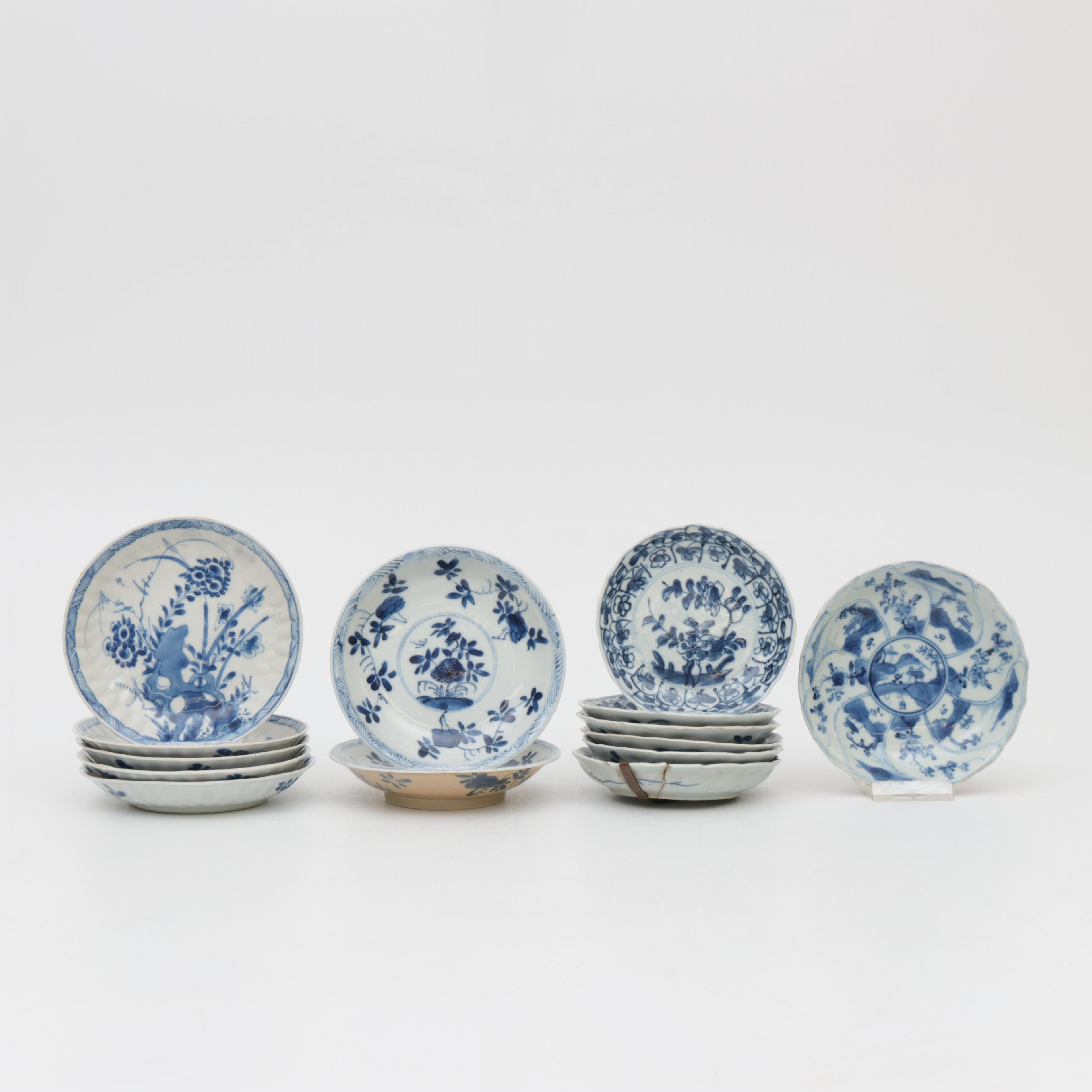 China, a collection of blue and white porcelain saucers, mainly 18th century,