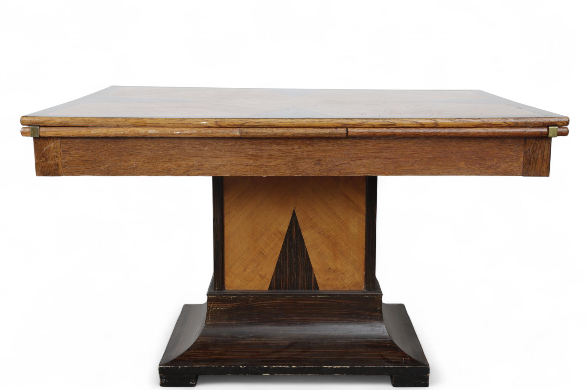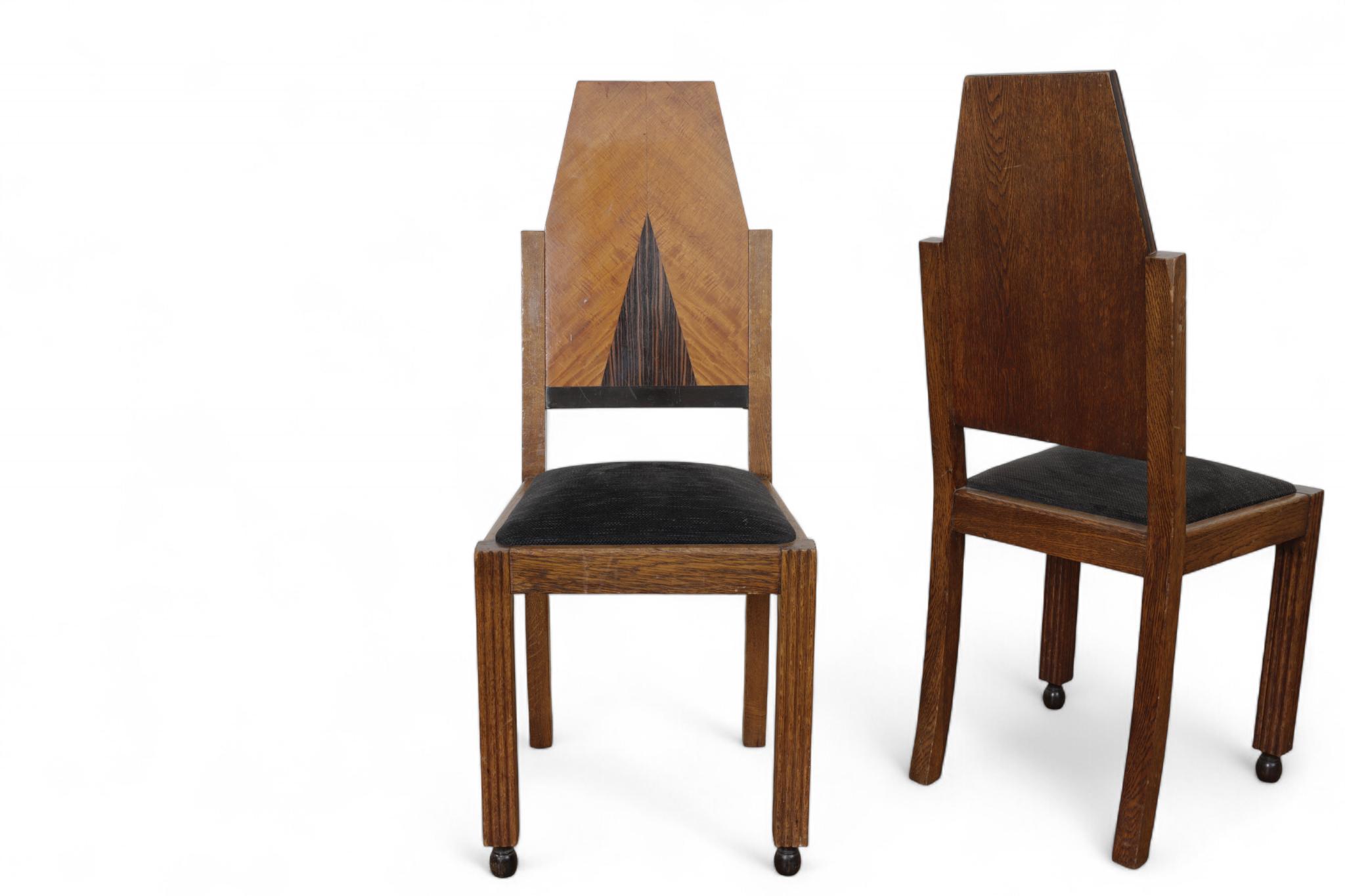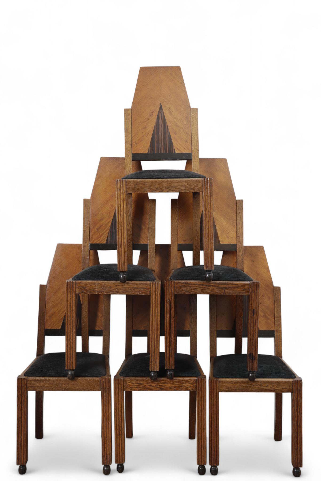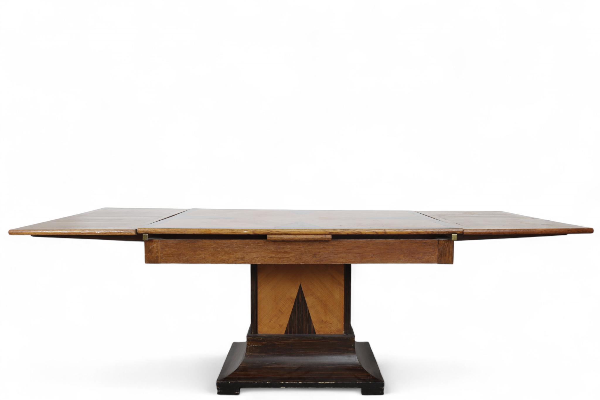 Eikenhouten uitschuiftafel met zes -stoelen, Art Deco,