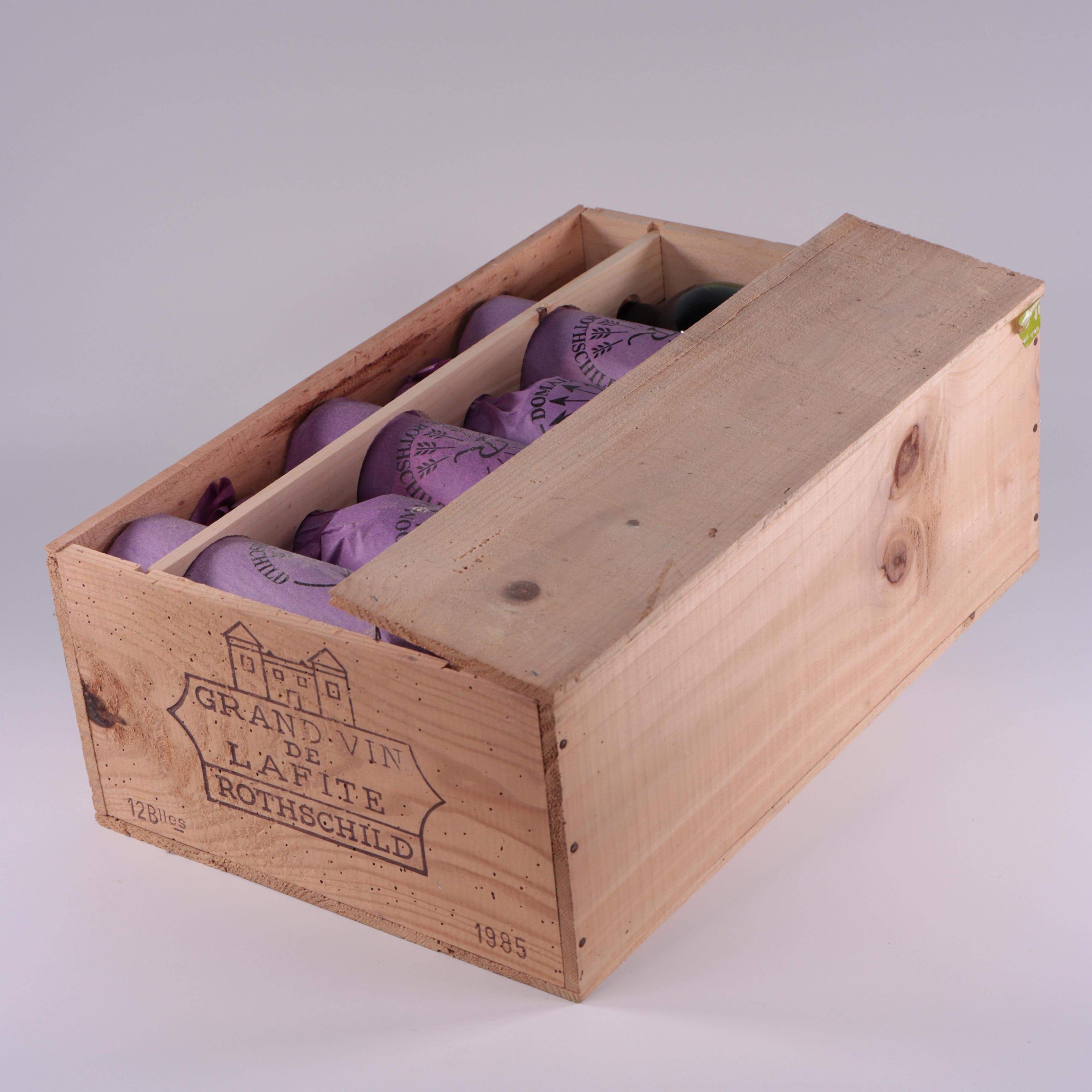 Twaalf flessen wijn, rood, Chateau Lafite Rothschild, Grand Vin, 1985.