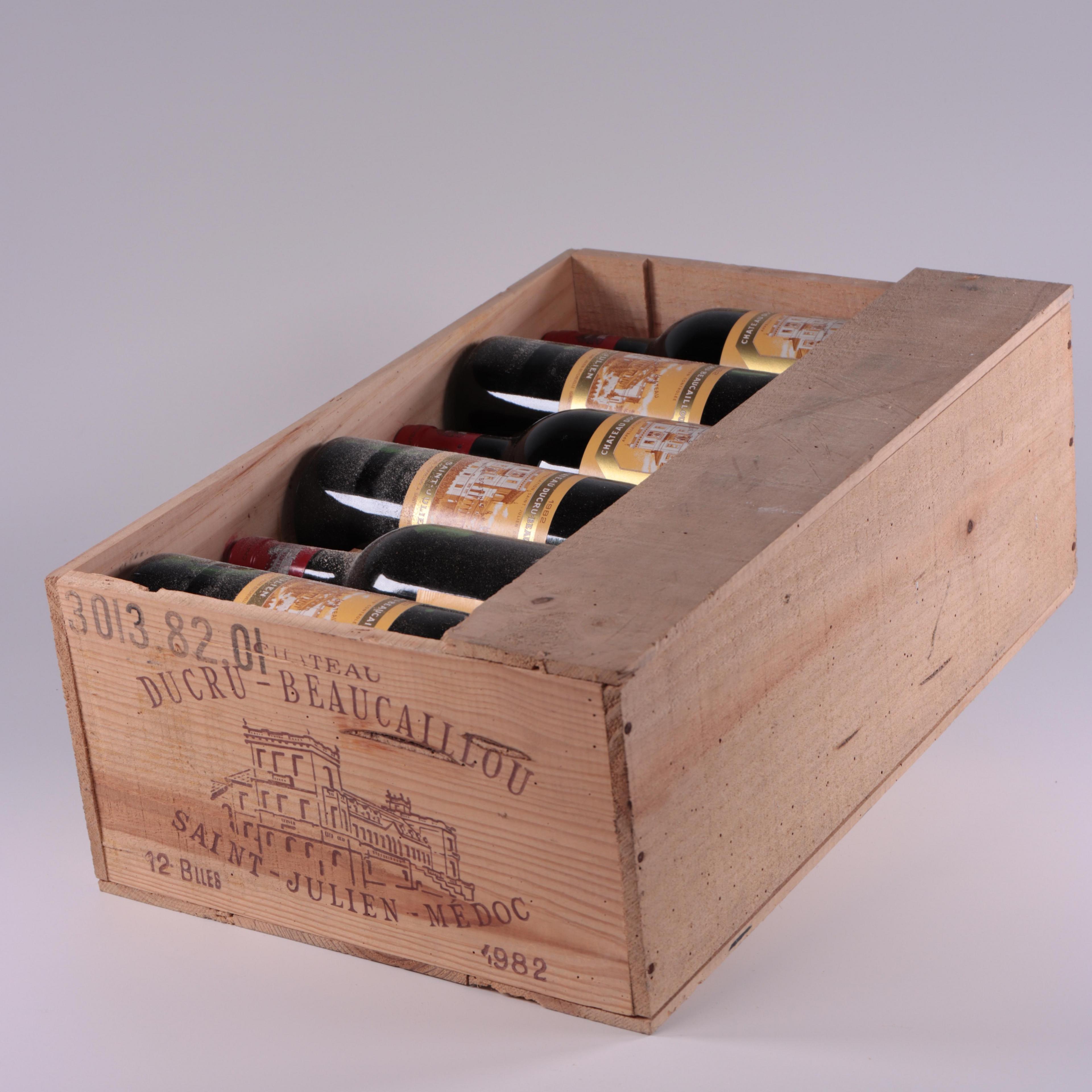 Twaalf flessen wijn, rood, Chateau Ducru Beaucaillou, Saint Julien, 1982. In kist.