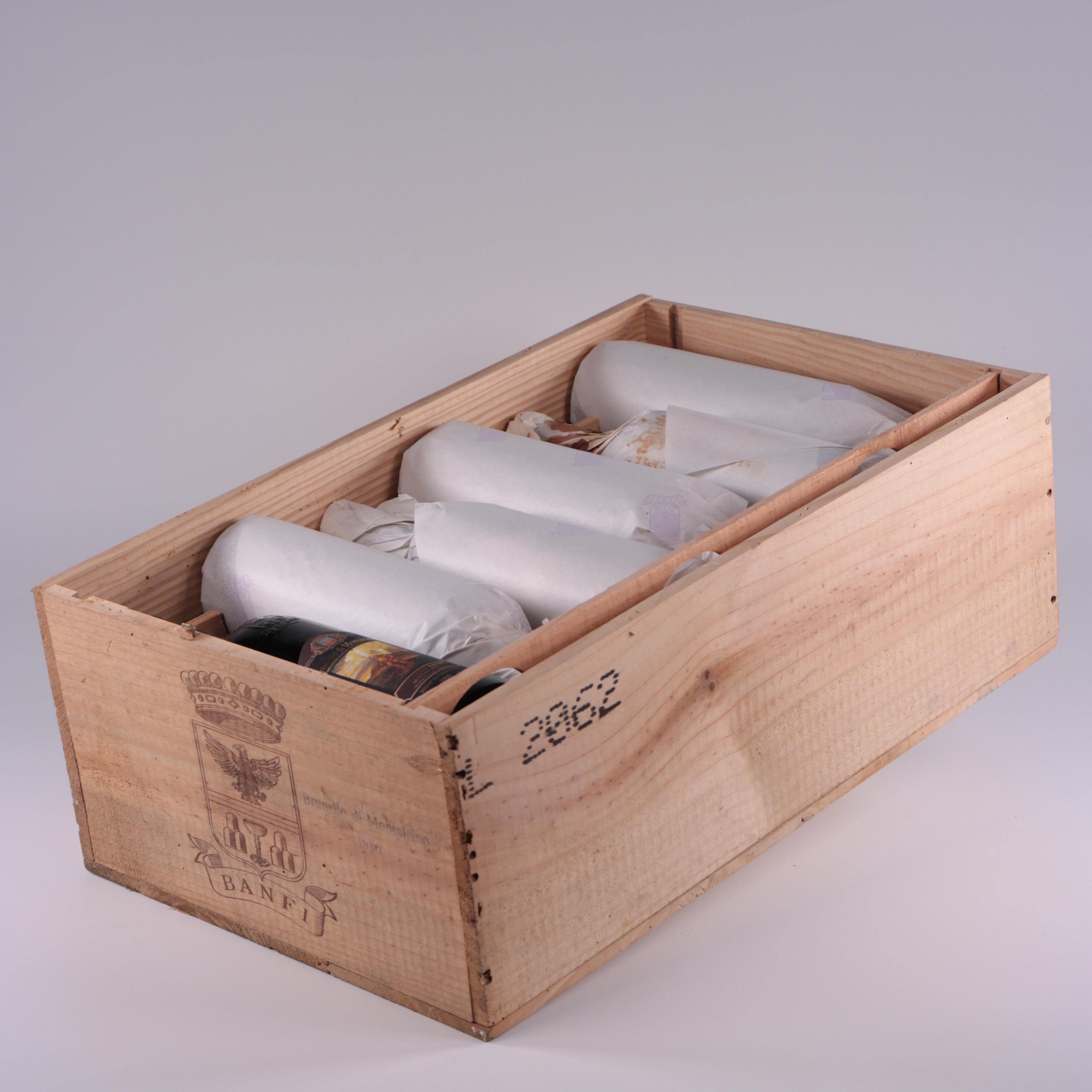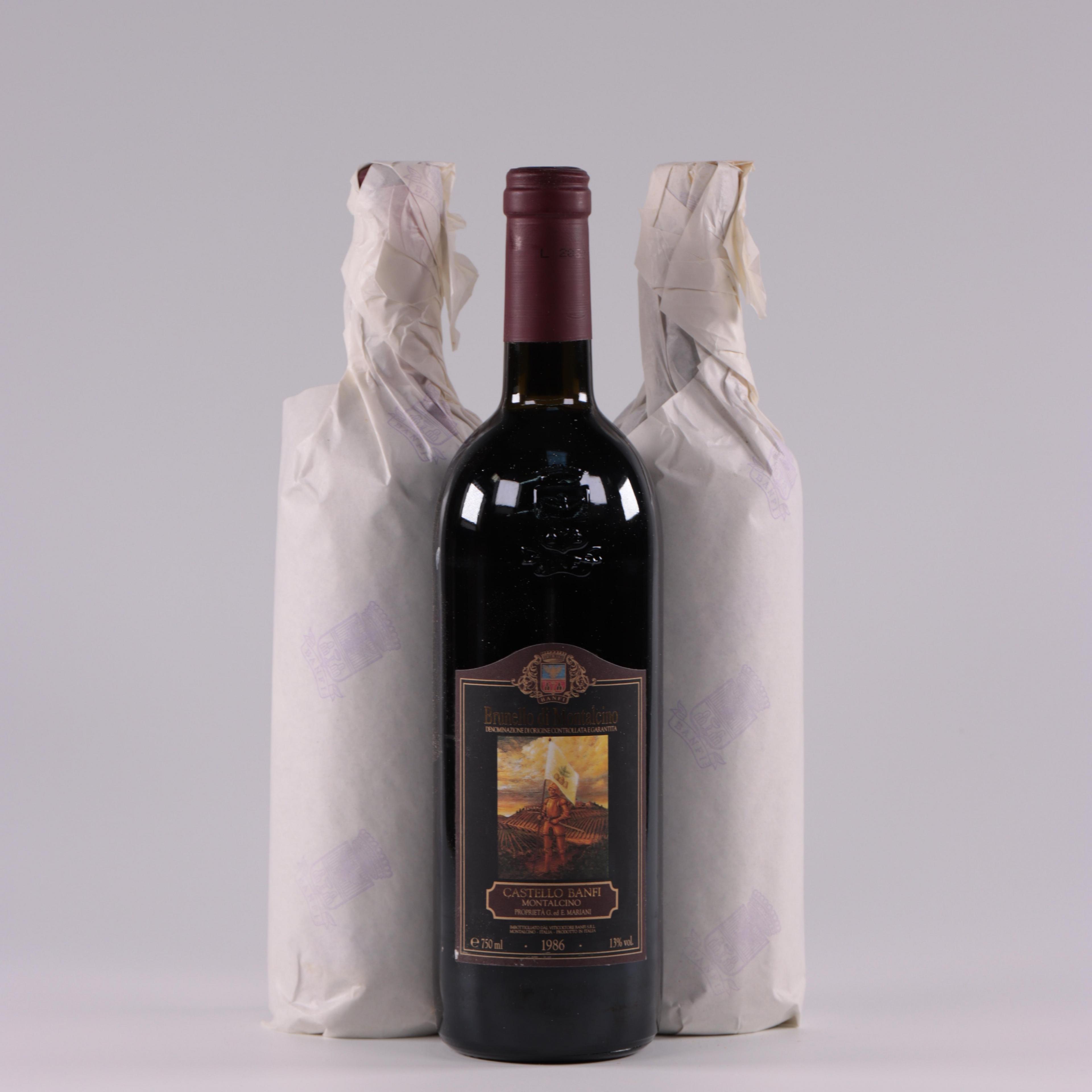 12 flessen wijn, rood, Brunello di Montalcino, Castello Banfi, DOGC, 1986. In kist.
