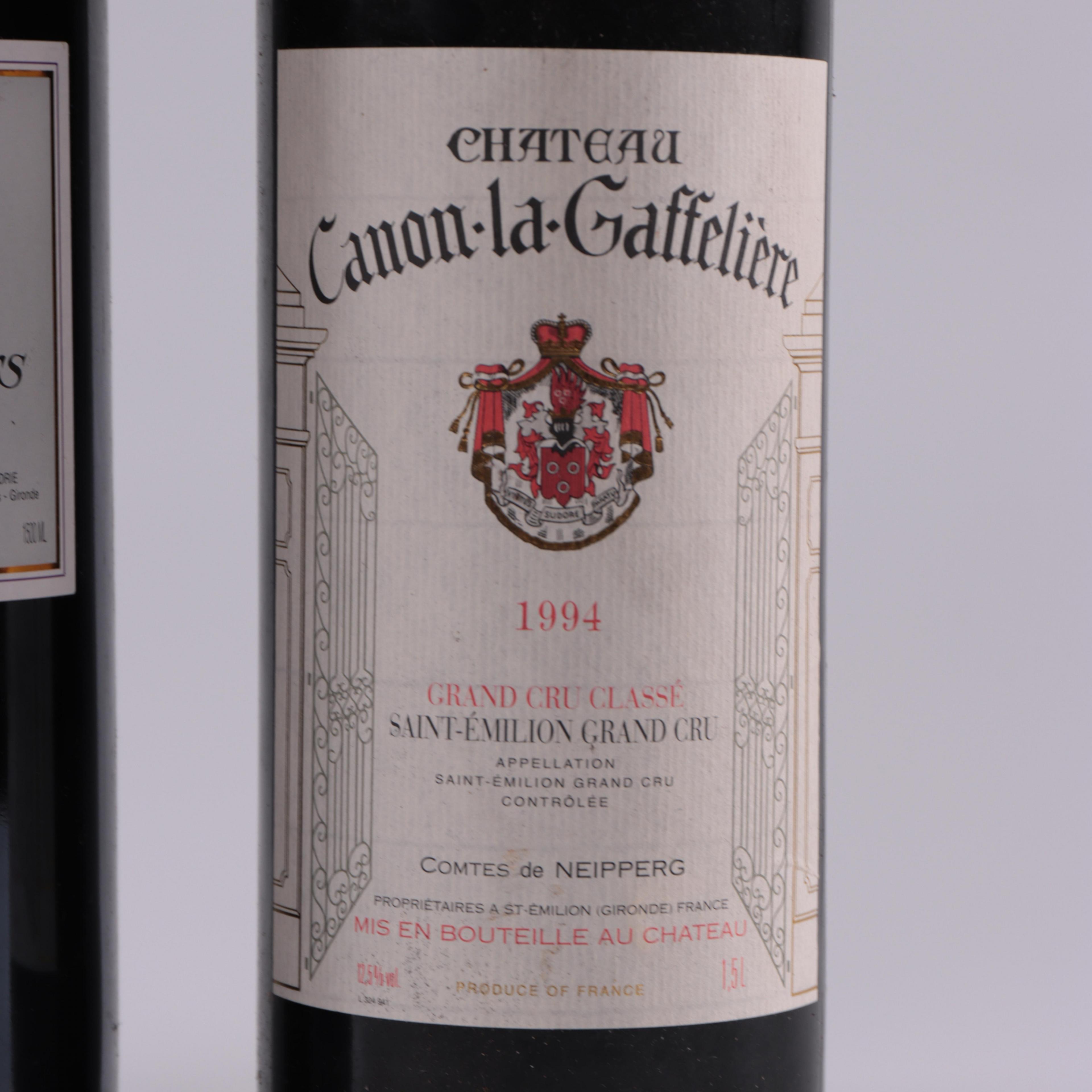 Twee magnum flessen wijn, rood, Frankrijk; Chateau Canon-la-Gaffeliere, St. Emilion, G.C.C., 1994.