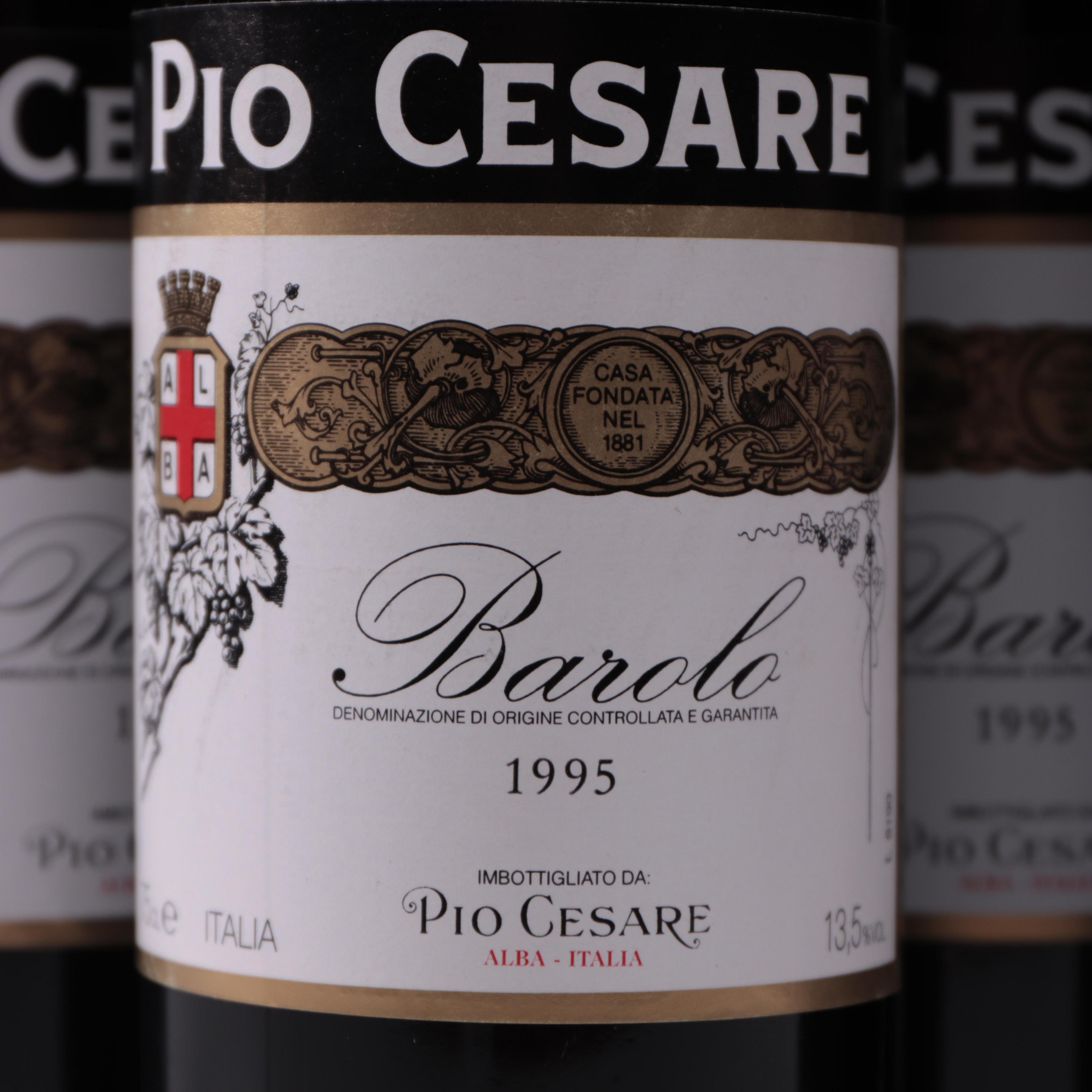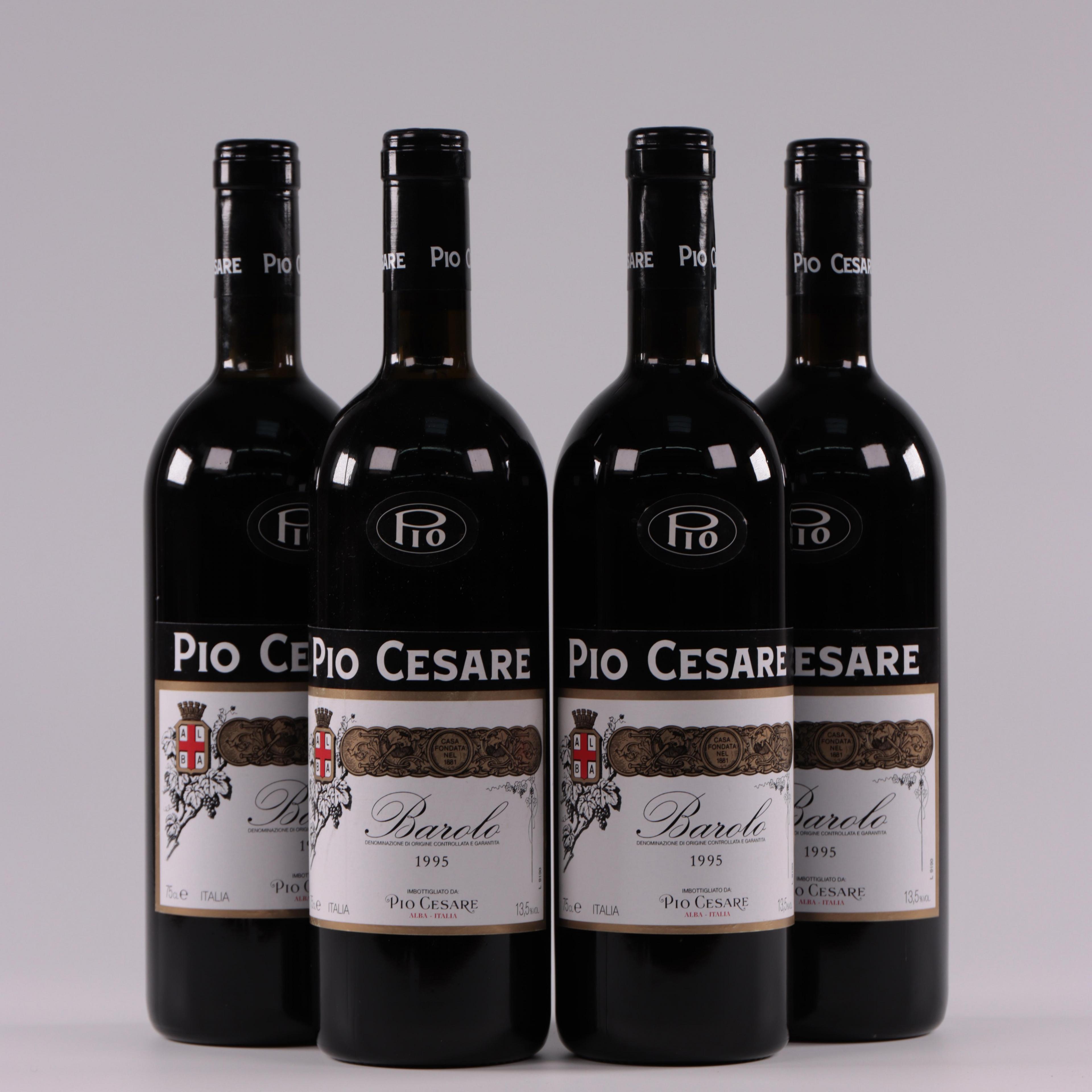 Vier flessen wijn, rood, Italië, Pio Cesare, Barolo, DOCG, 1995.