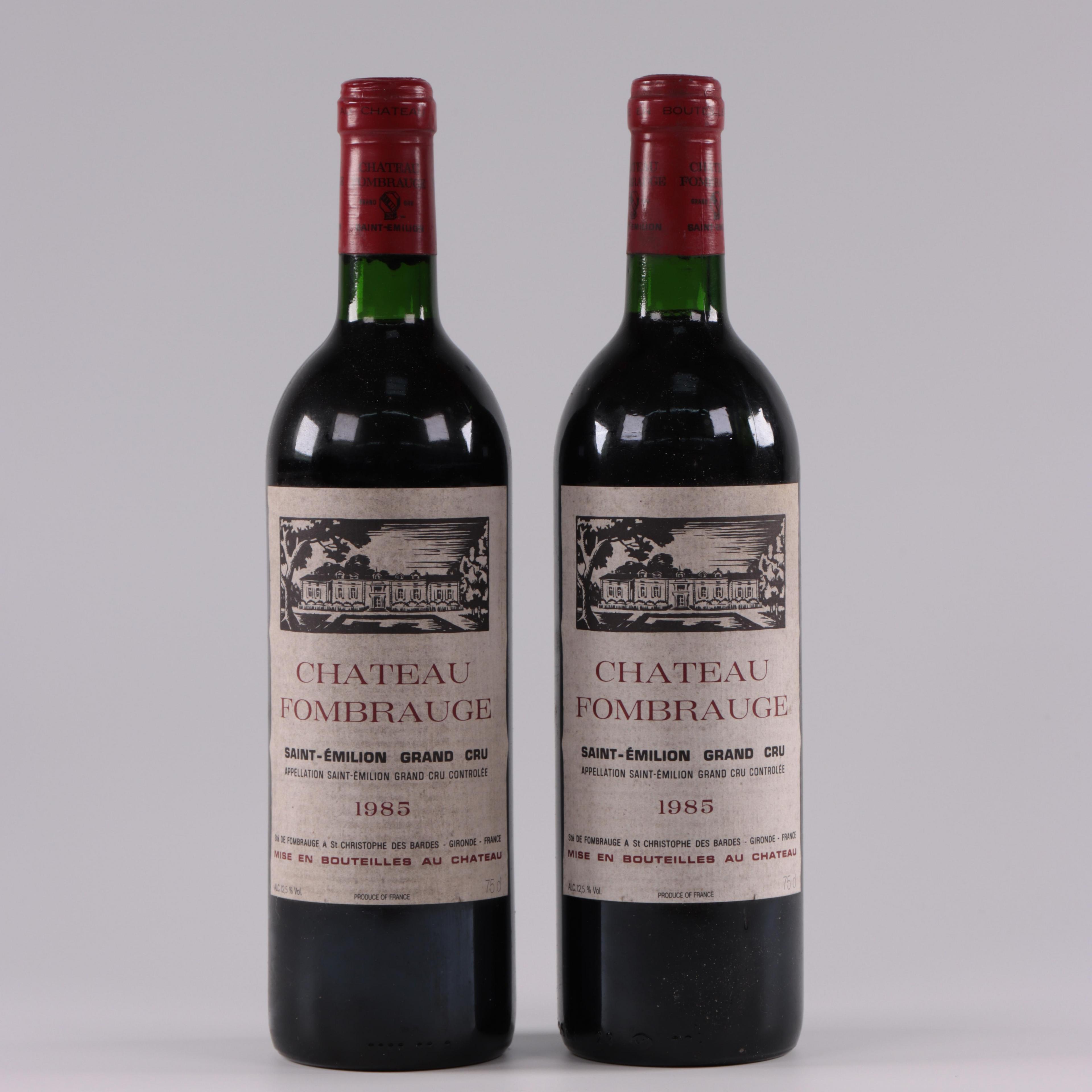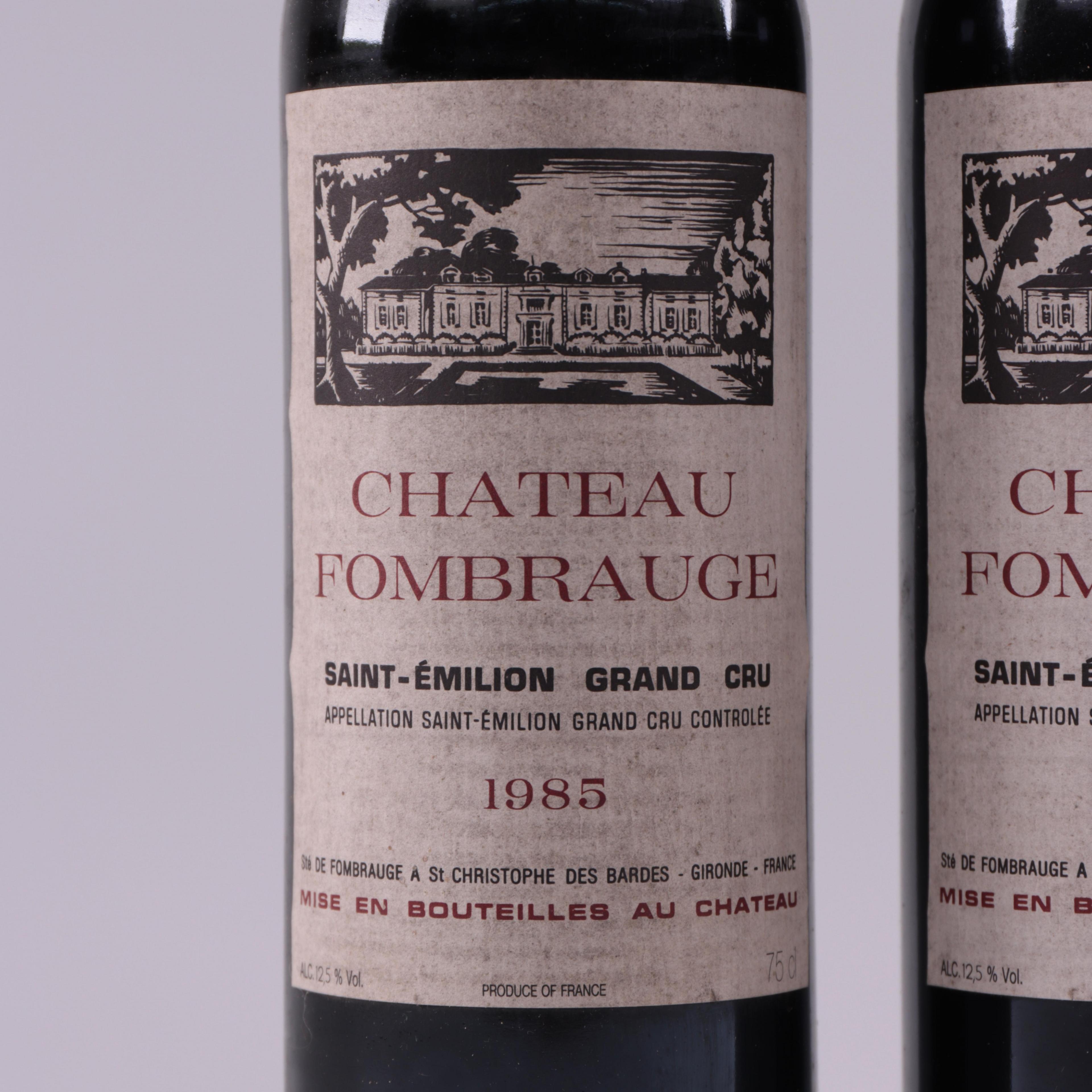 Twee flessen wijn, rood, Chateau Fombrauge, Saint-Emilion, GC, 1985.