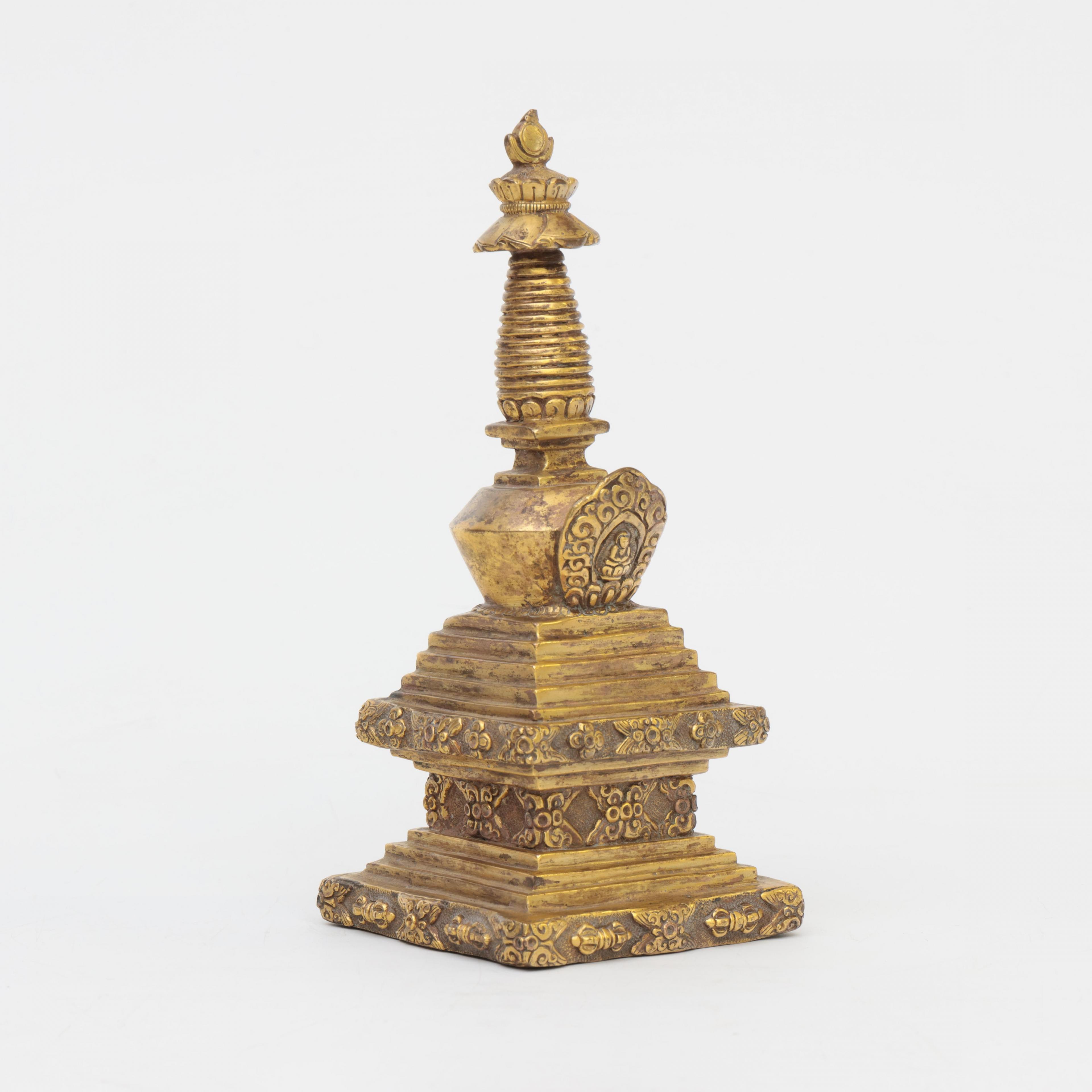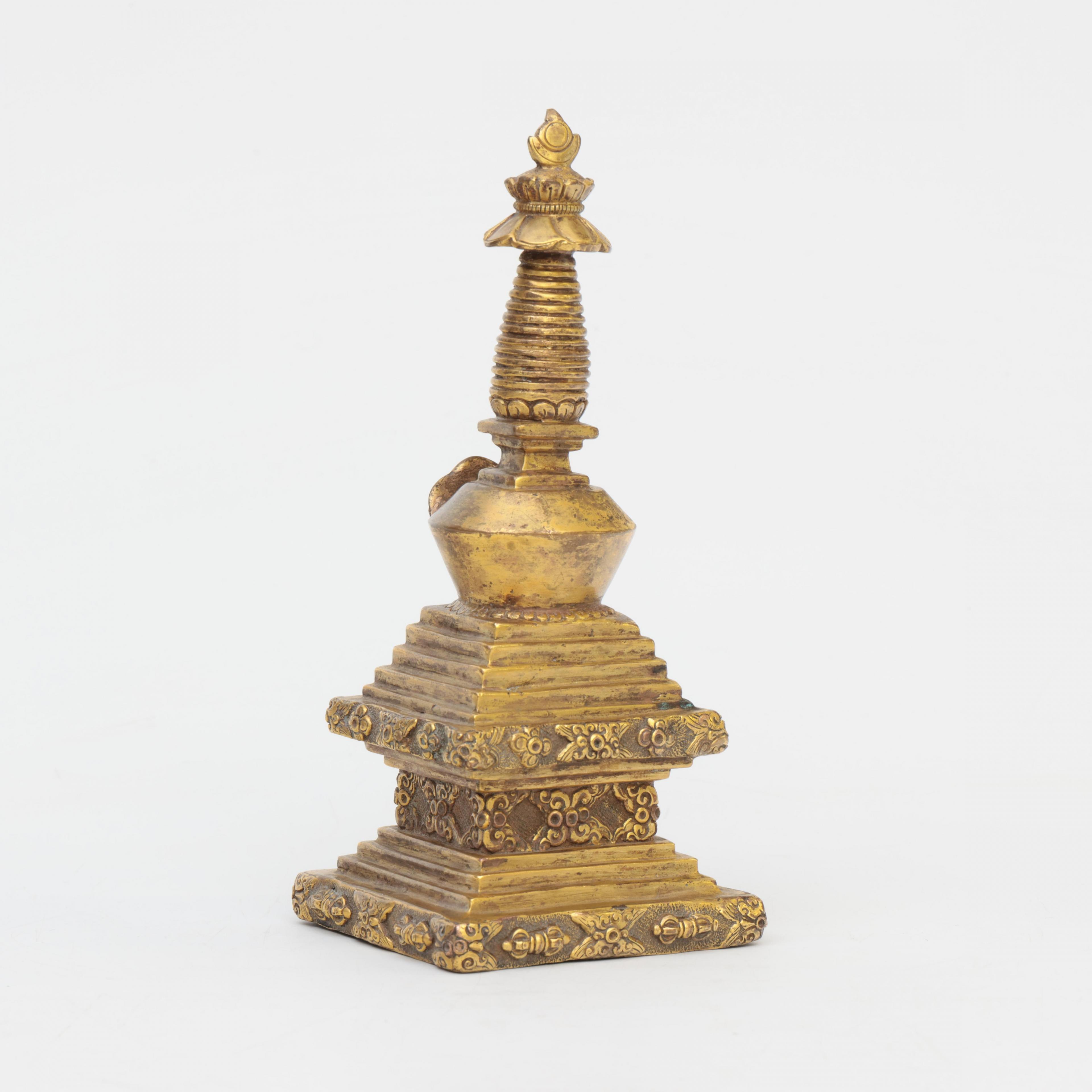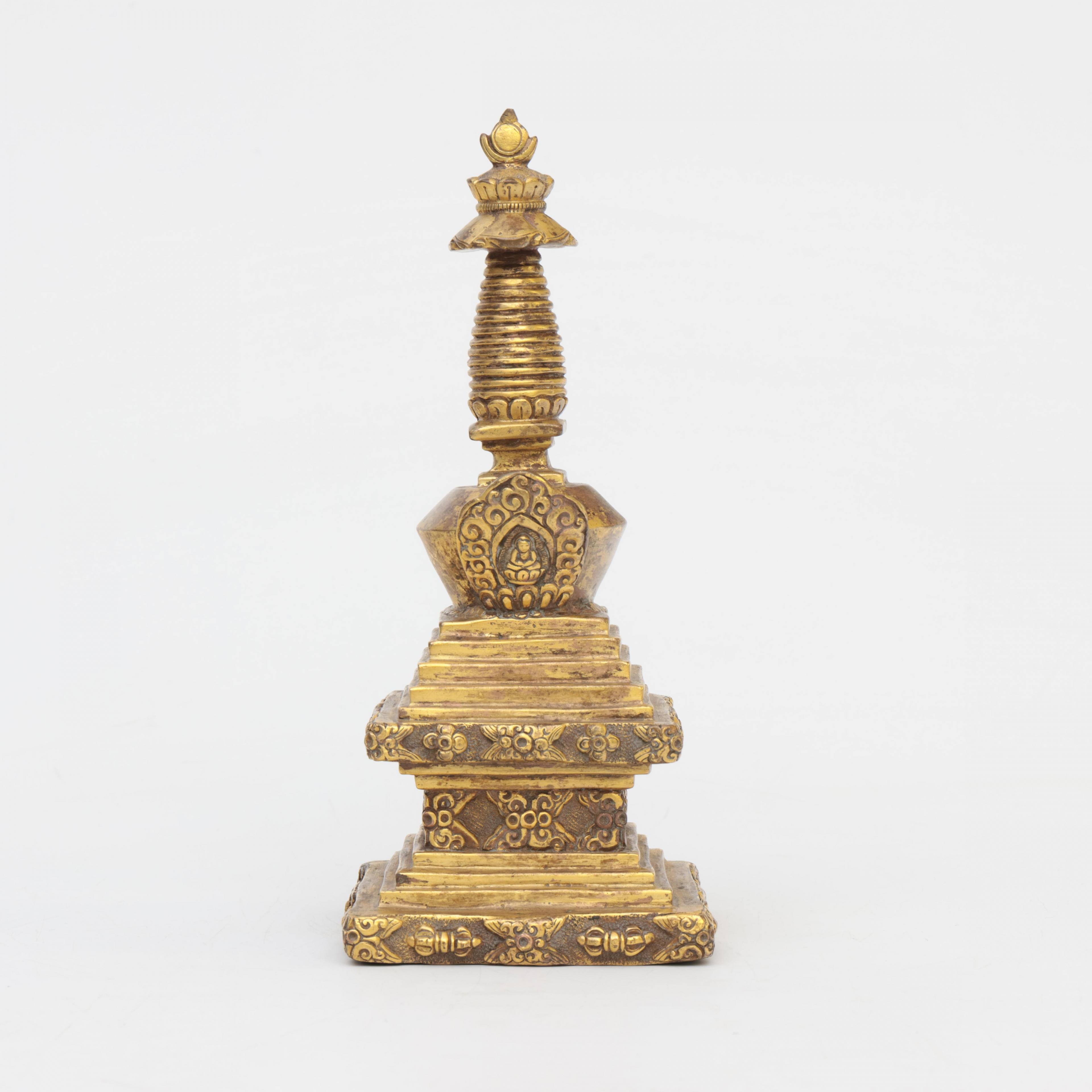 Tibet, a fire-gilt bronze stupa, 19th century,