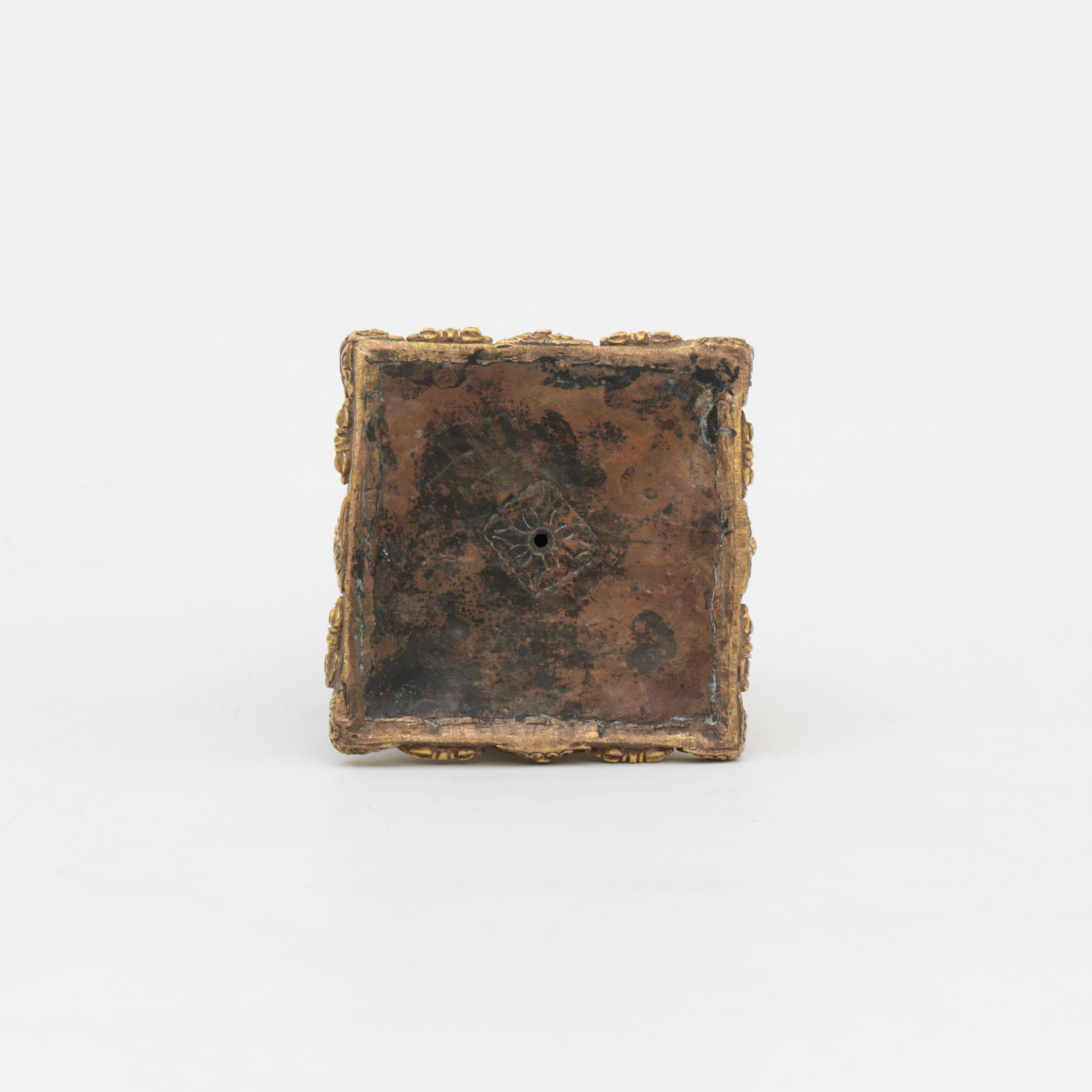 modelled with stepped tiers, adorned with vajra's, flowers and a figure of Buddha Ashobya within a mandorla