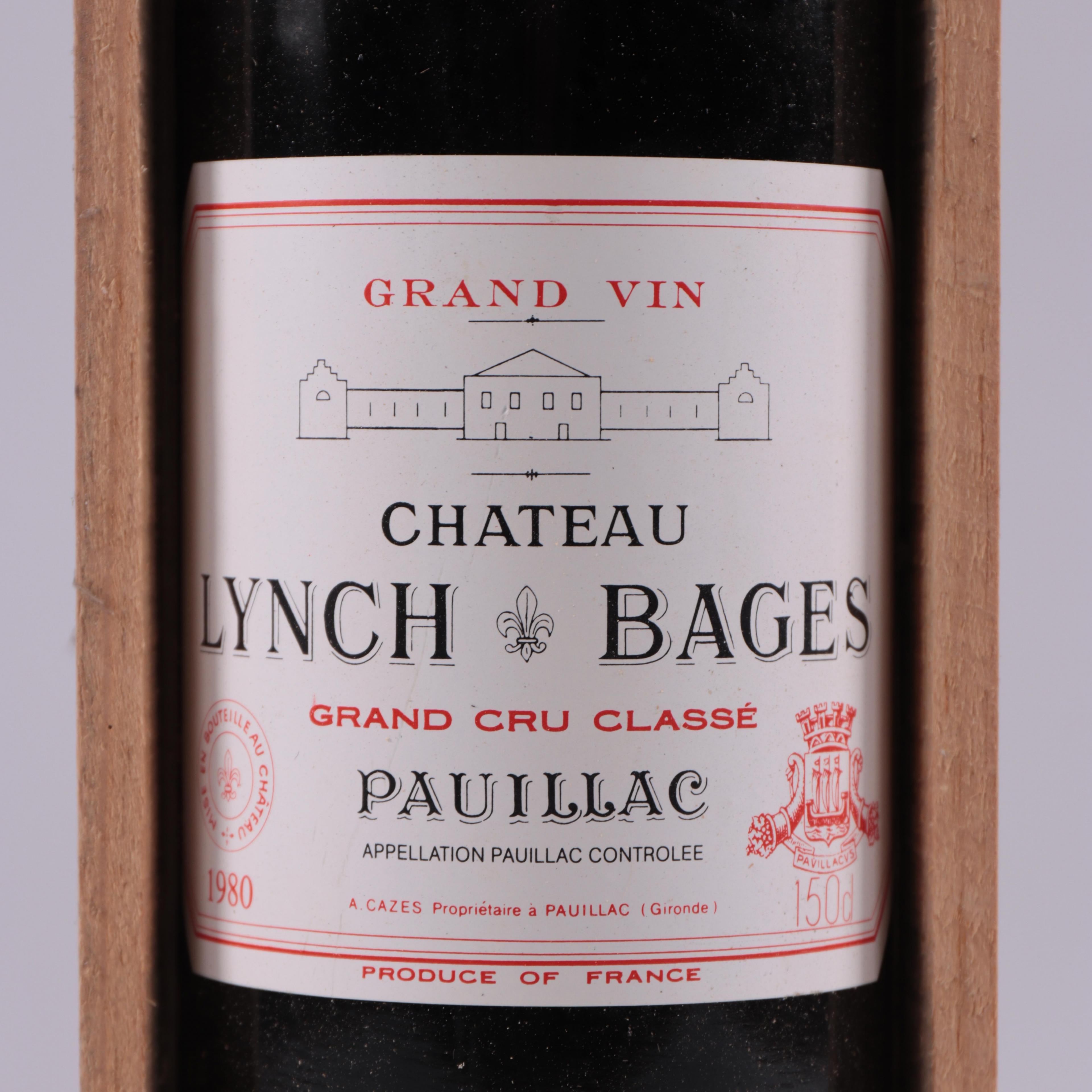 Een magnum fles wijn, rood, Chateau Lynch Bages, Pauillac, 1980. In kist