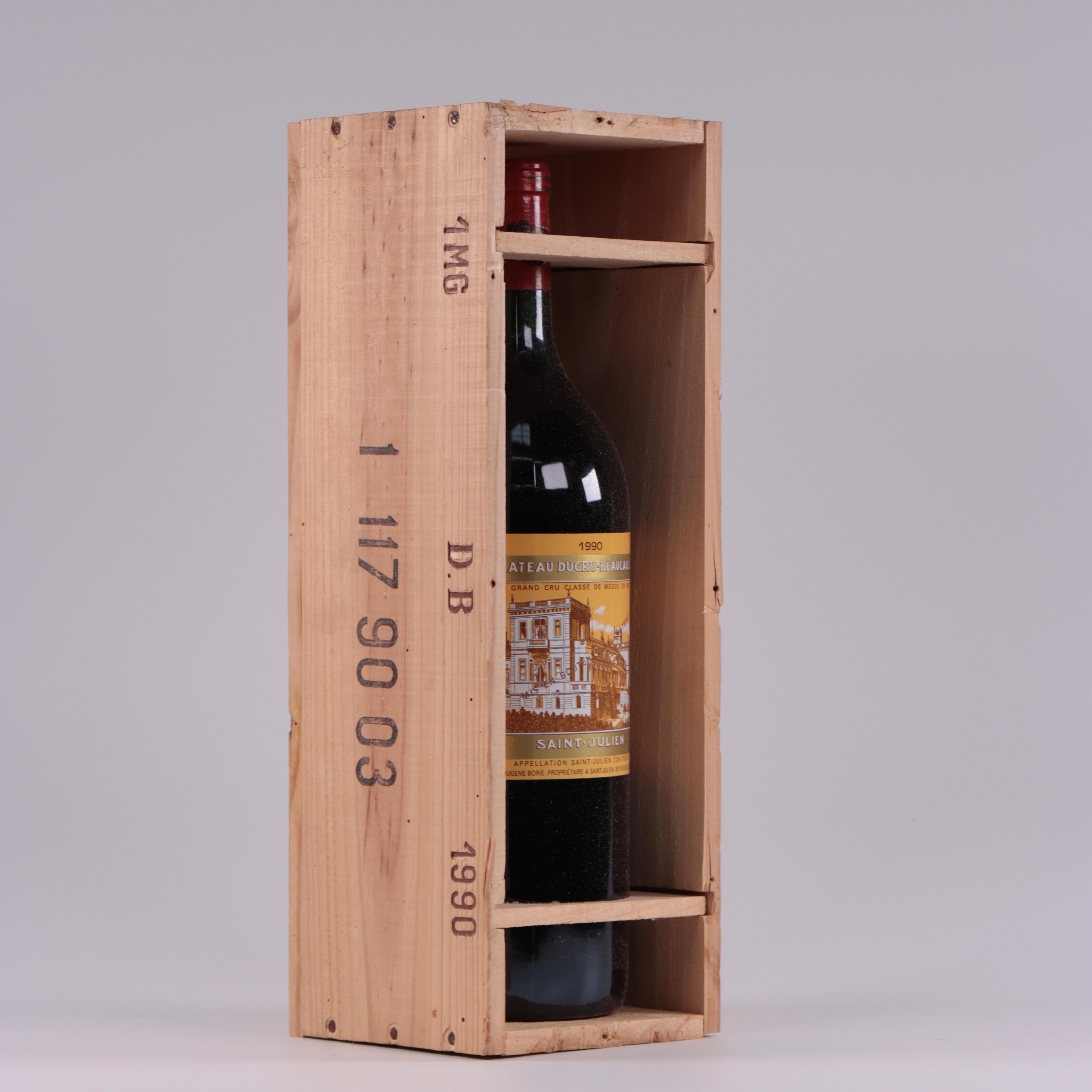 Een magnum fles wijn, rood, Chateau Ducru Beaucaillou, GCC, Saint Julien, 1990. In kist.