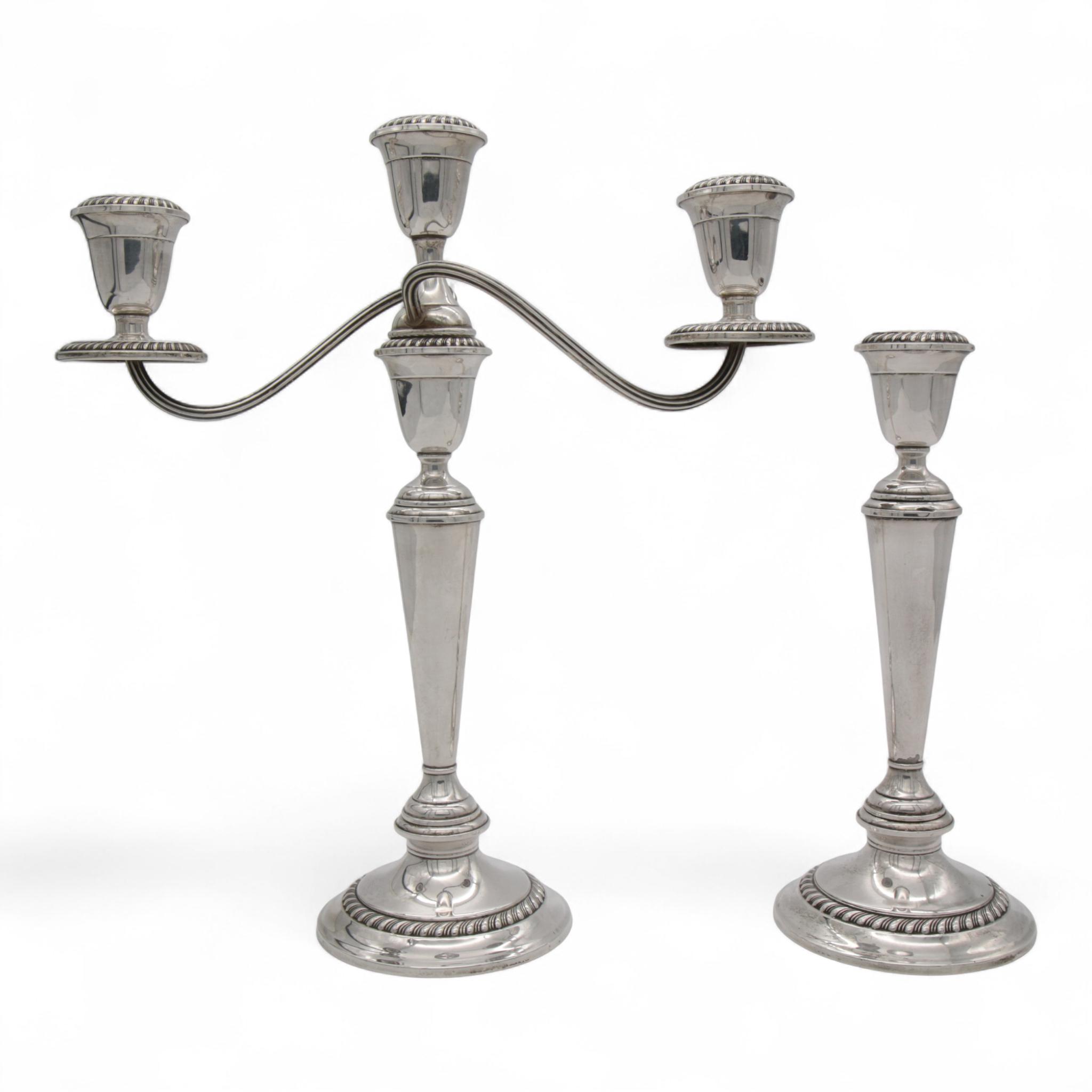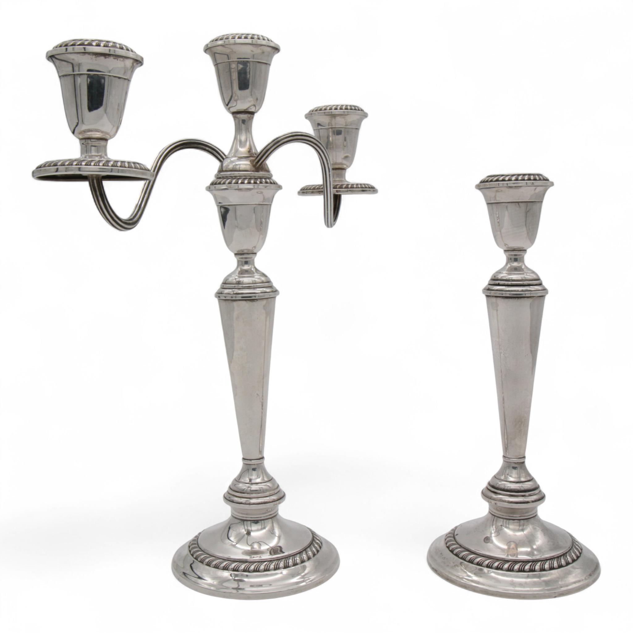 Verenigde Staten, paar kandelaren en één drielichts demontabele kaarsenhouder, 20e eeuw,