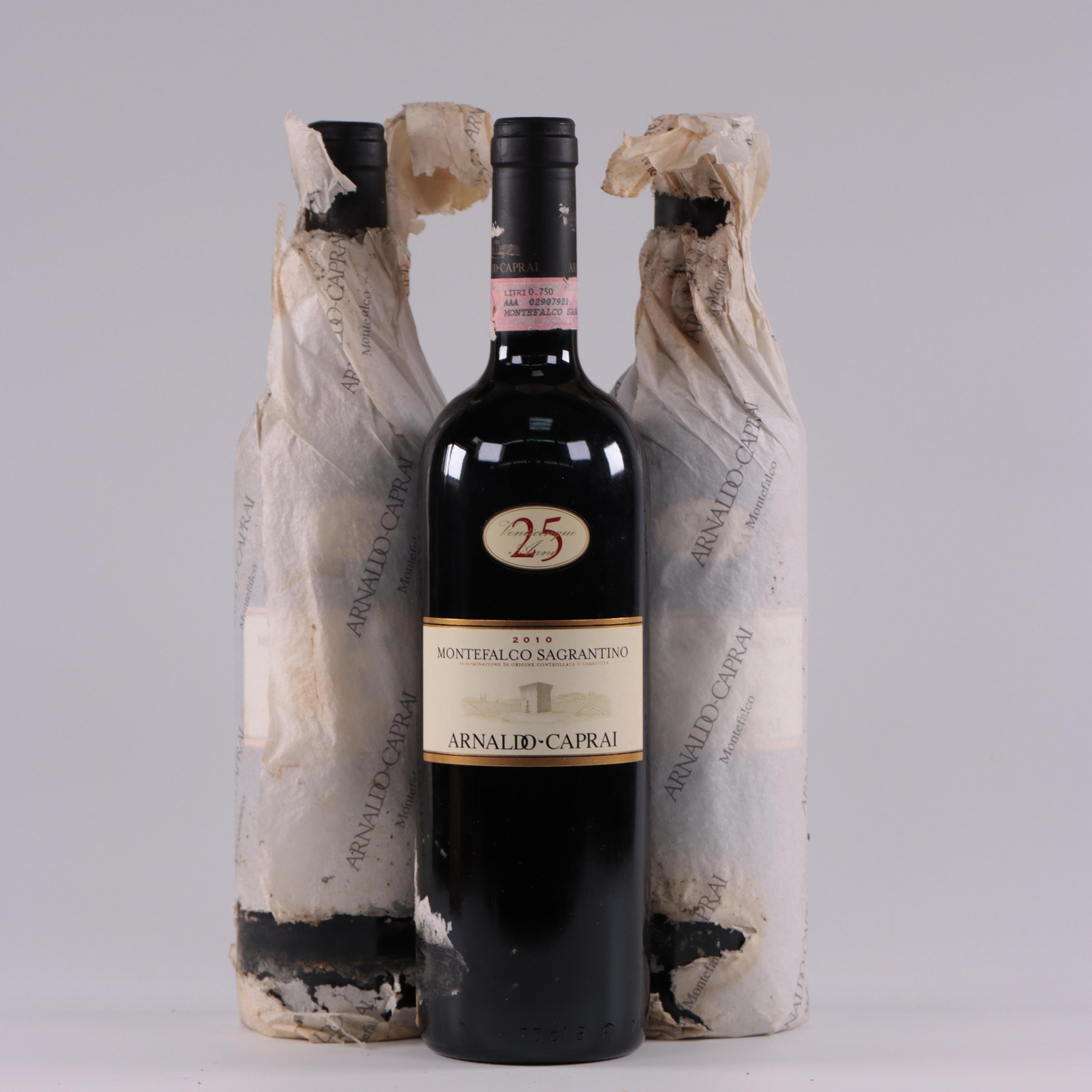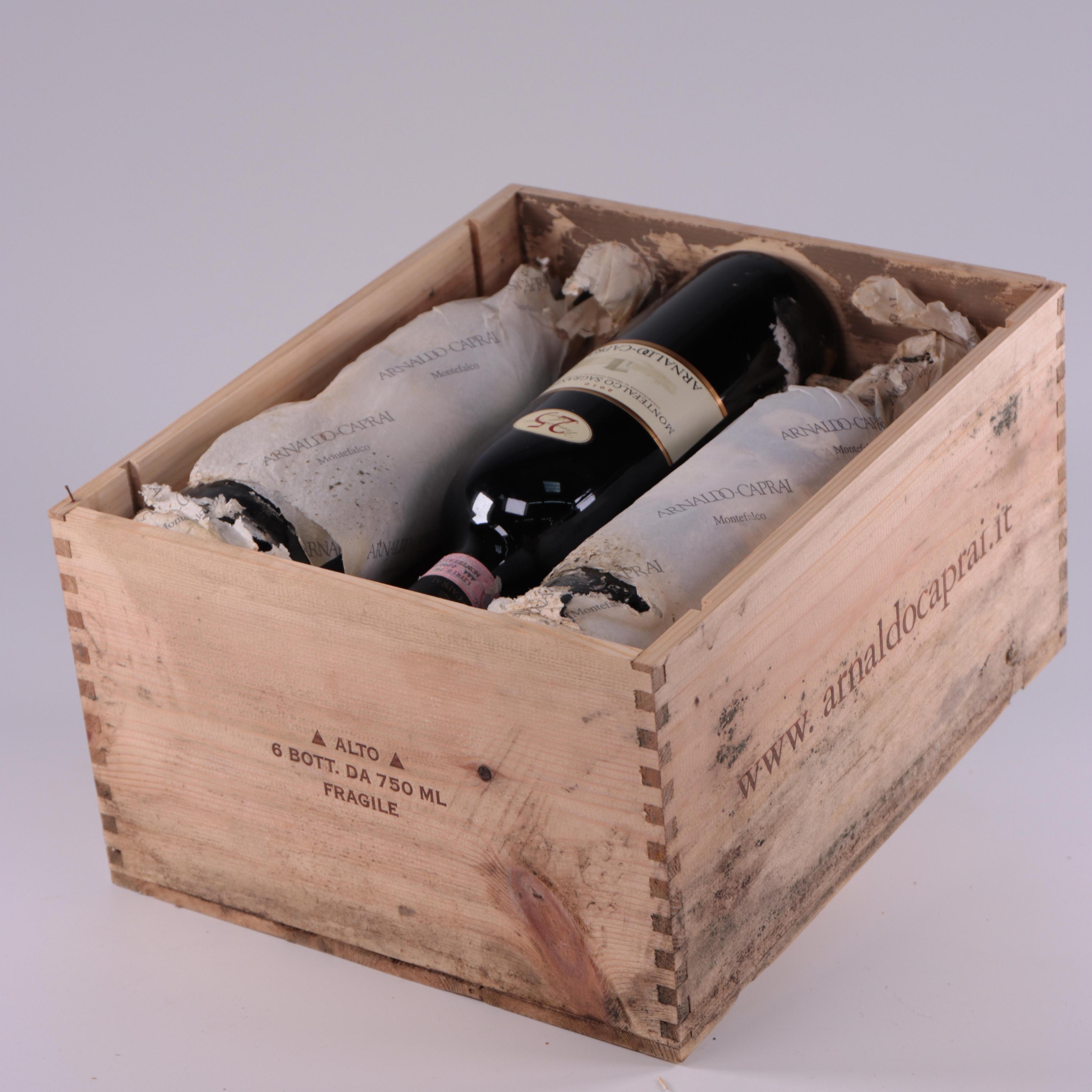Zes flessen wijn, rood, Montefalco Sagratino, 2010. In kist.