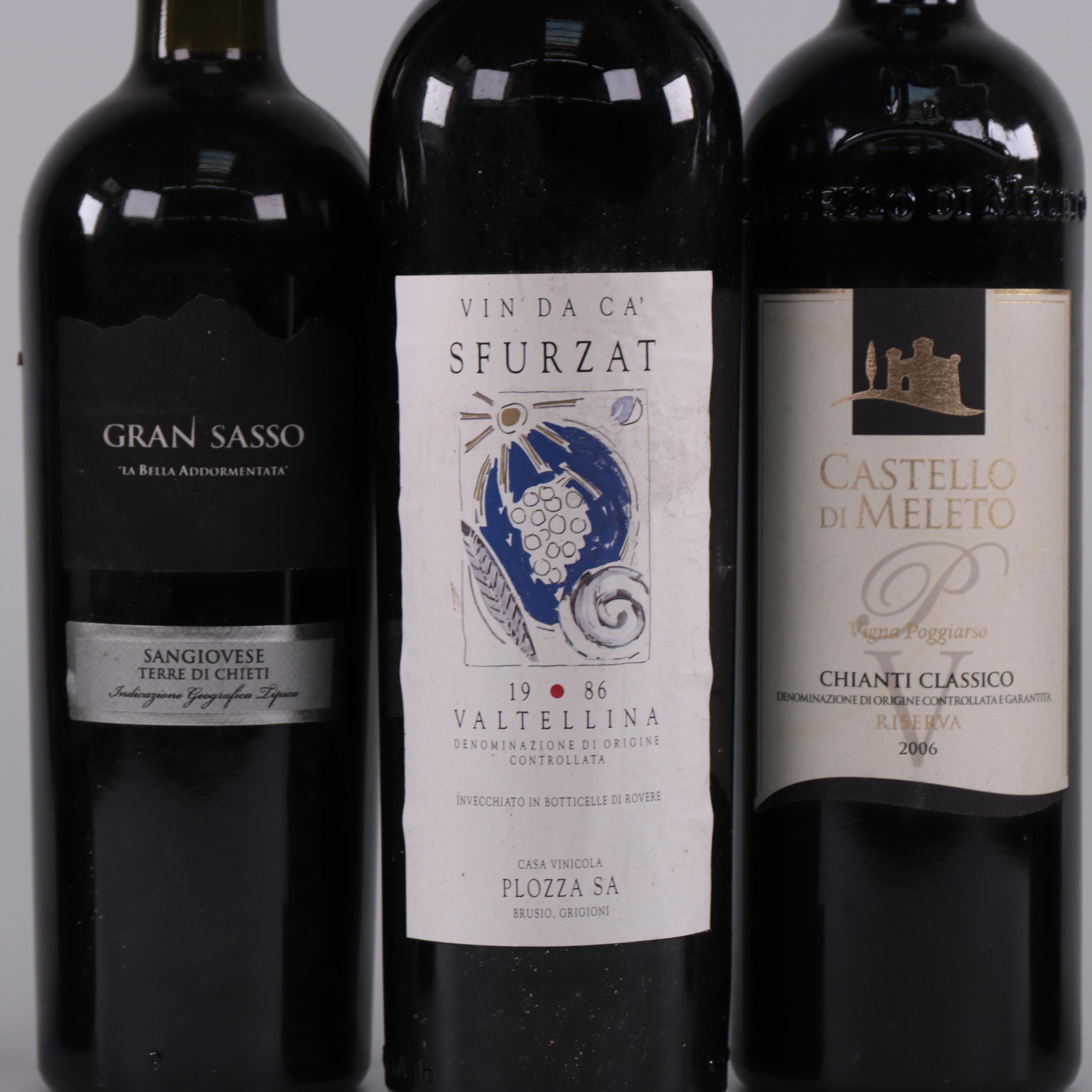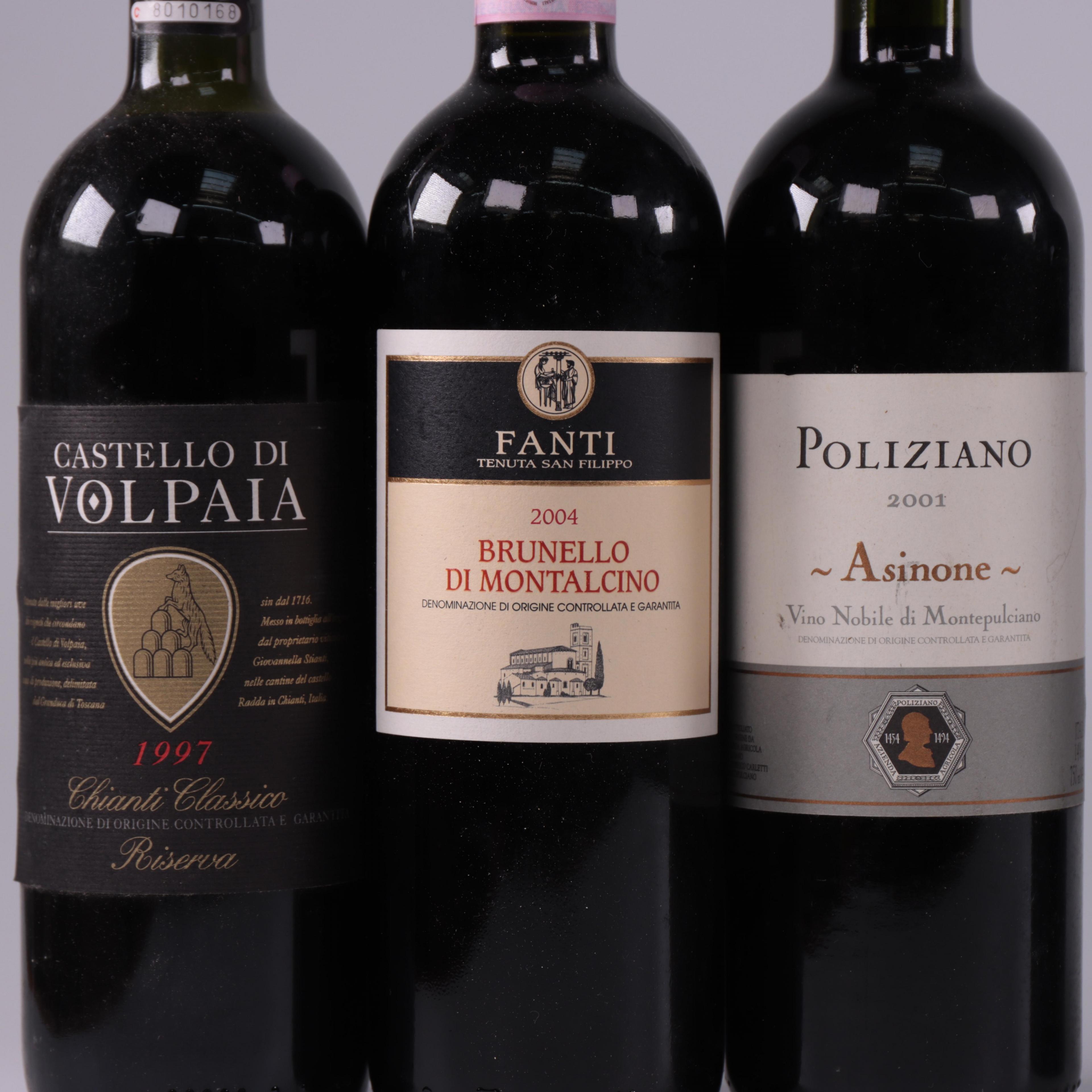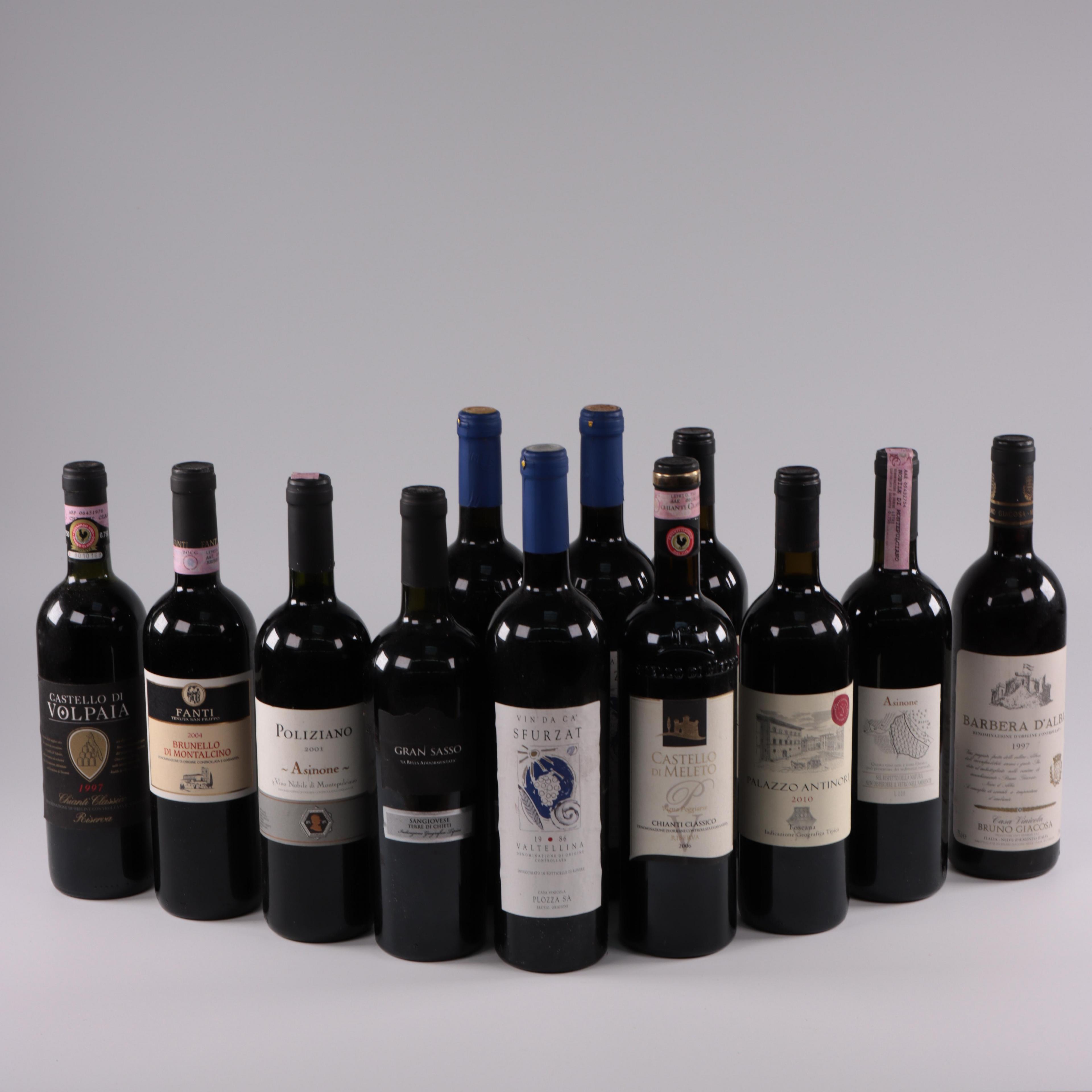 Twaalf diverse flessen wijn, rood, Italië, ondermeer Palazoo Antinori, 2010.