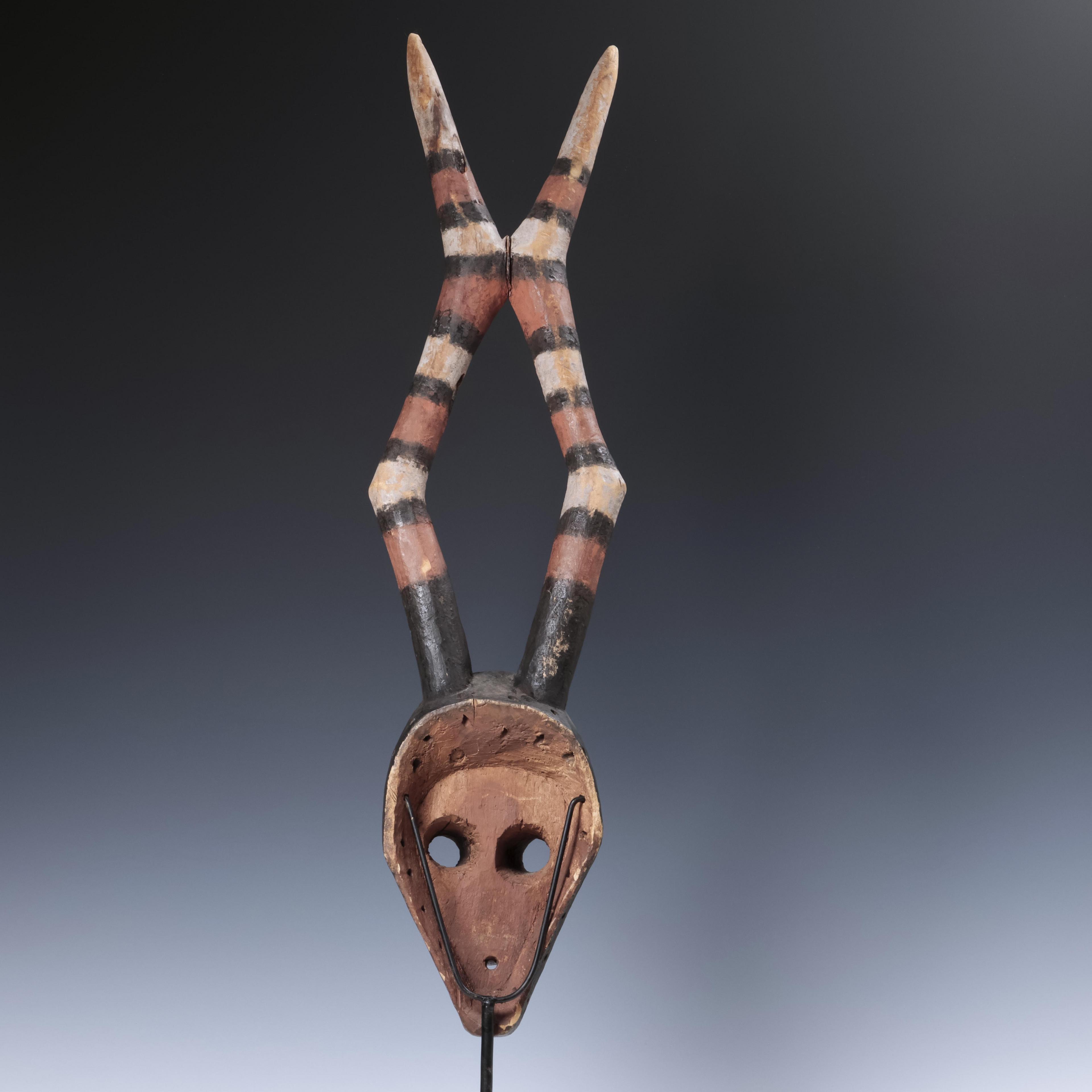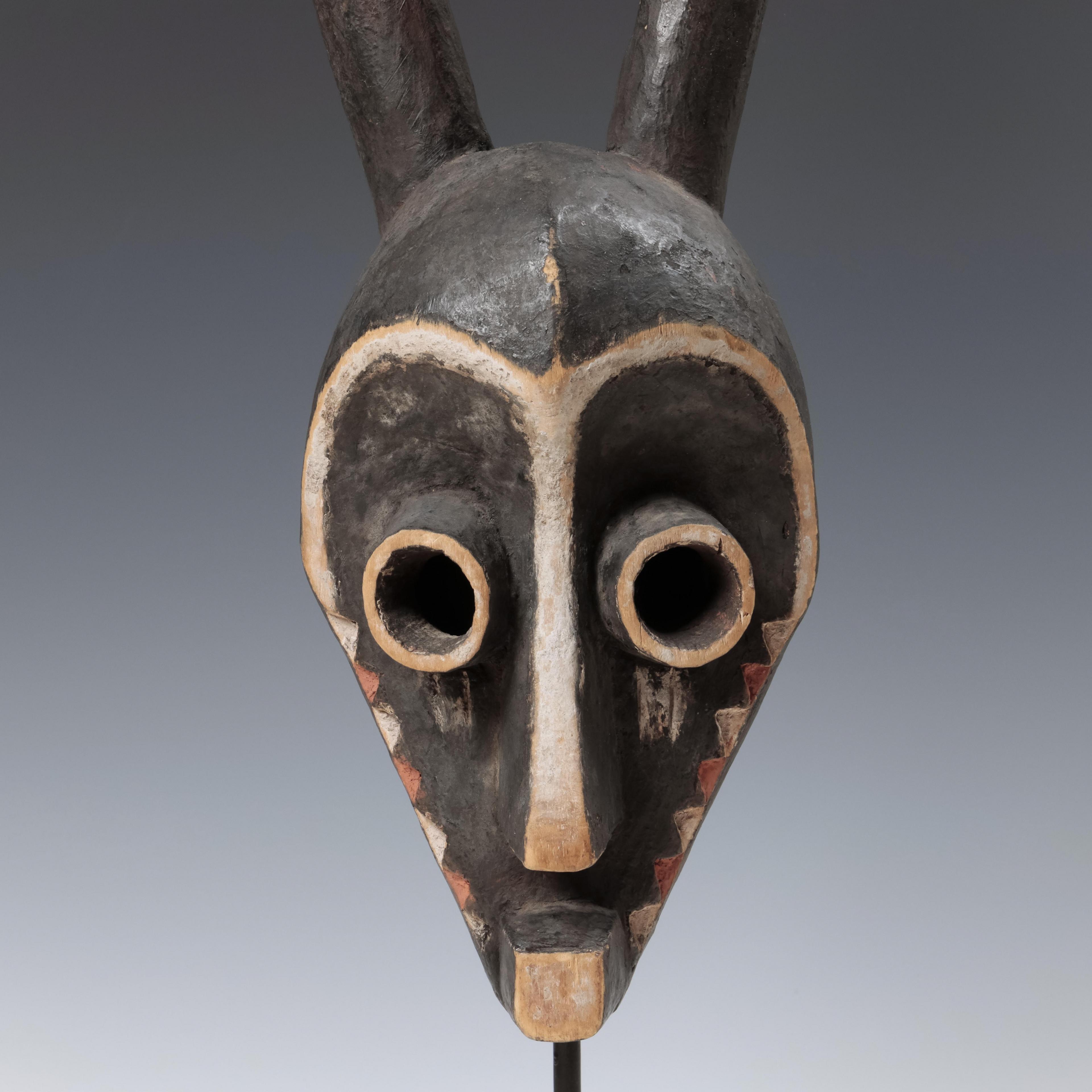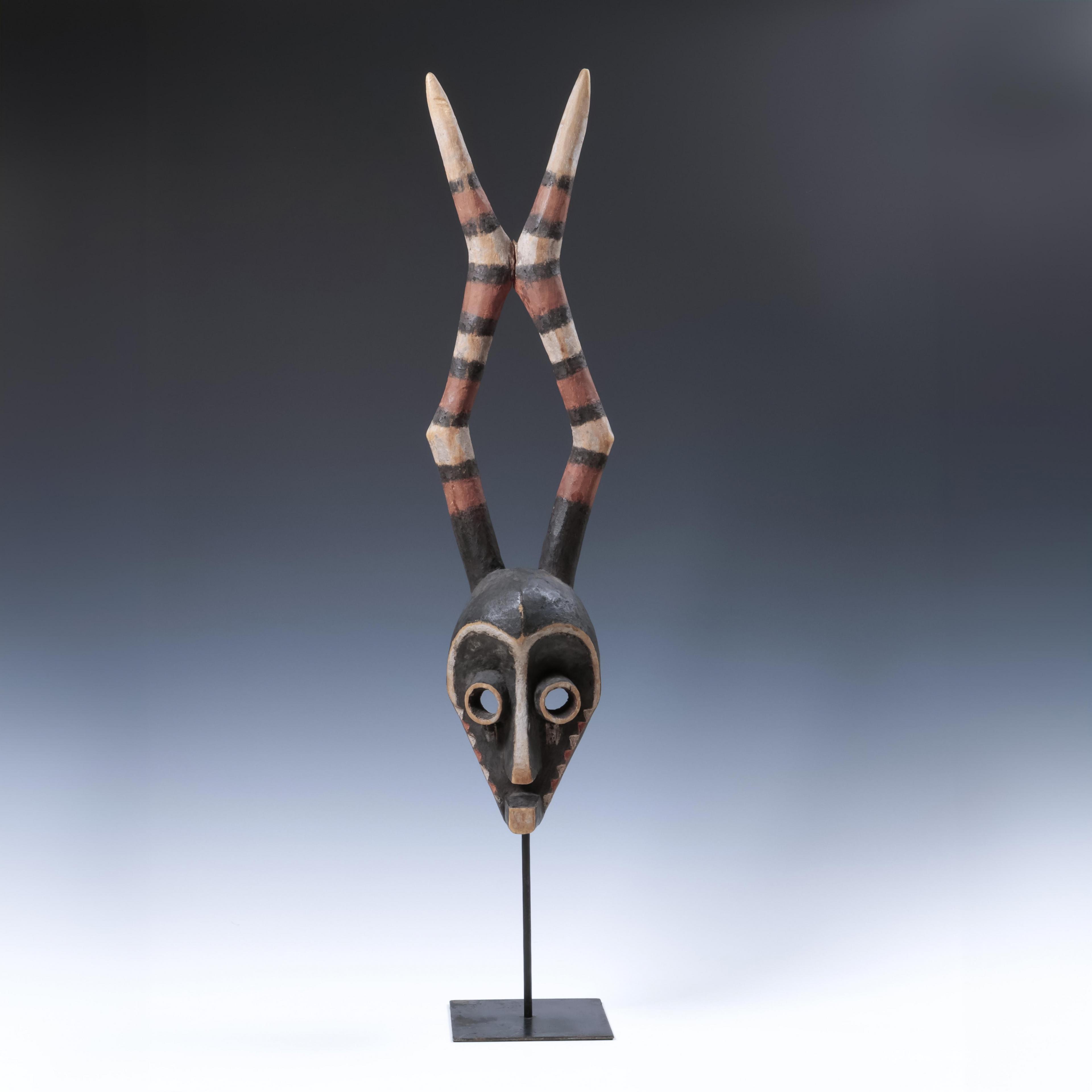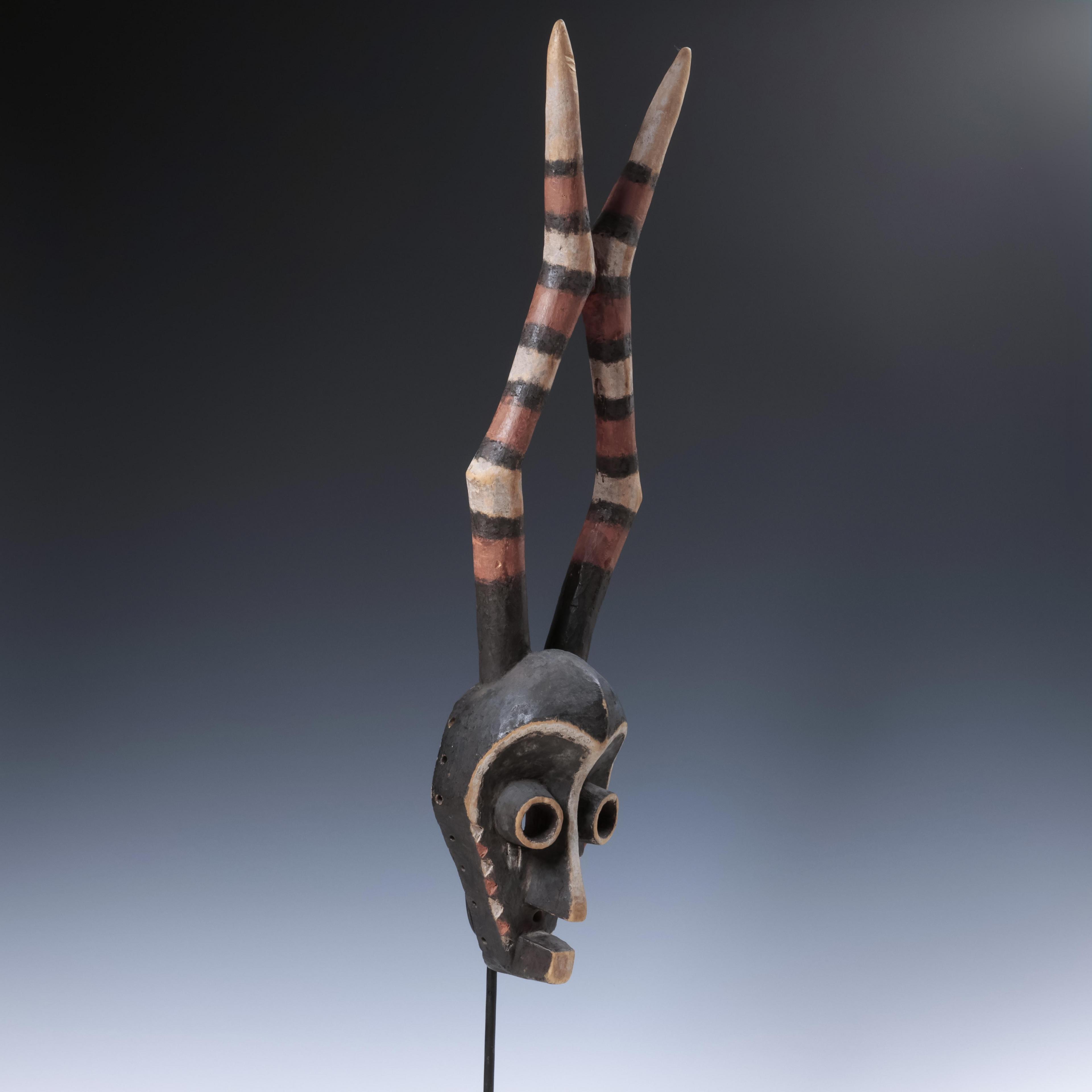 with a pair of curved horns. With black, white and red pigments. (horn loose)