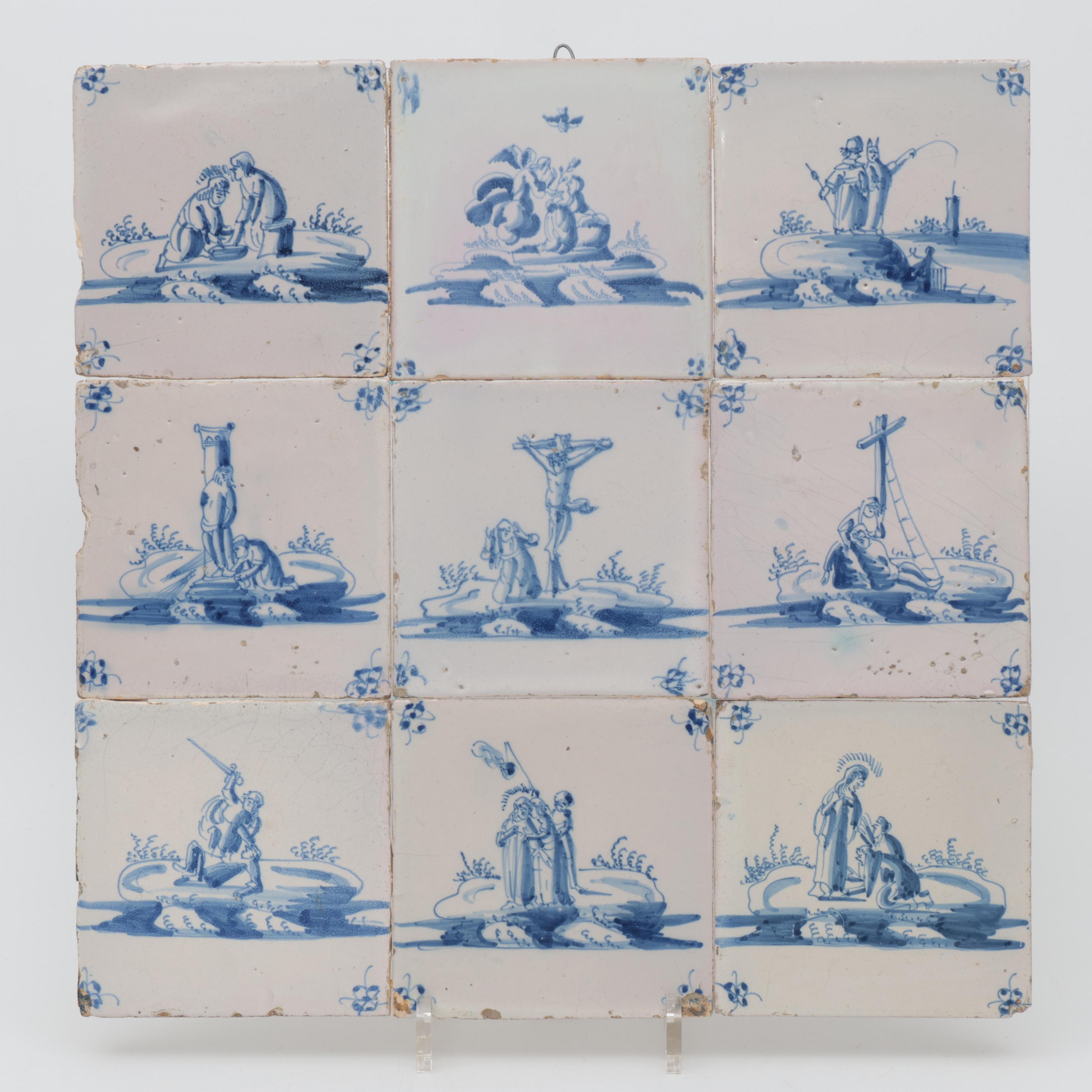 Delft, negen blauw wit aardewerk tegels, 18e eeuw;