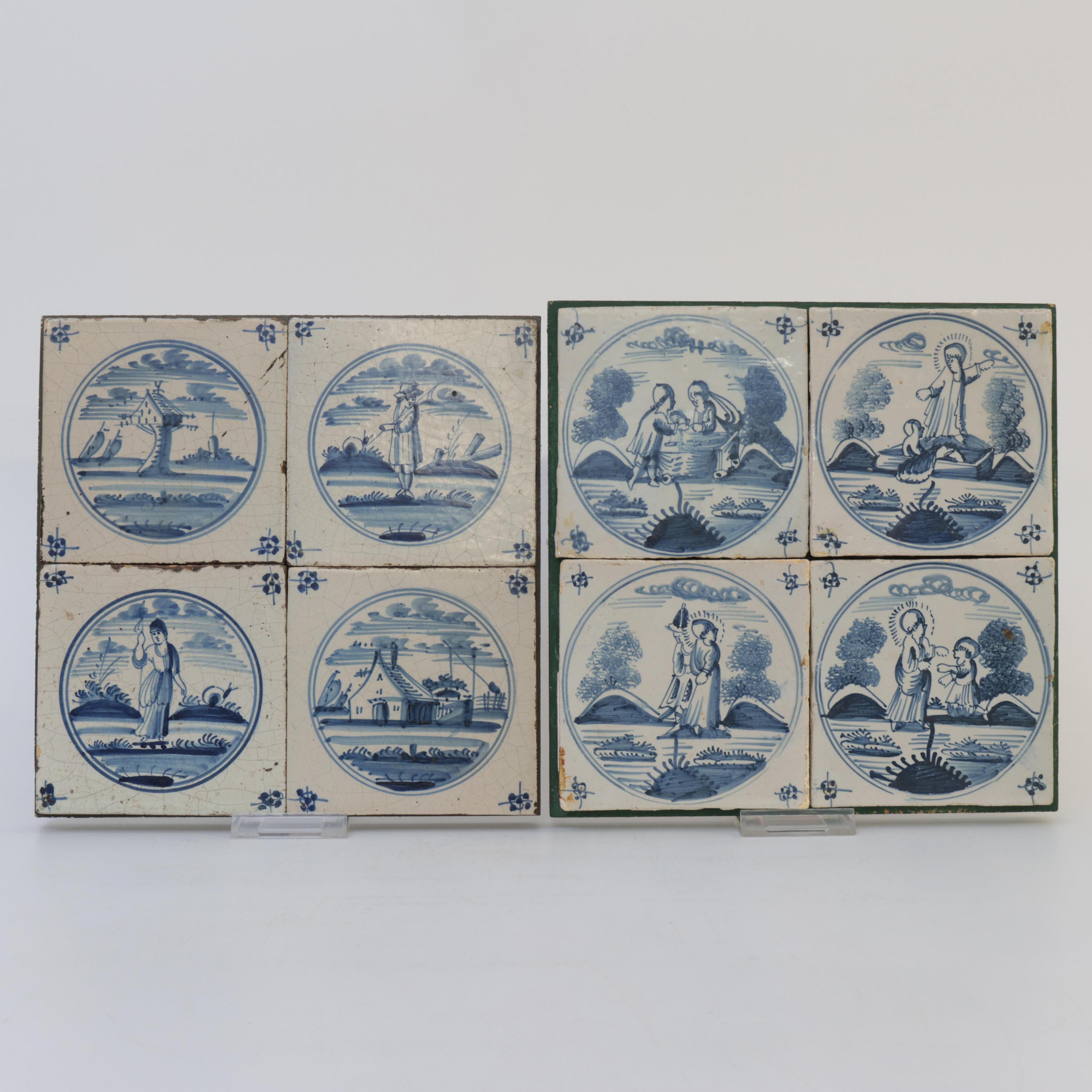 Delft, twee blauw wit aardewerk tegeltableaus, 18e eeuw;