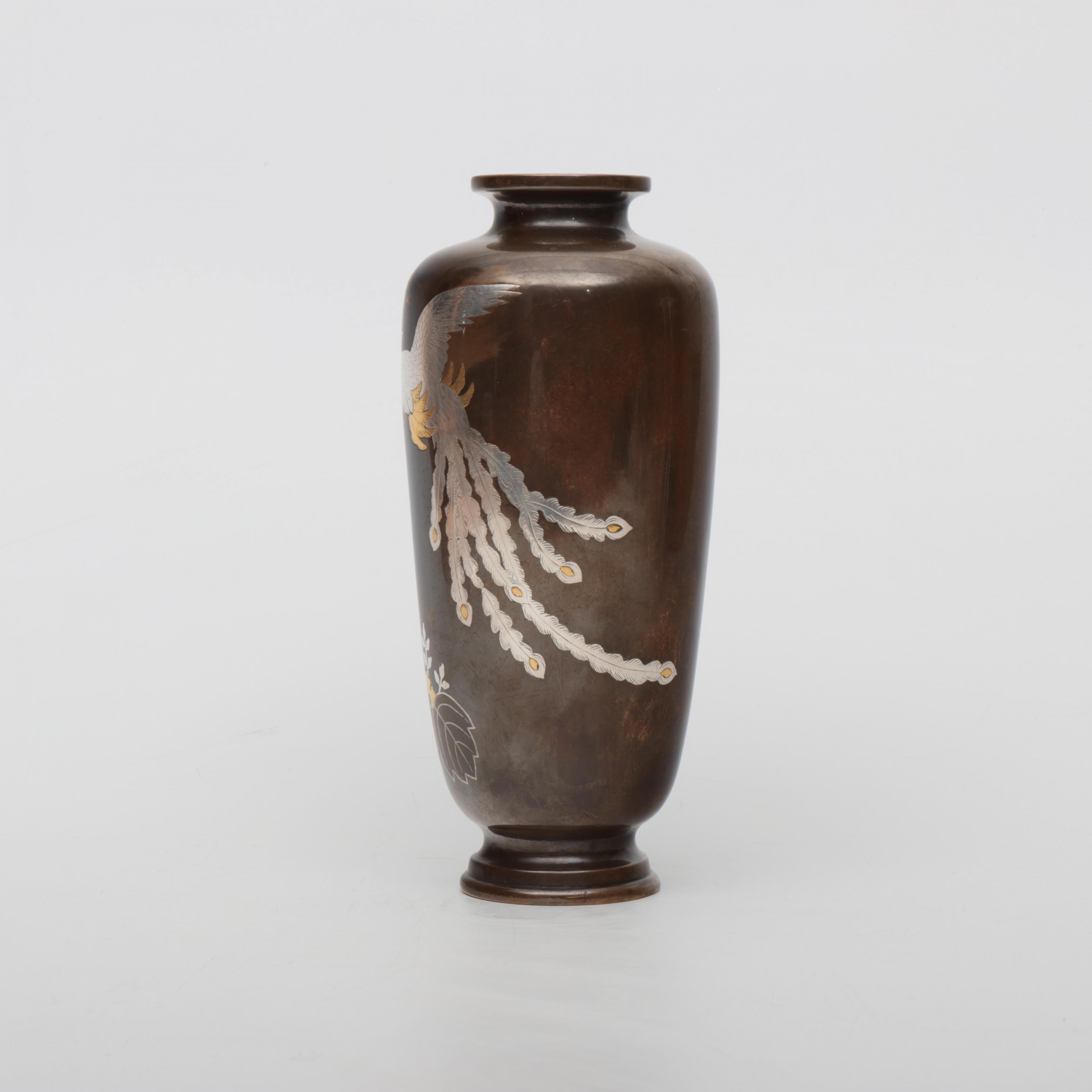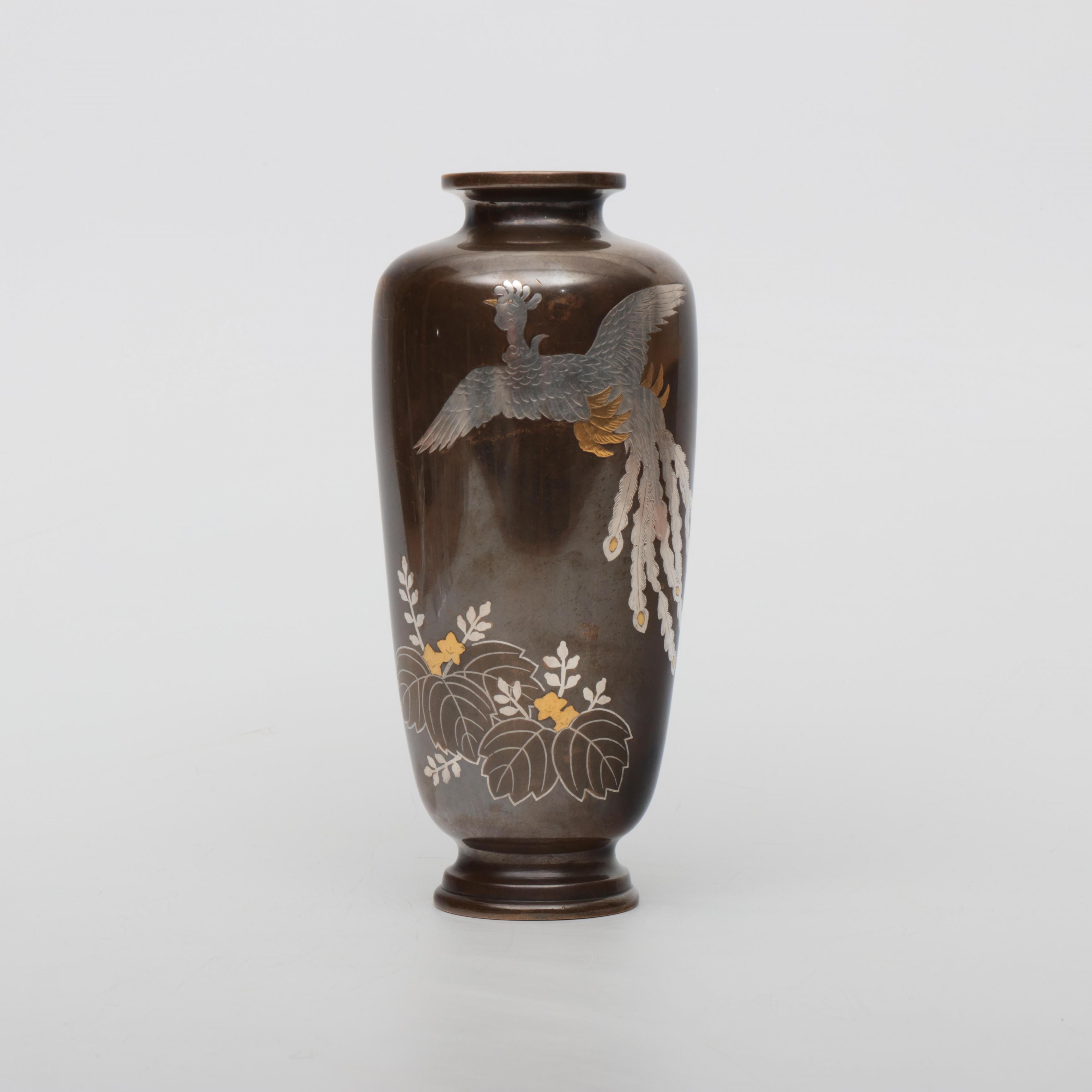 inlaid in silver and gold with a phoenix in flight (some small dents and surface scratches)