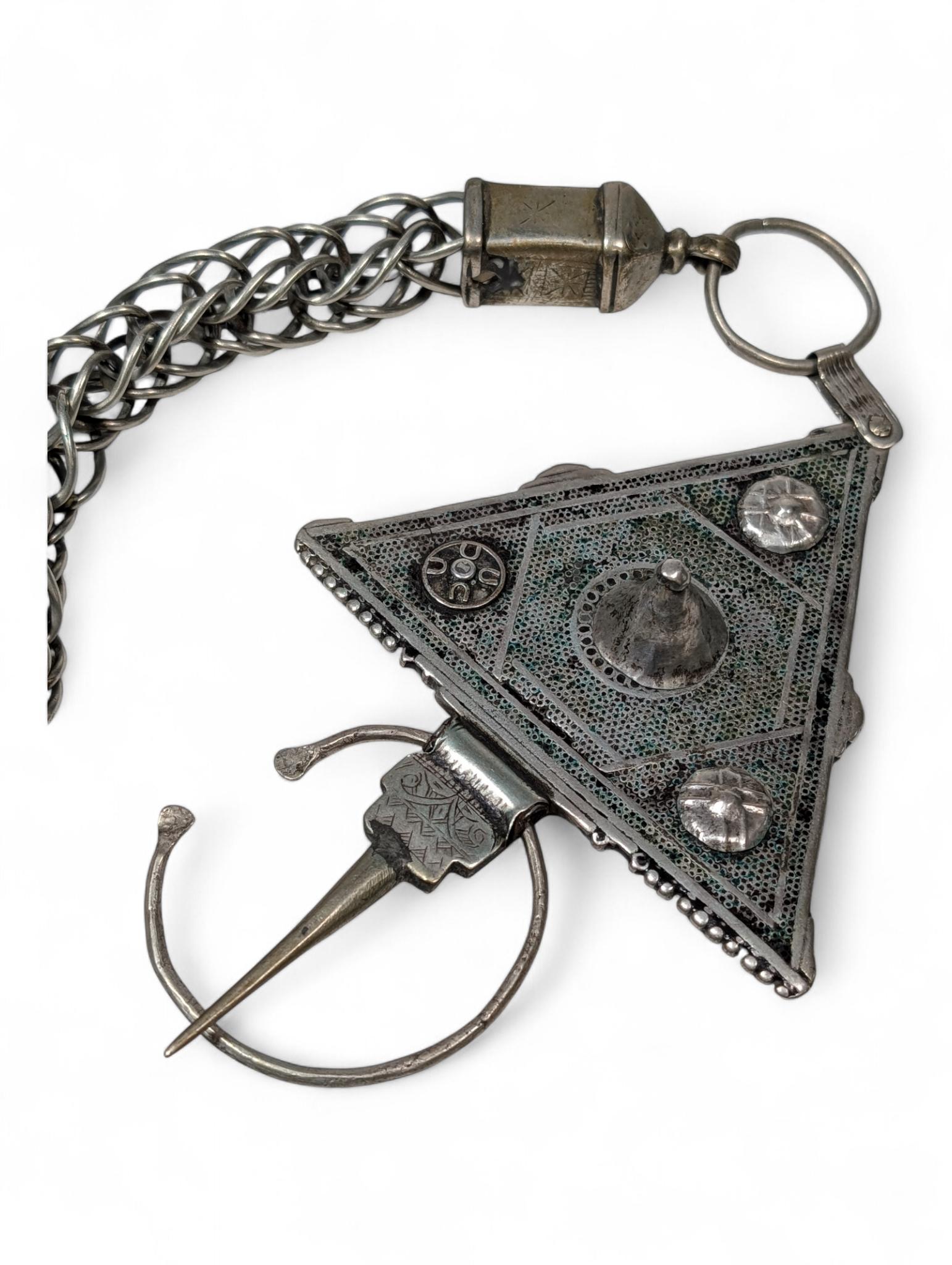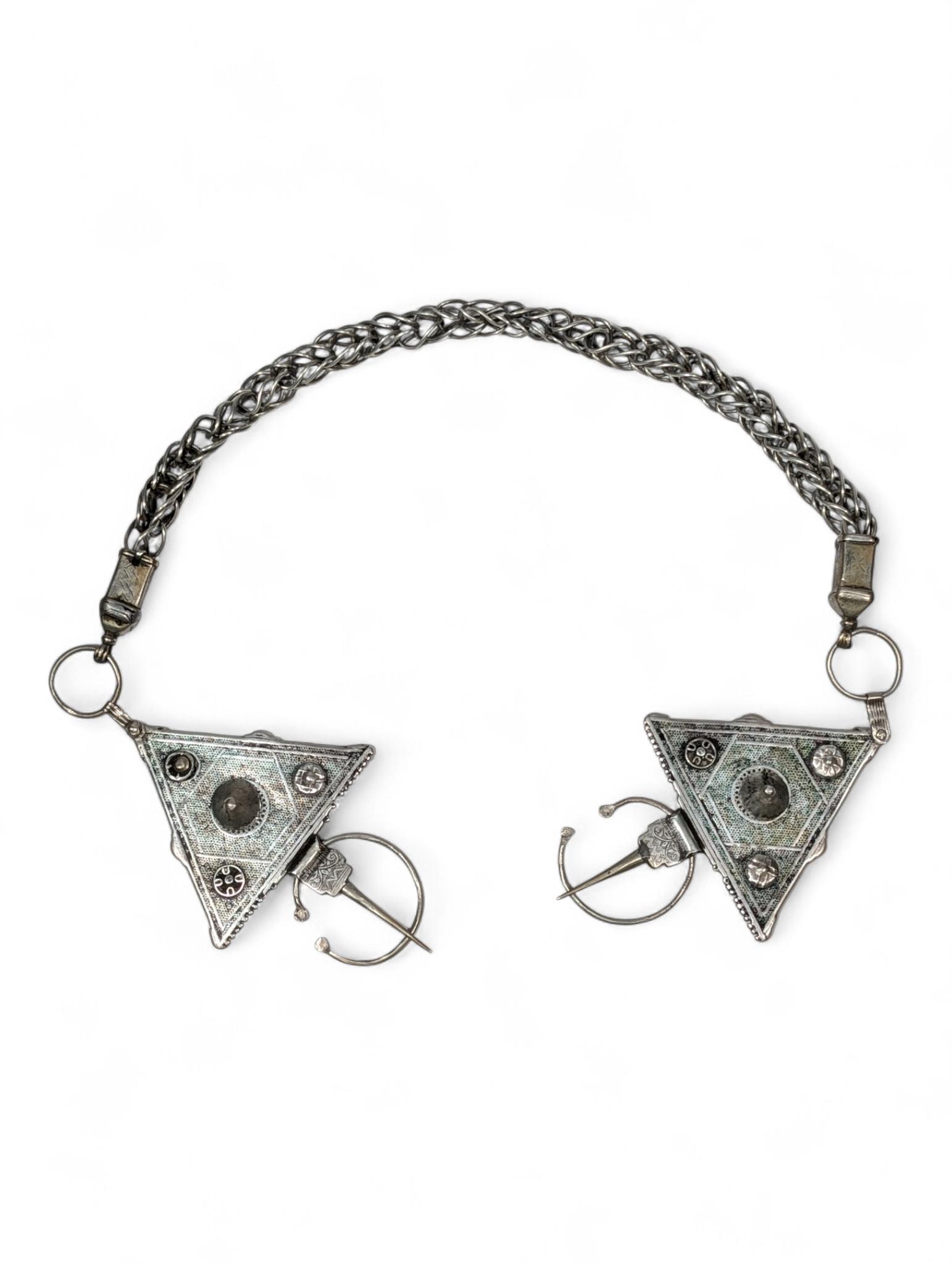 Marocco, a pair of Berber metal - silver alloy clothing ornaments, fibula, tisernas.