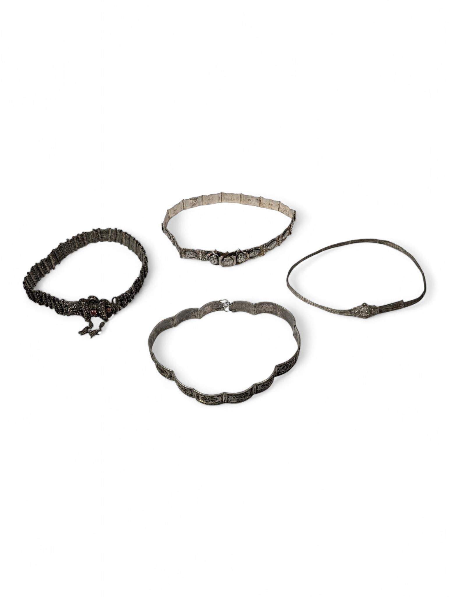 Turkey-Near Eastern, a collection of four silver alloy belts;