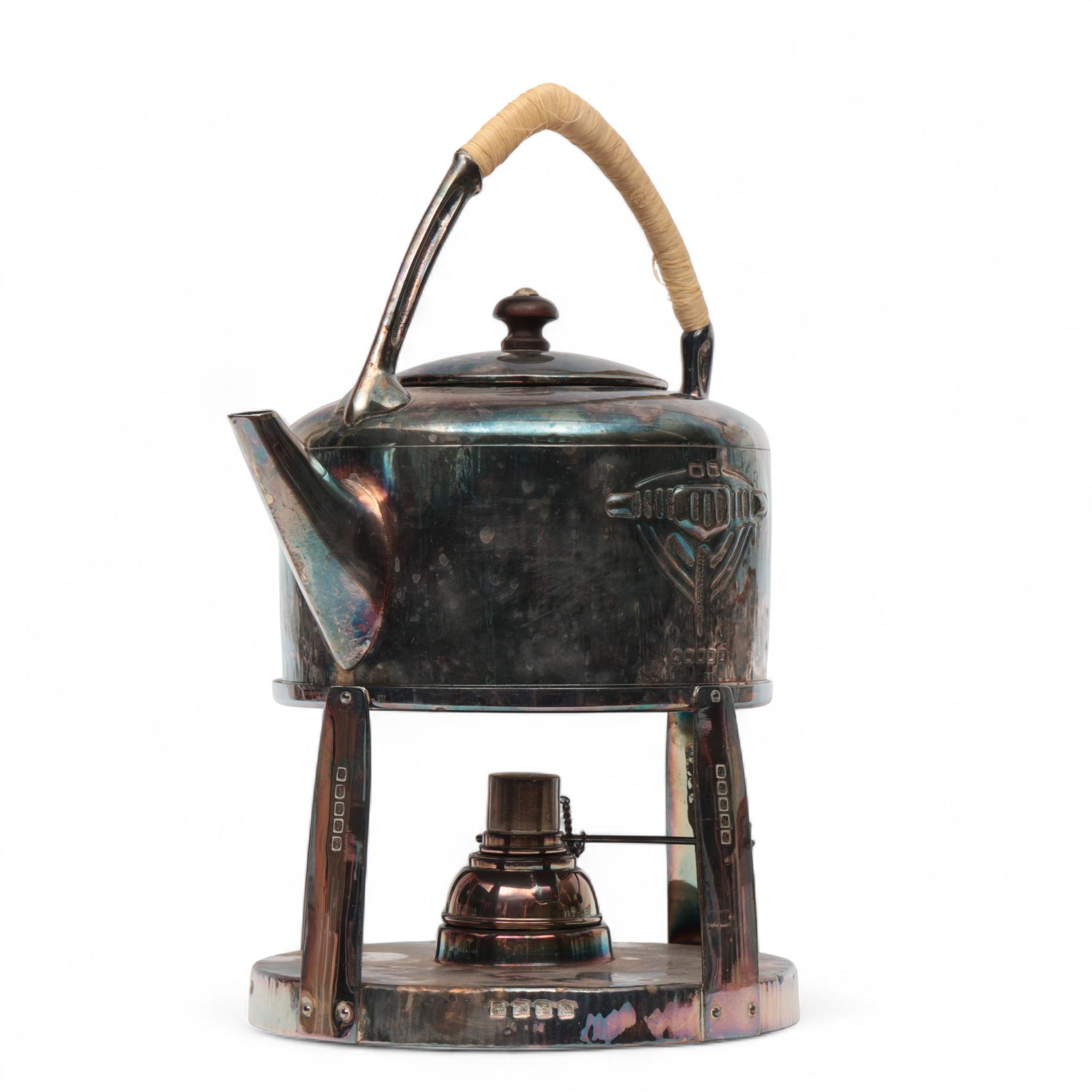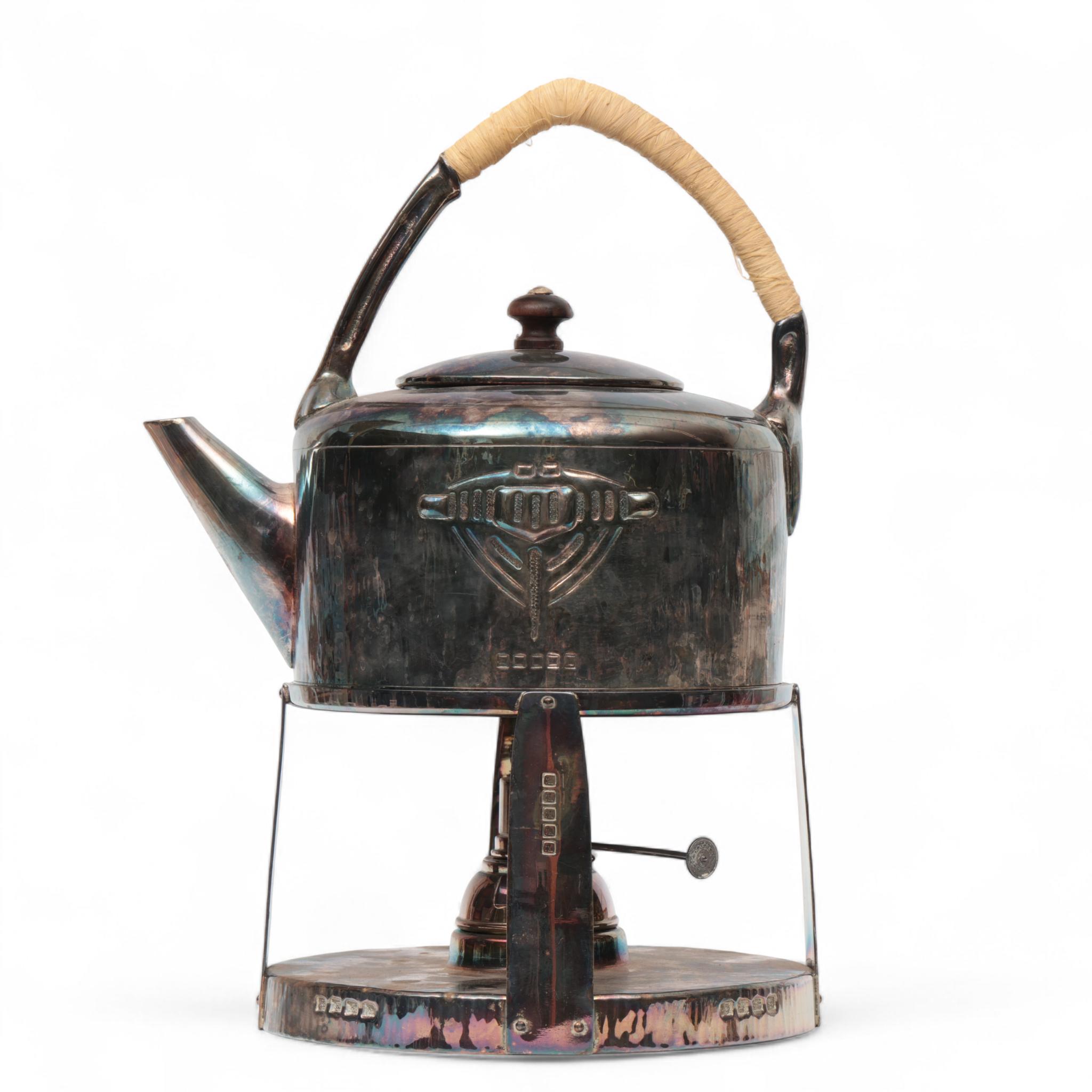Duitsland, verzilverde theeketel met rechaud, Jugendstil;