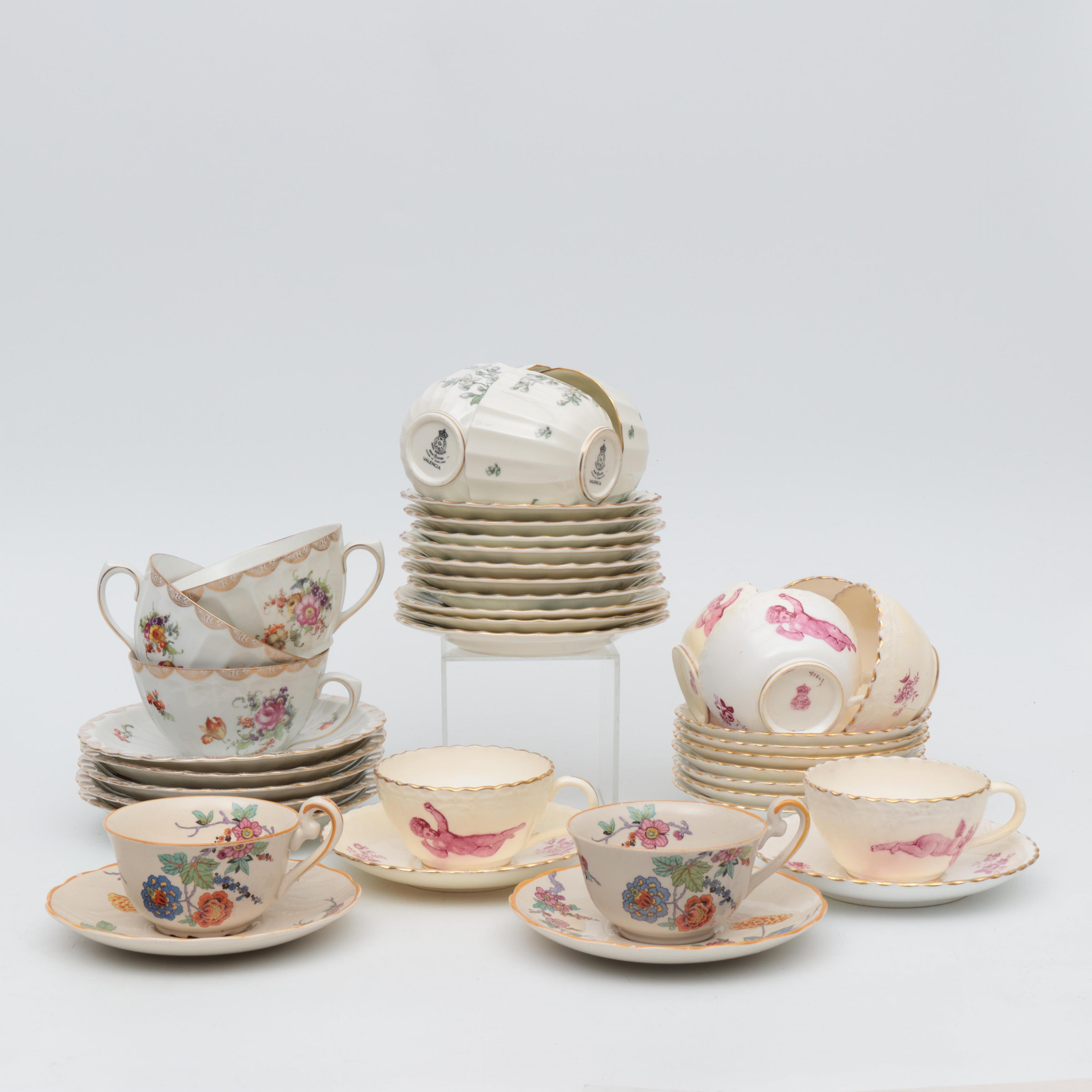 Diverse sets porseleinen en aardewerk kop- en schotels, 19e en 20e eeuw;