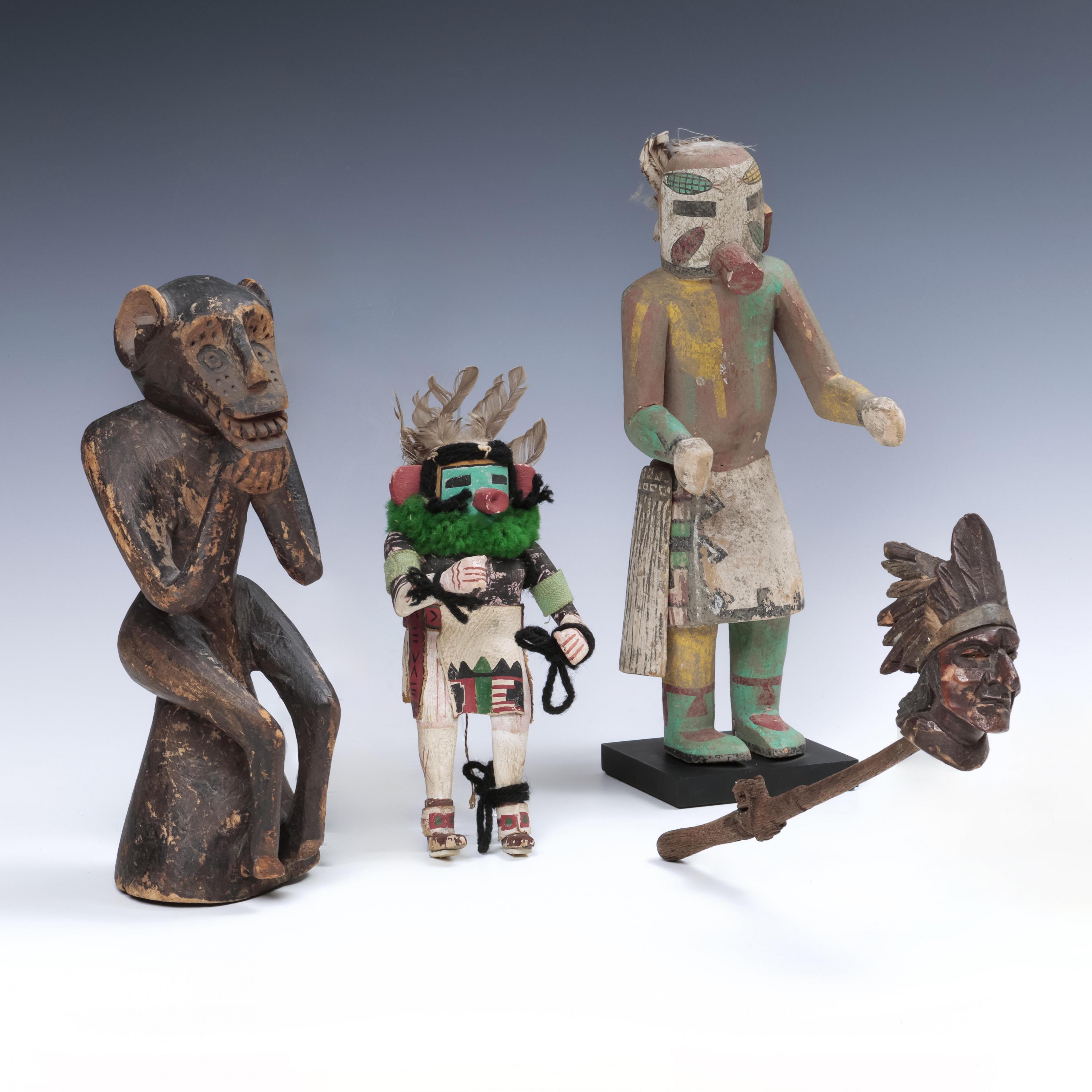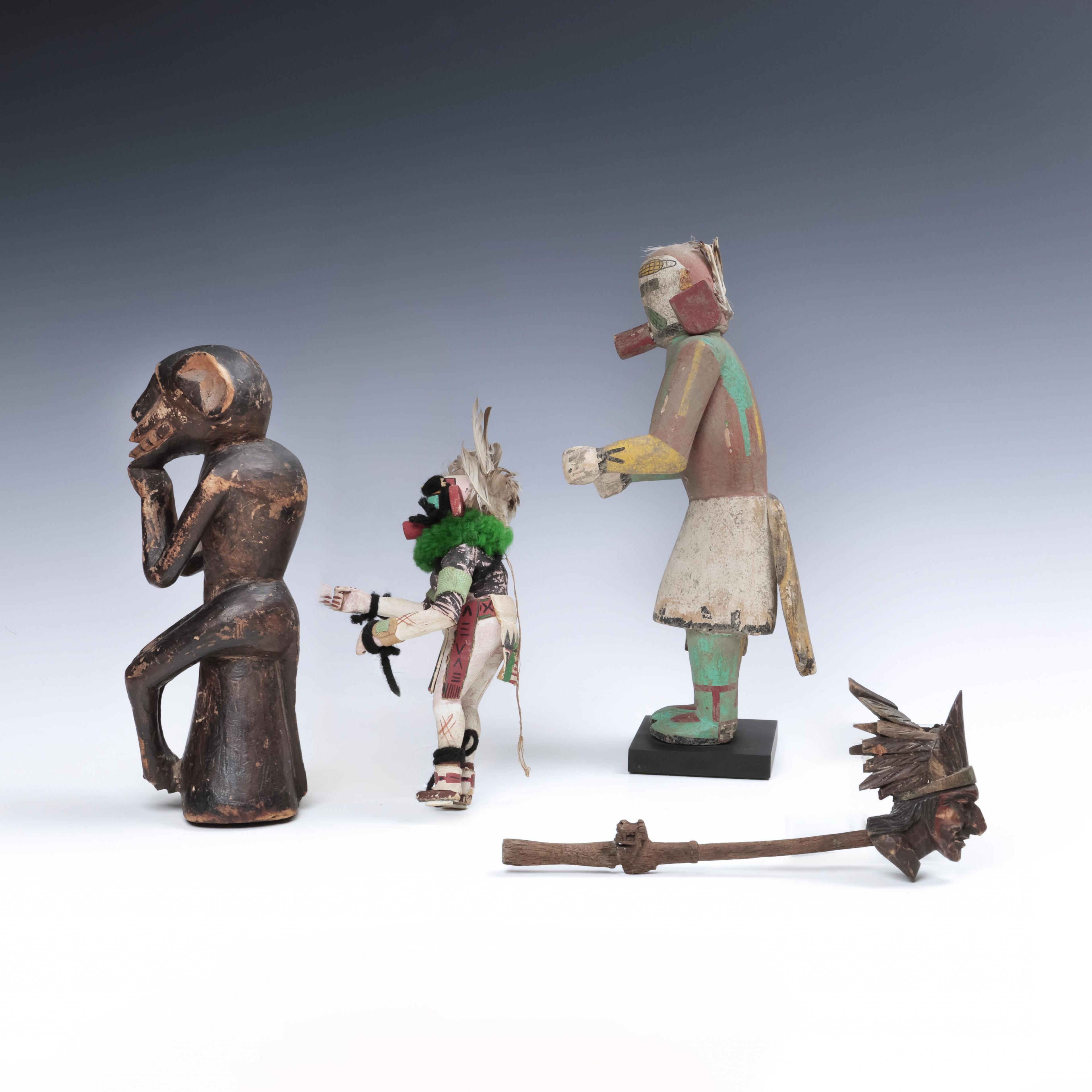 Herewith a wooden pipe and an African wooden figure of a seated monkey.