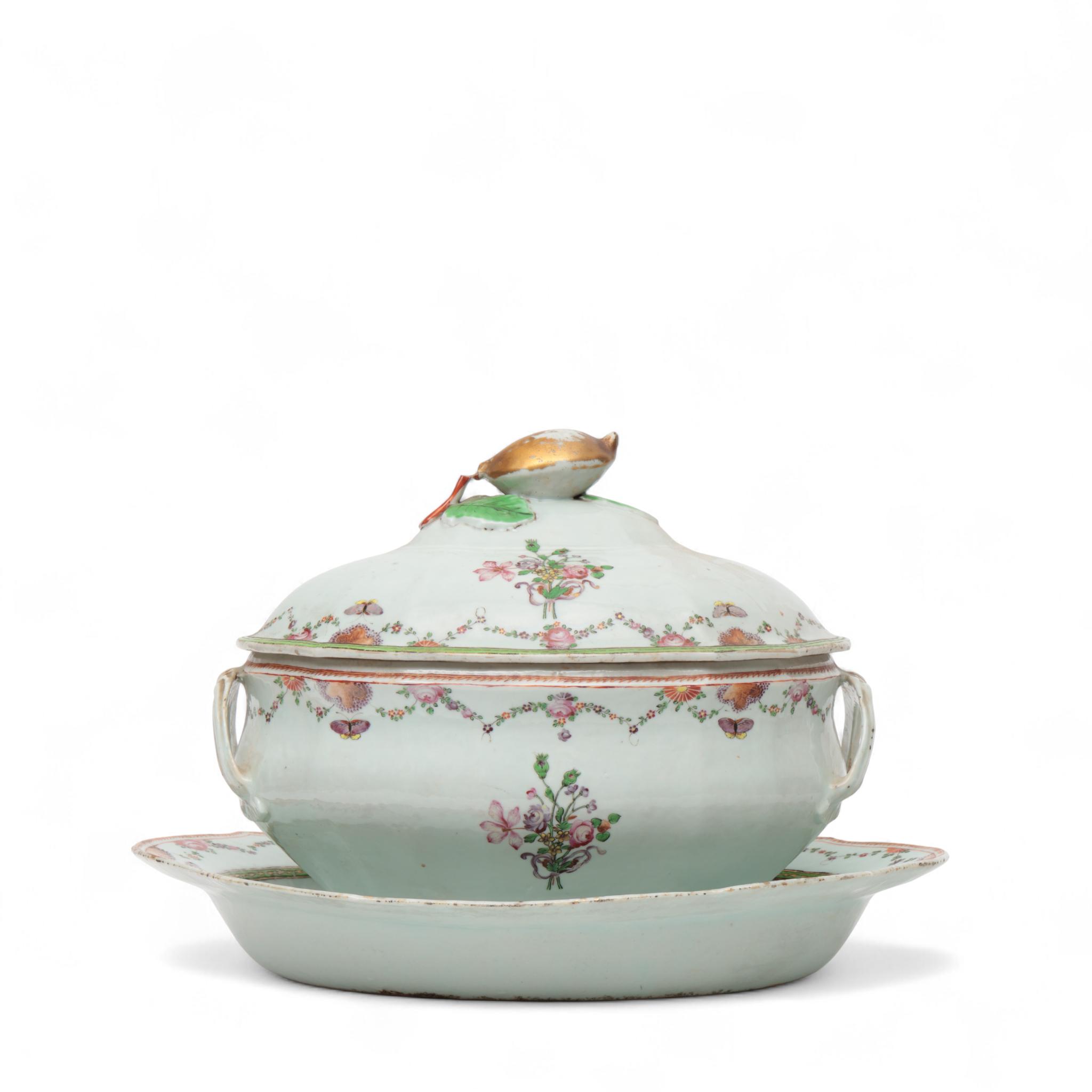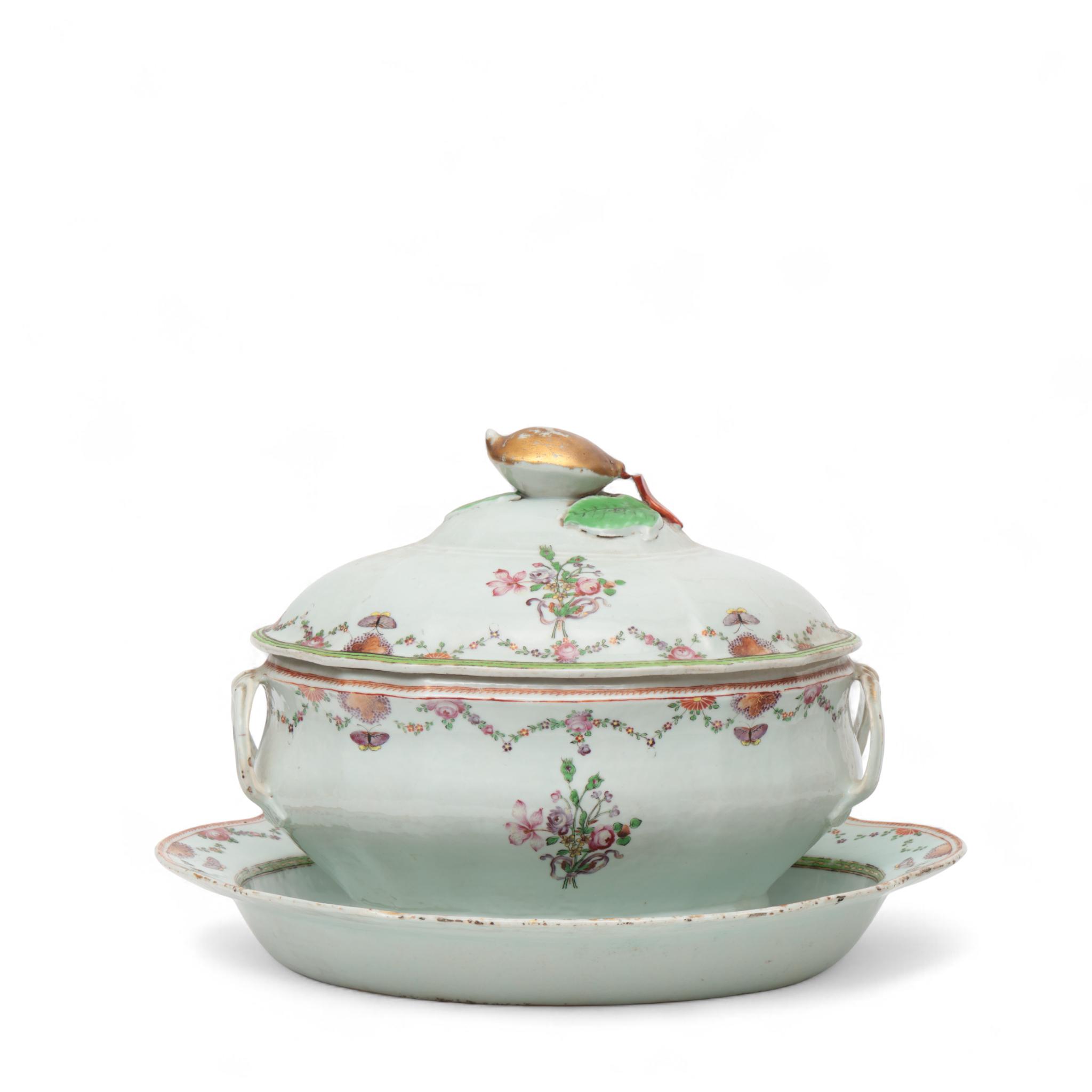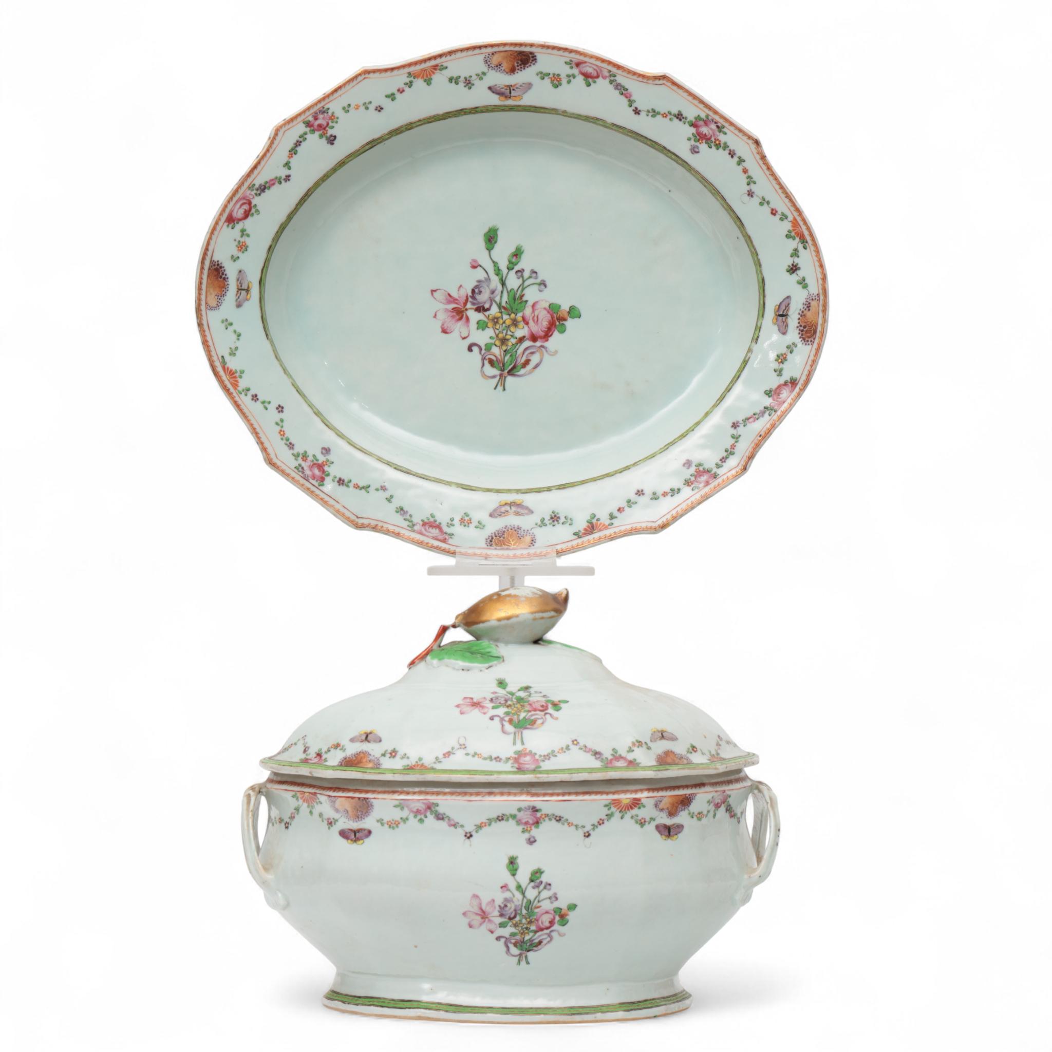 China, a famille rose porcelain tureen, cover and stand, 19th century,